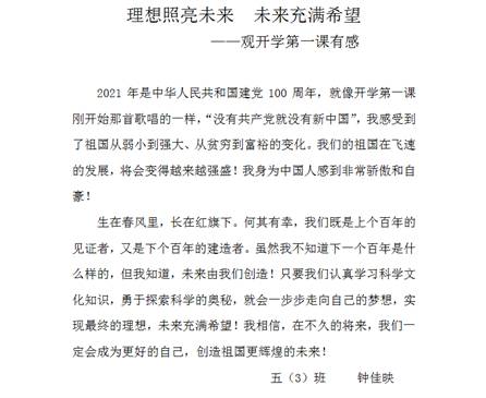 又到一年开学季。9月1日晚,和平街一中组织全体学生居家观看了中央电视台播放的“开学第一课”。今年《开学第一课》以“理想照亮未来”为主题,用榜样的力量激励着广大青少年坚定理想、发愤图强。通过观看“开学第一课”,让同学们在感动中学会勇敢、学会担当,收获进步、收获成长,坚定信念、永不放弃。
