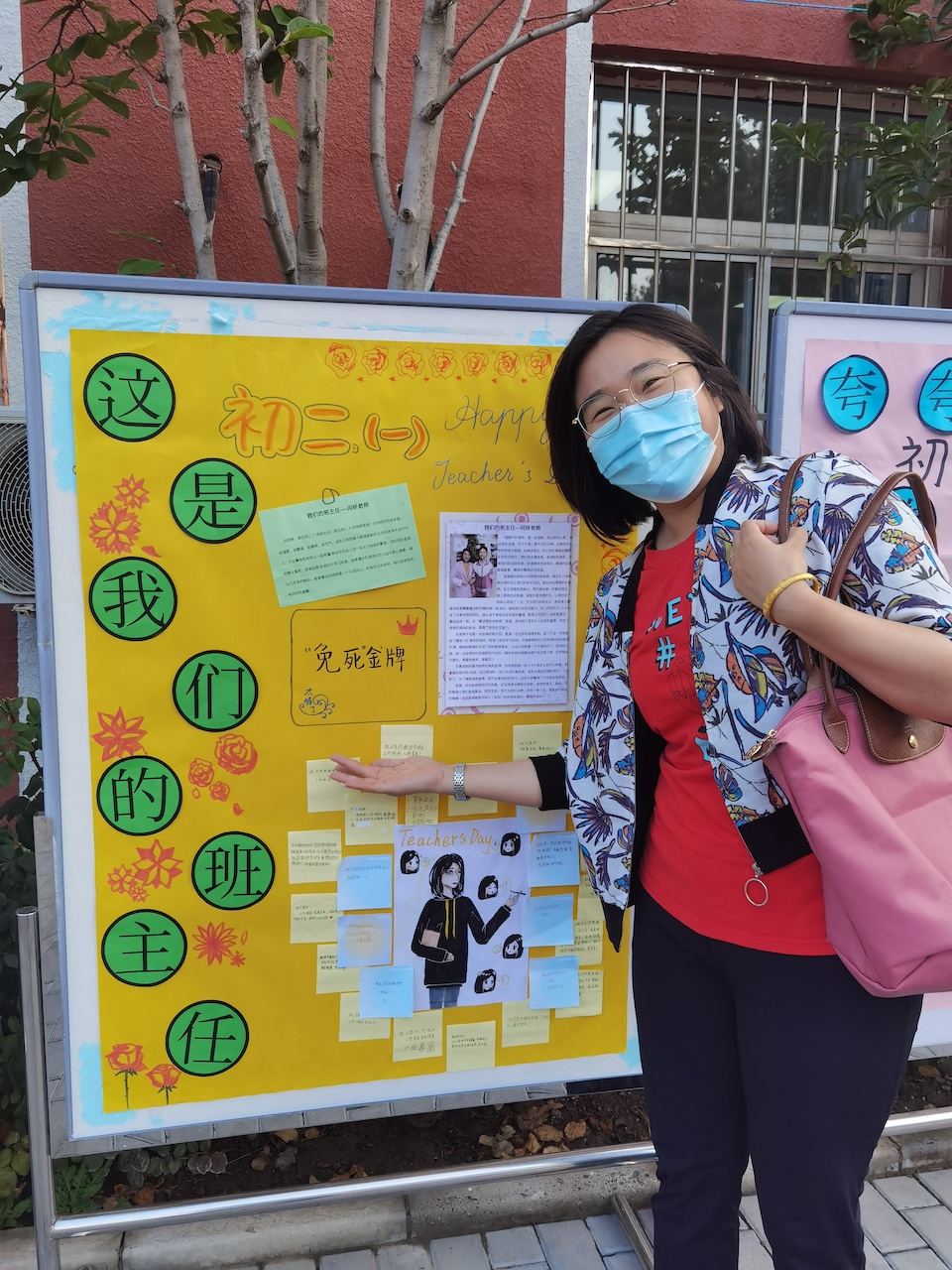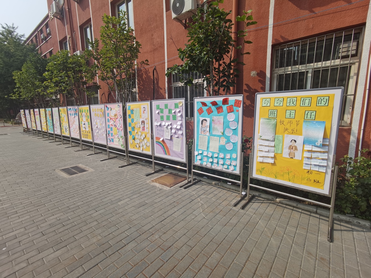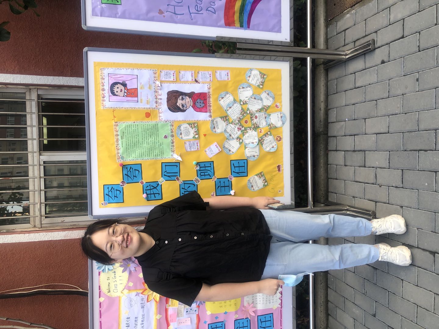 进入校园的老师门看到自己班级的展板,十分惊喜,看着字里行间,无不会心一笑,眼神里充满了感动。很多老师与学生制作的展板合影,并表示,这是收到的最好的教师节礼物!
