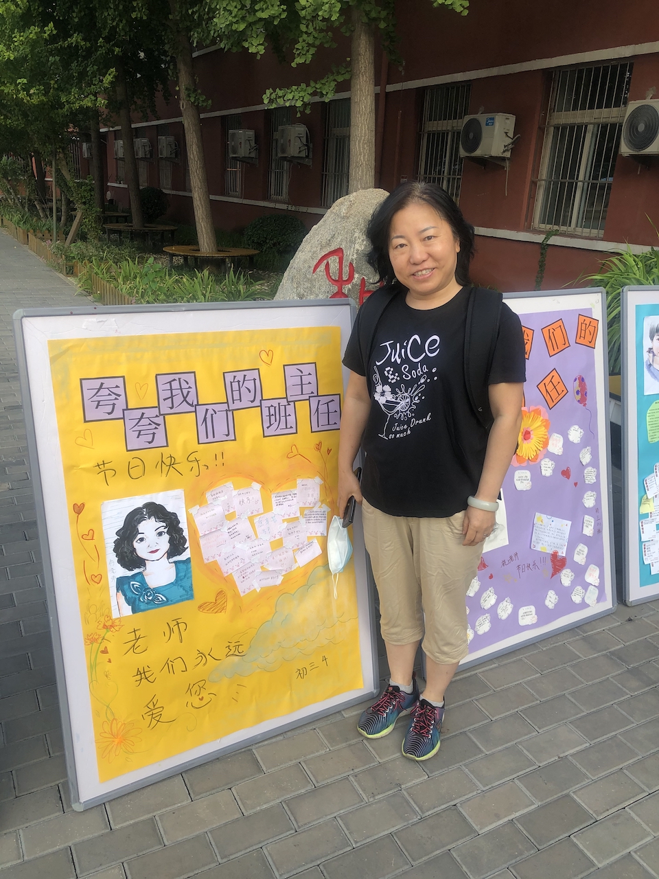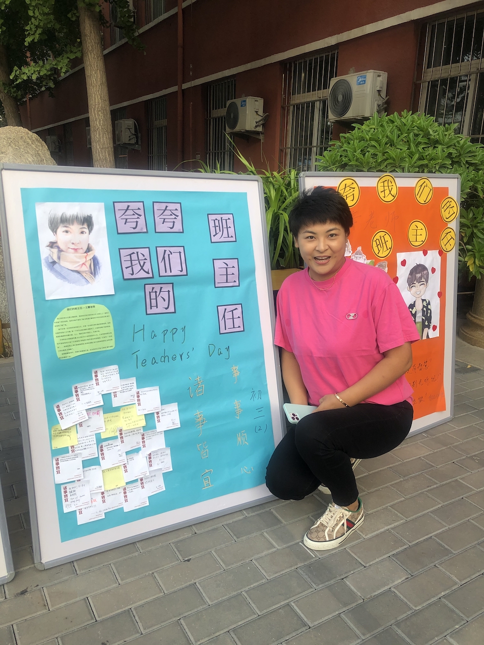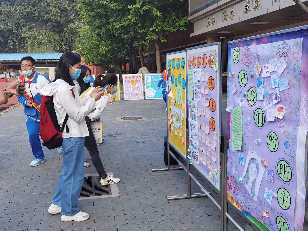 进入校园的老师门看到自己班级的展板,十分惊喜,看着字里行间,无不会心一笑,眼神里充满了感动。很多老师与学生制作的展板合影,并表示,这是收到的最好的教师节礼物!