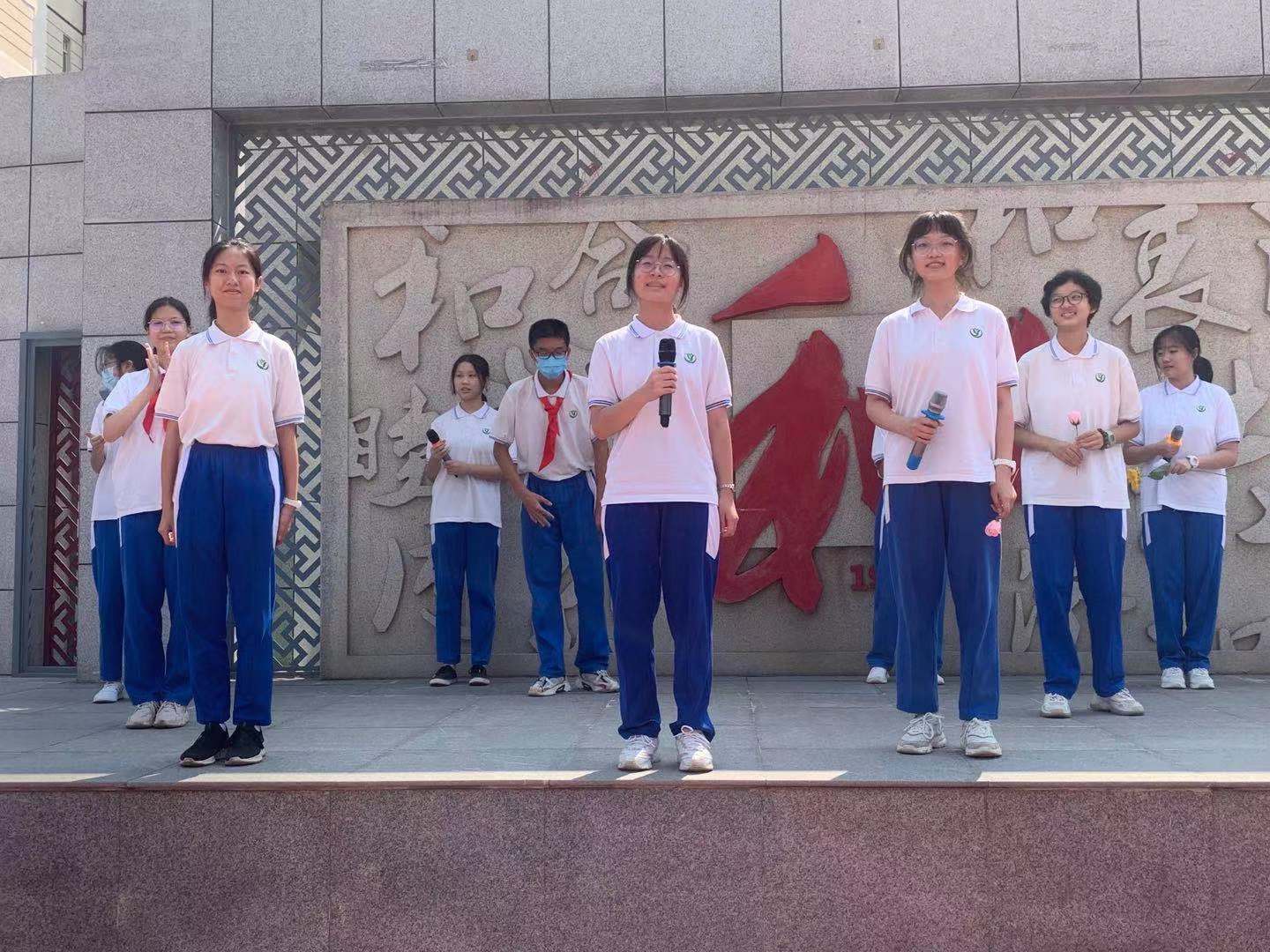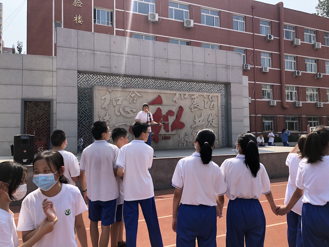 各班班长、文艺委员是教师节活动的主力军,以“我为老师点首歌”为题,提前收集老师们爱听的一首歌,从校广播站进行播放。合唱团成员奉上“快闪”《听我说谢谢你》,赵晨阳同学的原创歌曲演唱,让操场歌声袅袅,温情四溢。全校师生一起欢聚操场,共同度过了一个热烈的教师节。