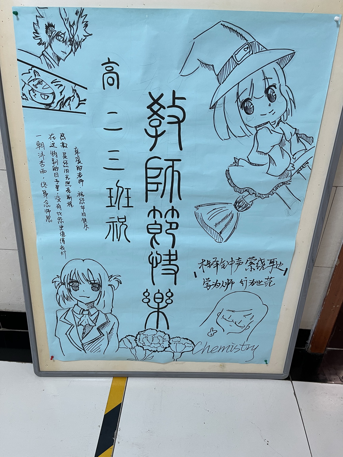 走进教室,学生们真挚的祝福展板无不让老师们感受着“令公桃李满天下,何用堂前更种花”的幸福喜悦。