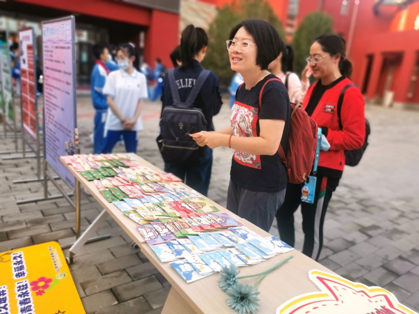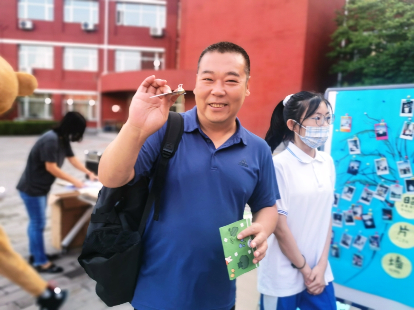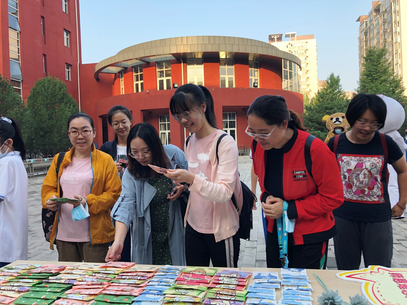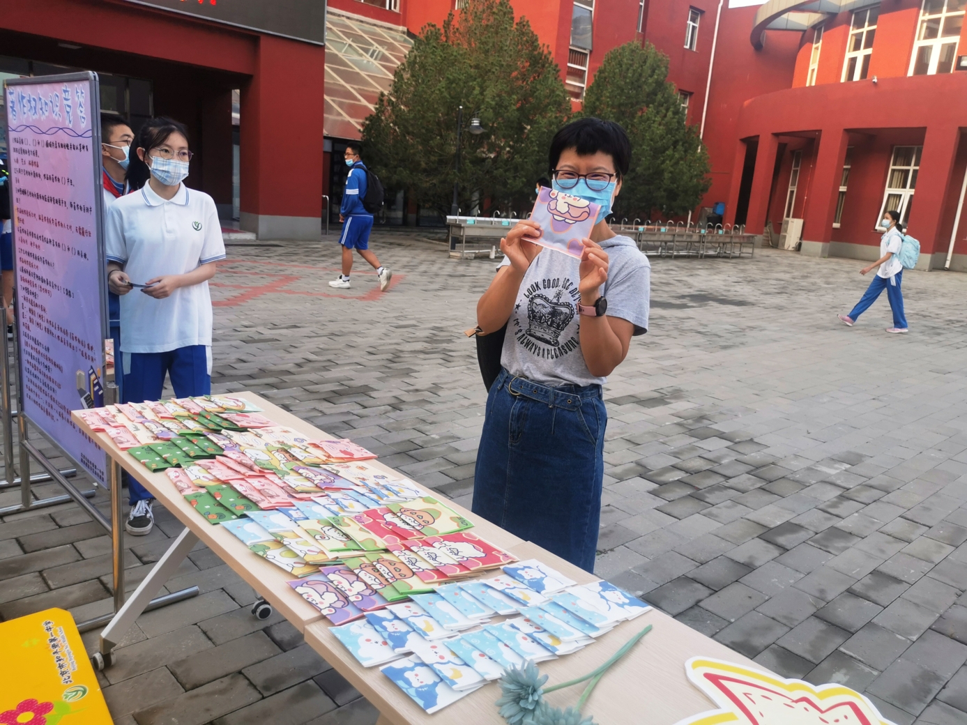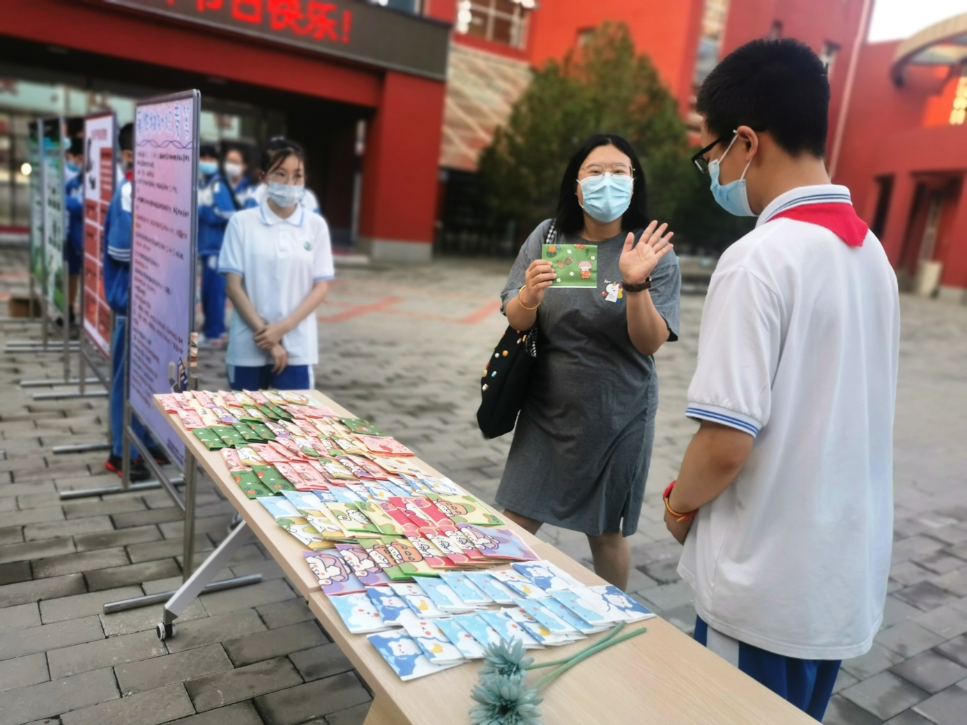 9月10日清晨,两位学生扮演的玩偶在学校小广场迎接师生的到来。同学们纷纷在“老师,我想对您说”区域留下对老师的节日祝福。老师们有的抽取“甜蜜礼包”,礼包里的喉糖和幸运小纸条让老师们会心一笑;有的驻足“最美身影照片墙”,开心的取下自己的专属相片;有的在“请留下您的心情”区域描绘出自己的节日心情;有的在拍照区跟学生和玩偶欢笑合影。师生们的欢声笑语伴随着美妙的歌声,现场沉浸在温暖人心的节日氛围中。