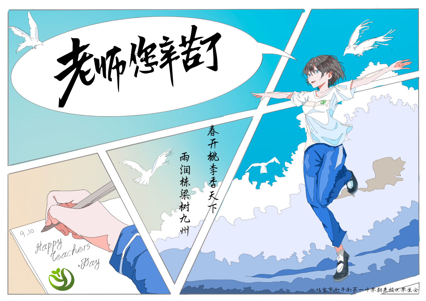 饮水思源,莫忘恩情。老师是平凡岗位的守护者,用汗水点亮希望,用信念成就梦想。朝来校区的和一学子们用自己的方式感恩一路走来传道、授业、解惑的老师们。祝福天下所有的老师们节日快乐,桃李芬芳满天下!
