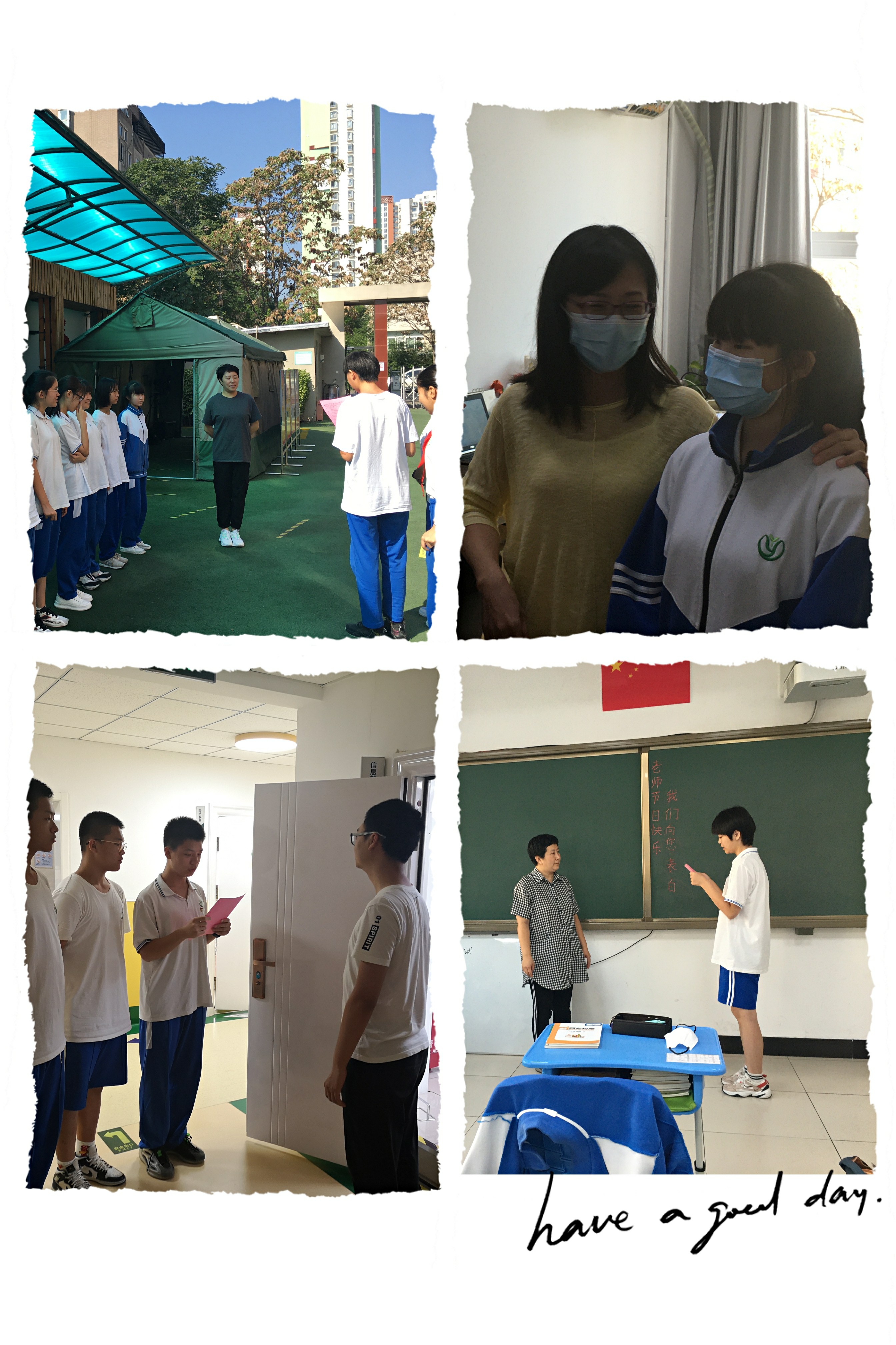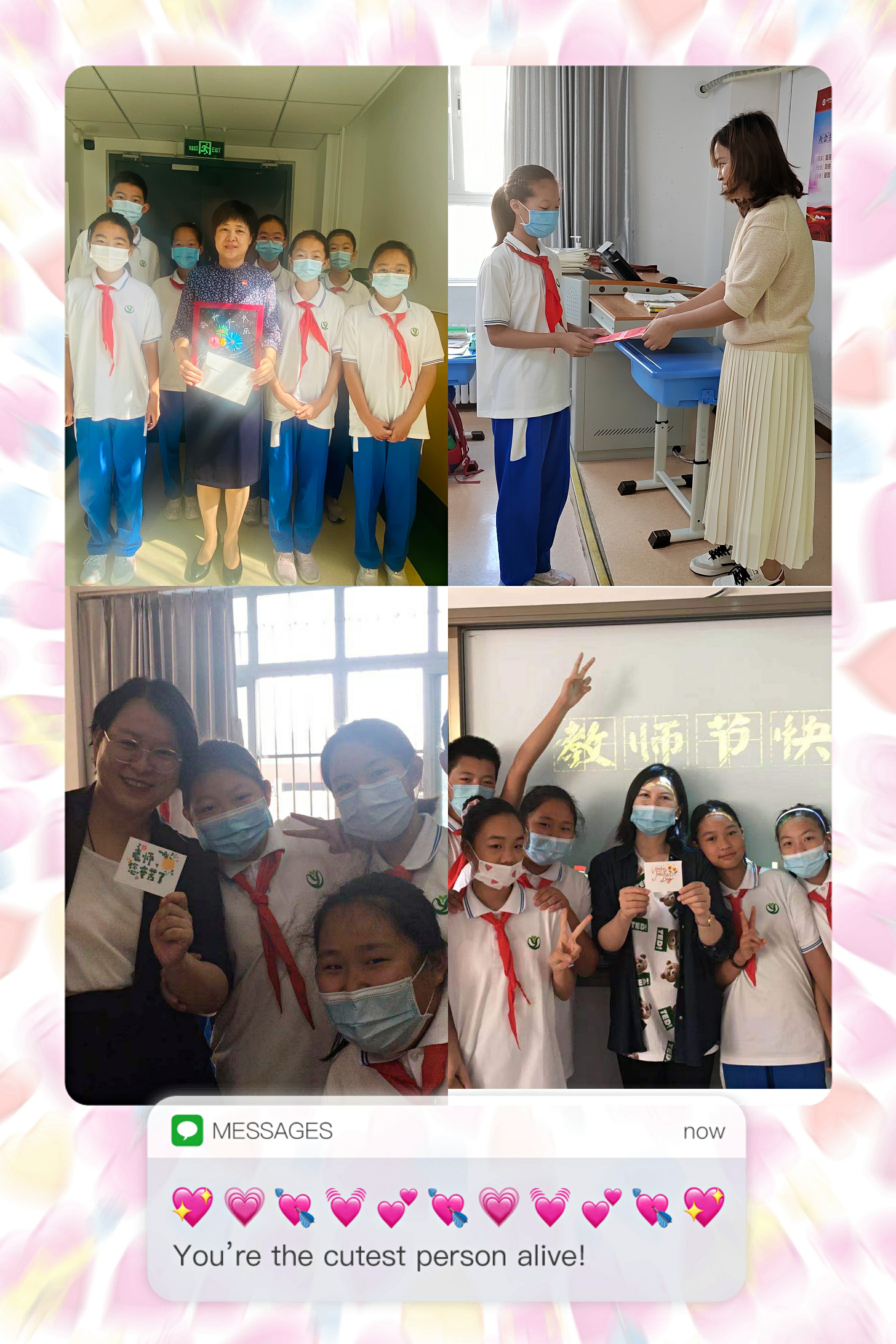 9月10日一早,同学们迎着朝阳,早早地在学校门口,向老师们送上了自制的小贺卡和饱含真情的祝福。当老师们一早看到办公桌上节日情真意切的信件时,更是充满幸福和快乐!这是周建萍副校长连续第三年为他们送上的真挚祝福。 当课前听到同学们的“表白”,看到展板上学生为自己原创的诗词文章时,一种作为教师独有的骄傲和自豪感油然而生,更加坚定“赓续百年初心,担当育人使命”的信念。