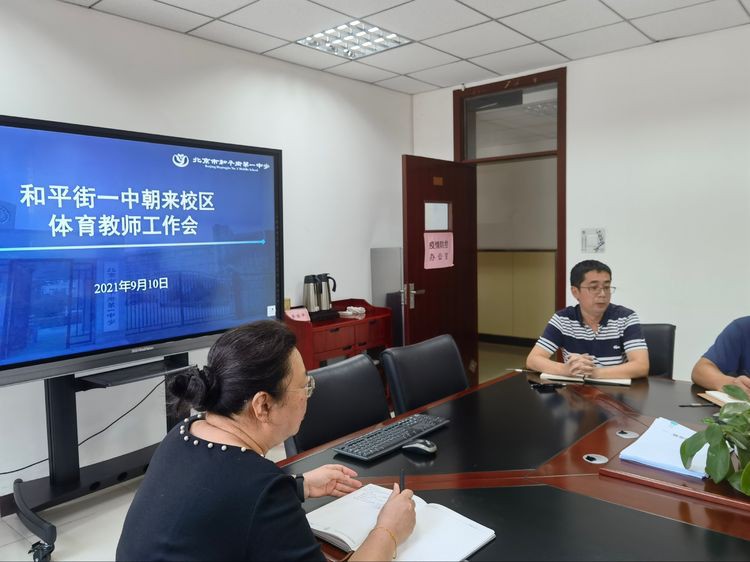 2021年9月10日,在第37个教师节之际,和平街一中朝来校区召开了体育教师工作会,校区主管校长张景鲜、教学副校长邓立、校务办公室主任朱浩、学生发展处主任张东辉以及全体体育教师参加了会议。
