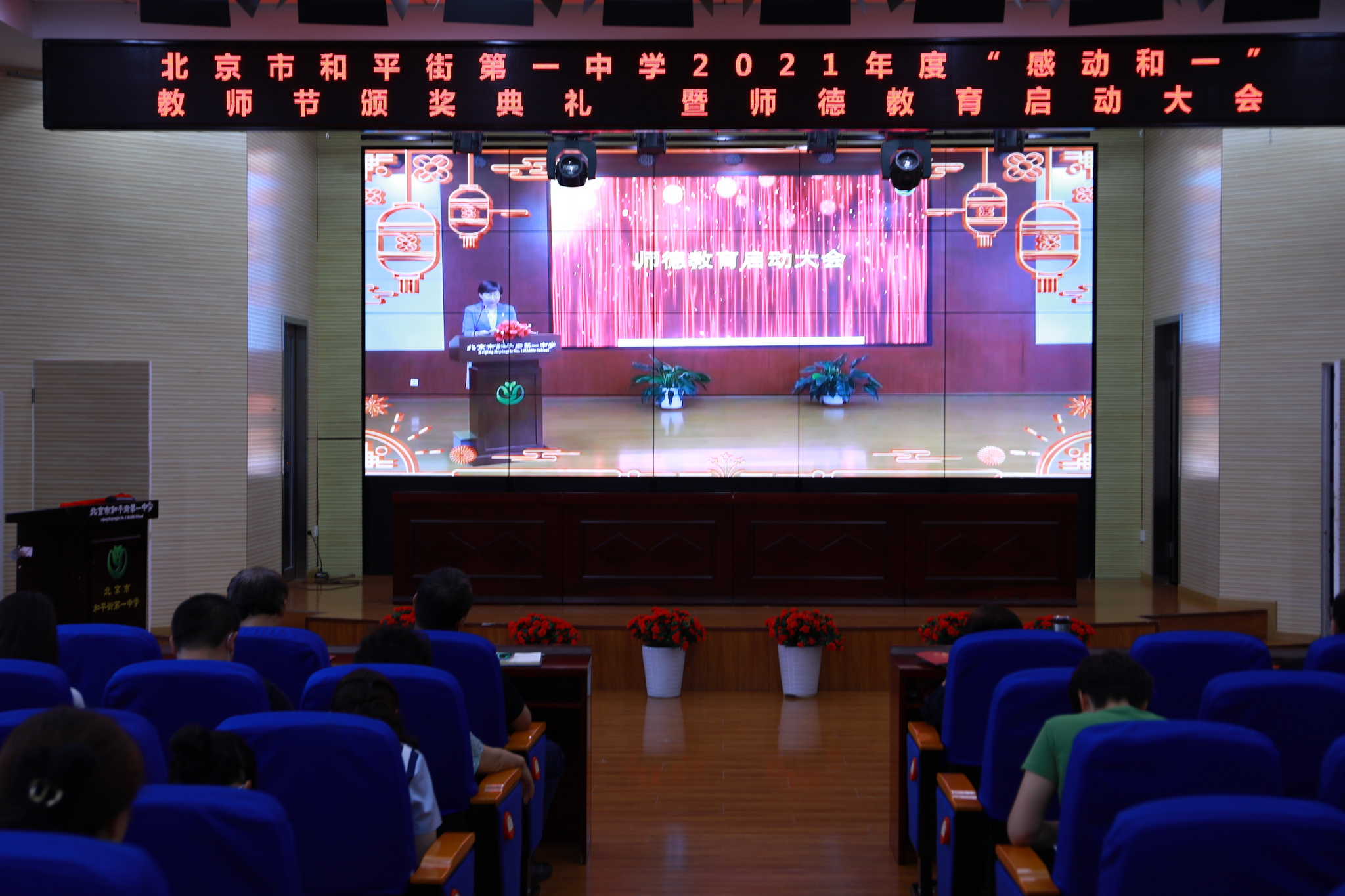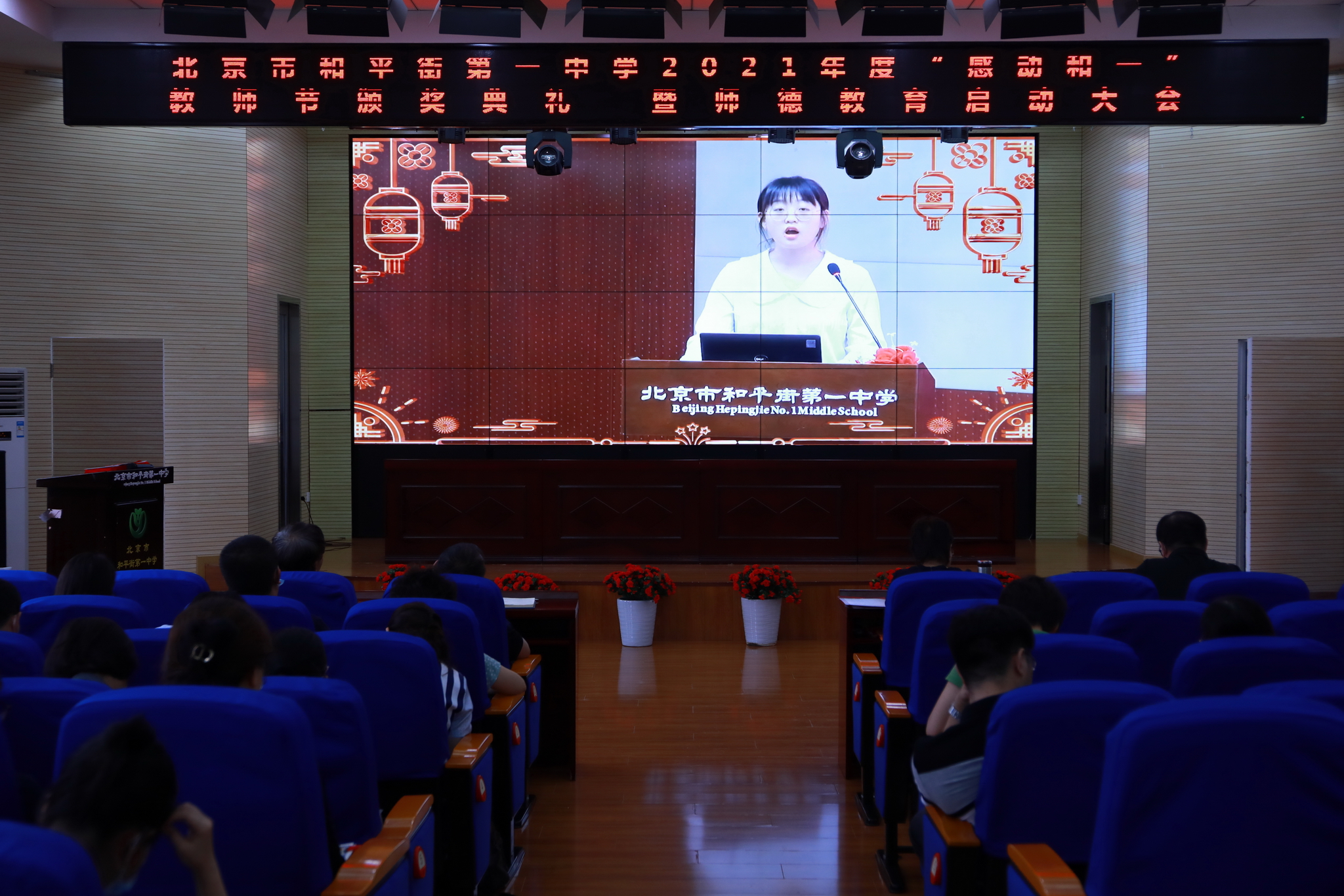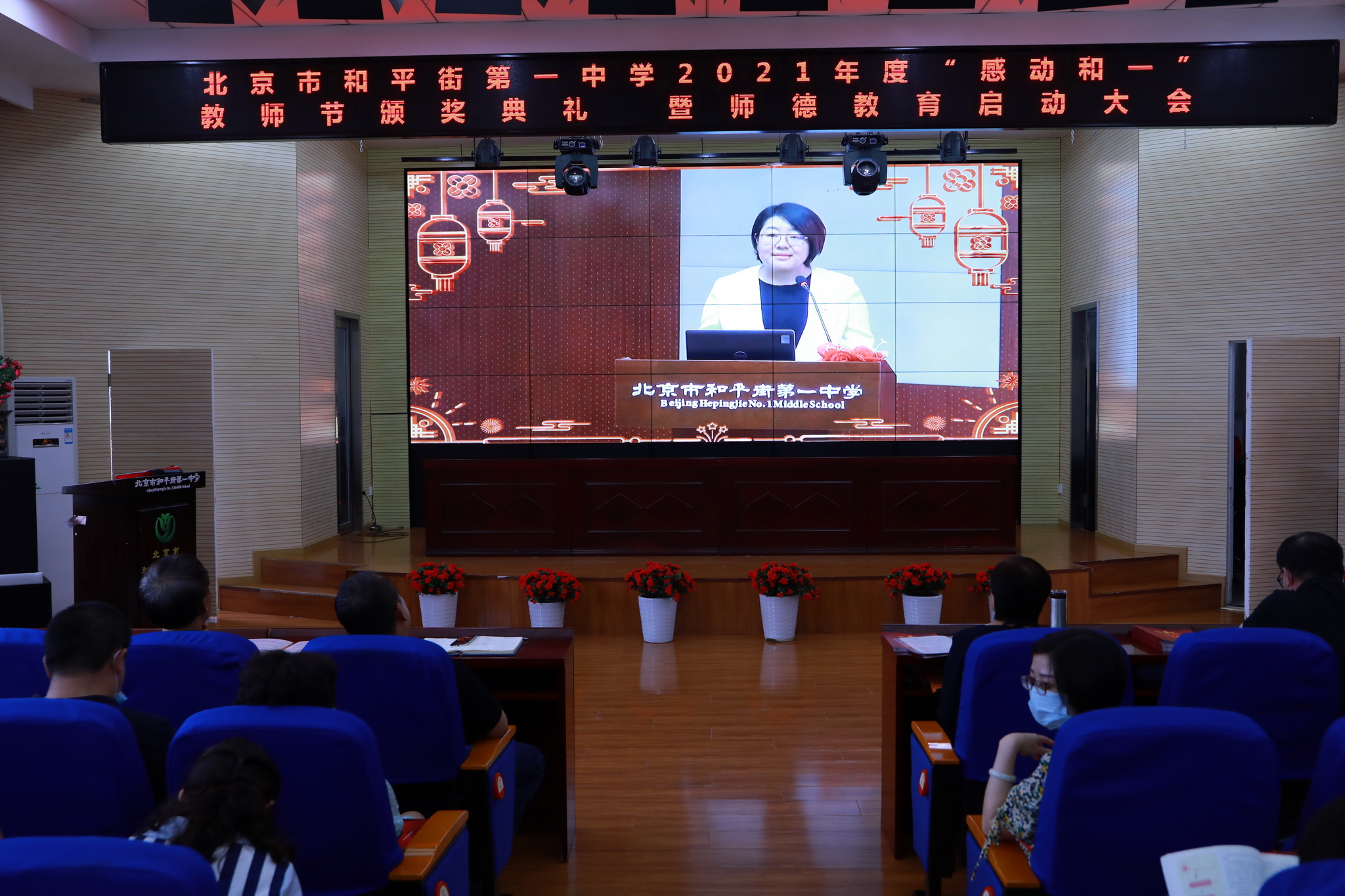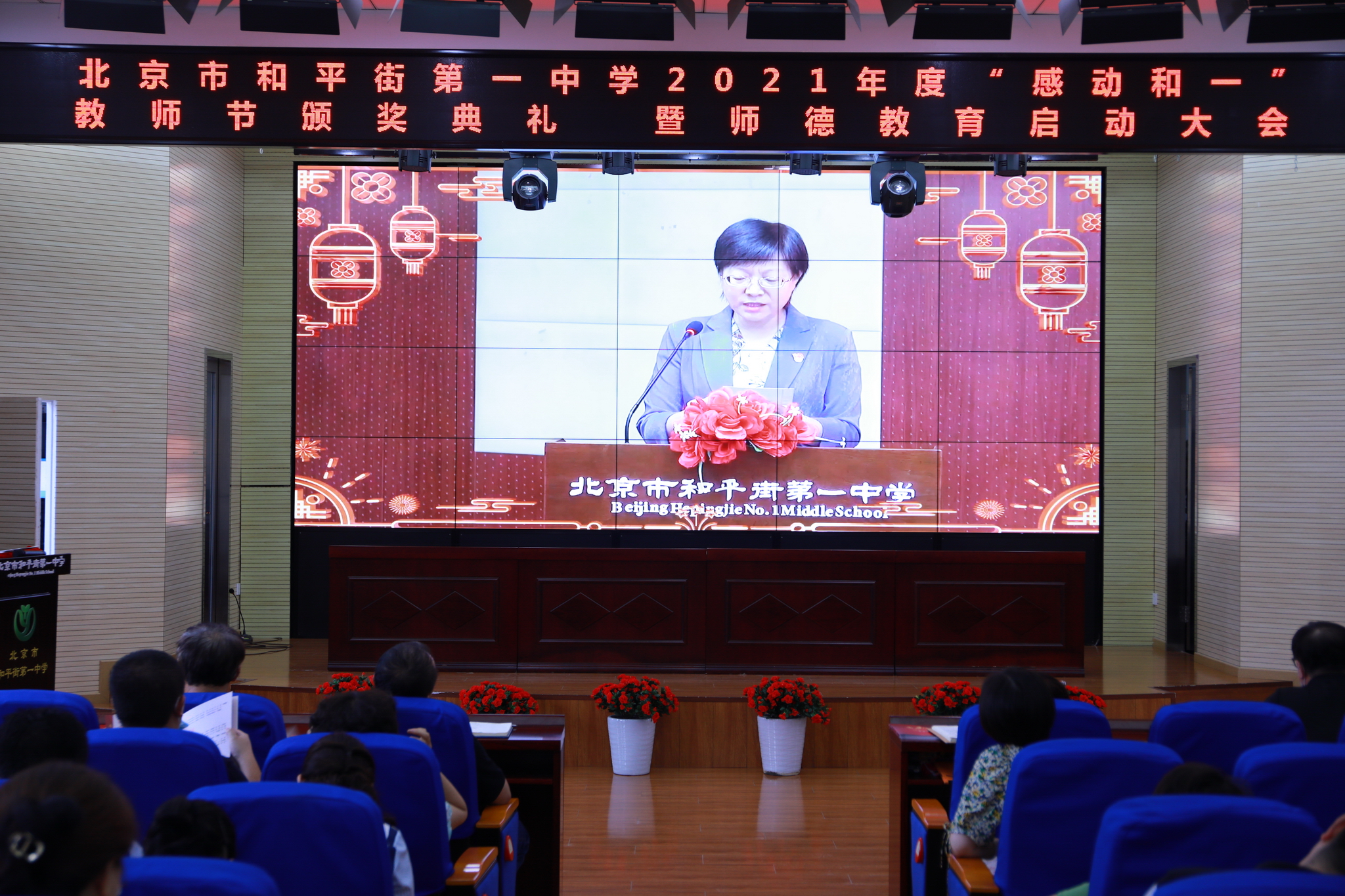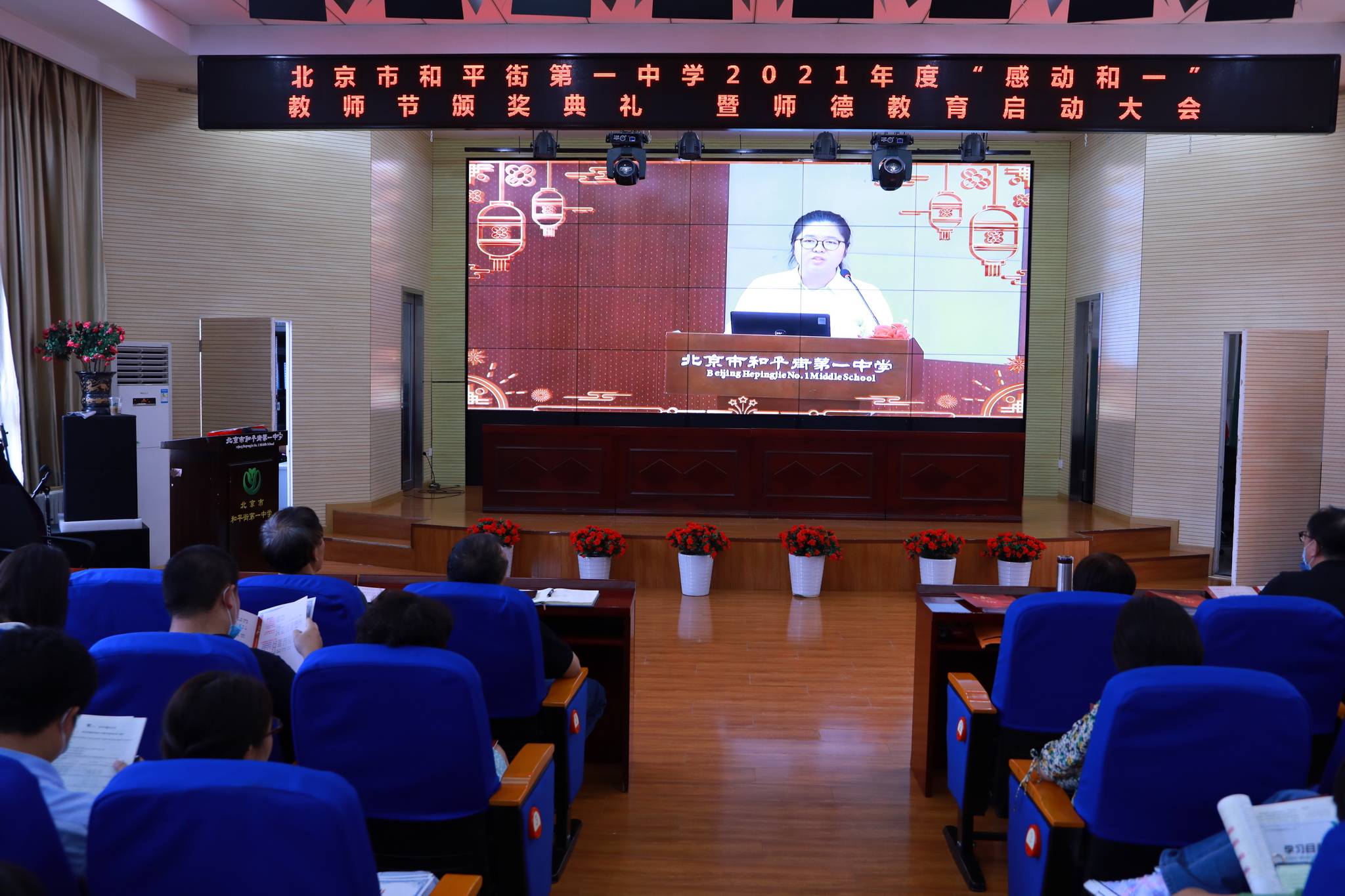 2021年9月14日下午,和平街一中隆重举行2021年度“感动和一”教师节颁奖典礼暨师德教育启动大会。六校区教职工及学生代表分别来到校区指定会场,共同庆祝教师们重要的节日。按照疫情防控要求,本次活动改为录播和校区现场颁奖的方式进行。
