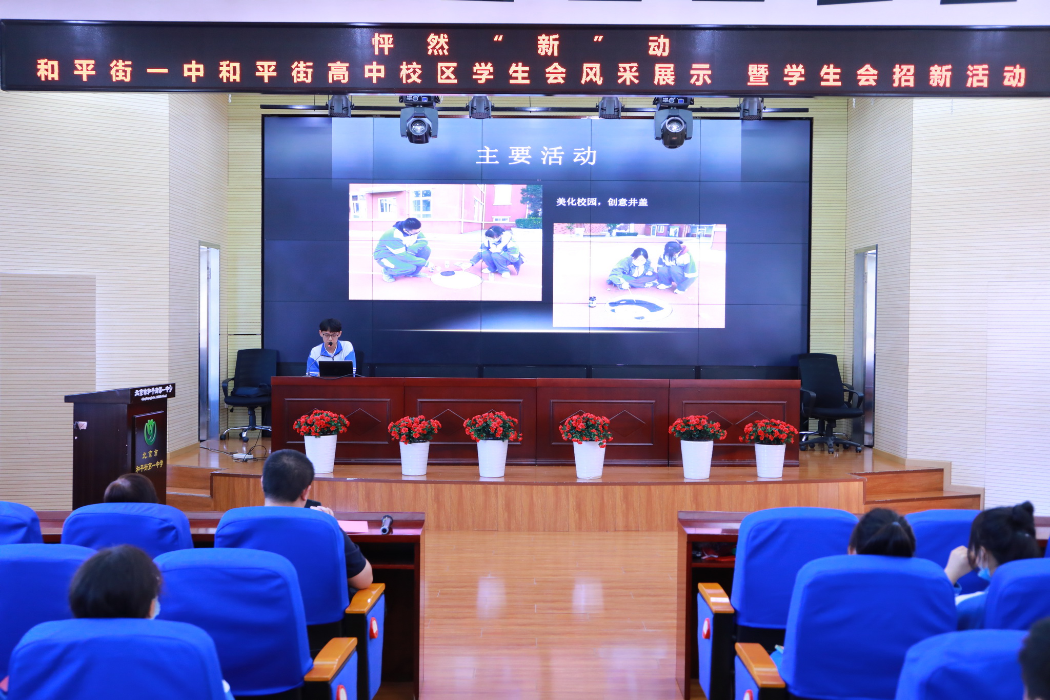 任何一个生命,都有属于自己的时光;任何一个小舞台,都值得拼搏闯荡。为了给学生提供一个锻炼自我、提升自我的平台,促进学生自我教育、自我管理、自我服务,培养学生全面成才,2021年9月17日,北京市和平街第一中学和平街高中校区开展了校学生会风采展示暨学生会招新活动。