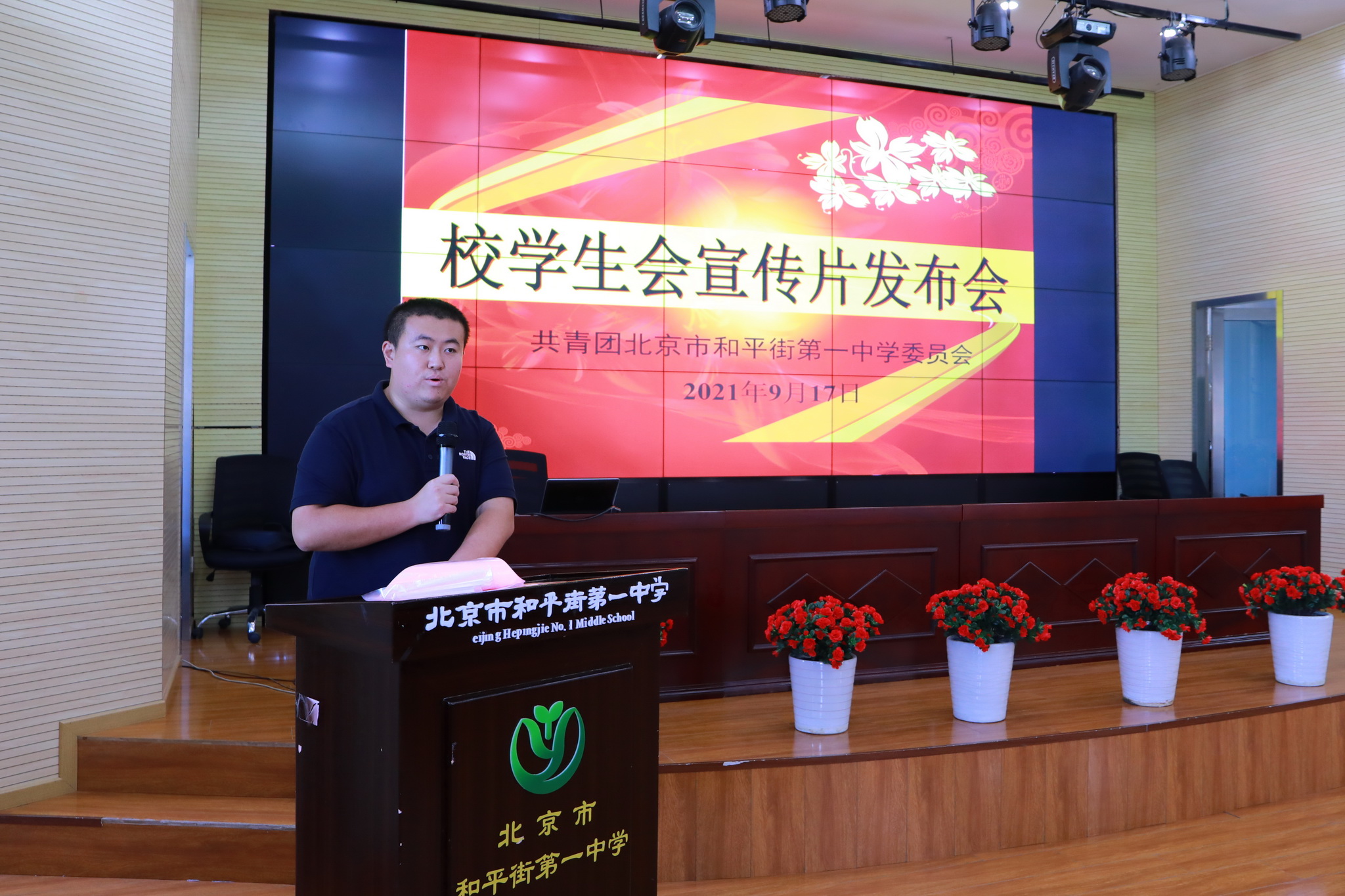 2021年9月17日,和平街一中校团委举办了校学生会宣传片发布会。学校党总支书记张静、校长助理李春光、校团委书记刘争出席了发布会。全体学生会成员及学生代表参加了发布会。