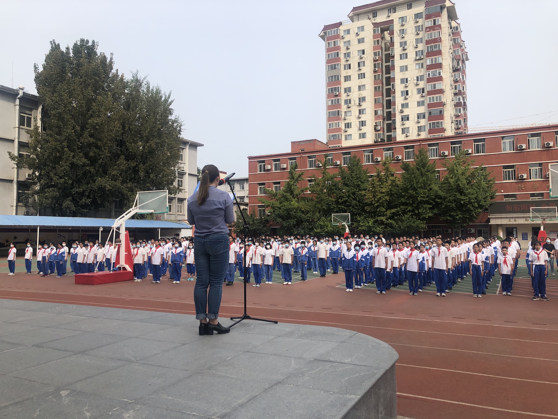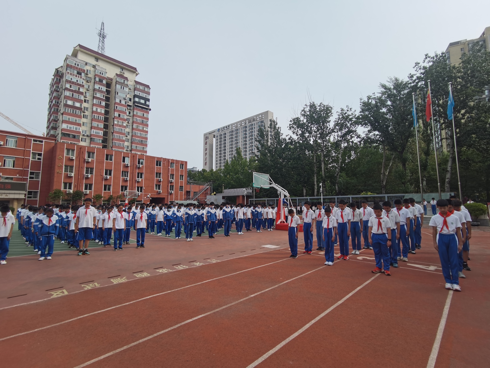 时光流逝,“九一八事变”虽然已经过去了90年,但我们始终无法淡忘,不曾忘、不敢忘、不能忘!升旗仪式上,每一位师生都面色凝重,目视着国旗班的每一位成员,踏着正步护卫着国旗走向国旗台;光荣升旗手是本年度荣获我校“优秀共产党员”称号的朱舒曼老师,建党百年庆祝大会上,她作为合唱团主训老师带领合唱团学生以优秀地表演完成了此次重要任务;在国旗下的爱国教育课上,历史学科王珊老师生动地讲述了那段沉痛的过去,并借用习近平总书记在《庆祝中国共产党成立100周年大会上的讲话》中的字句勉励所有师生奋发图强,不忘时代赋予我们的重任。讲话结束后,全体师生对在这段历史中丧生的先烈和承受苦难的人民集体默哀一分钟。