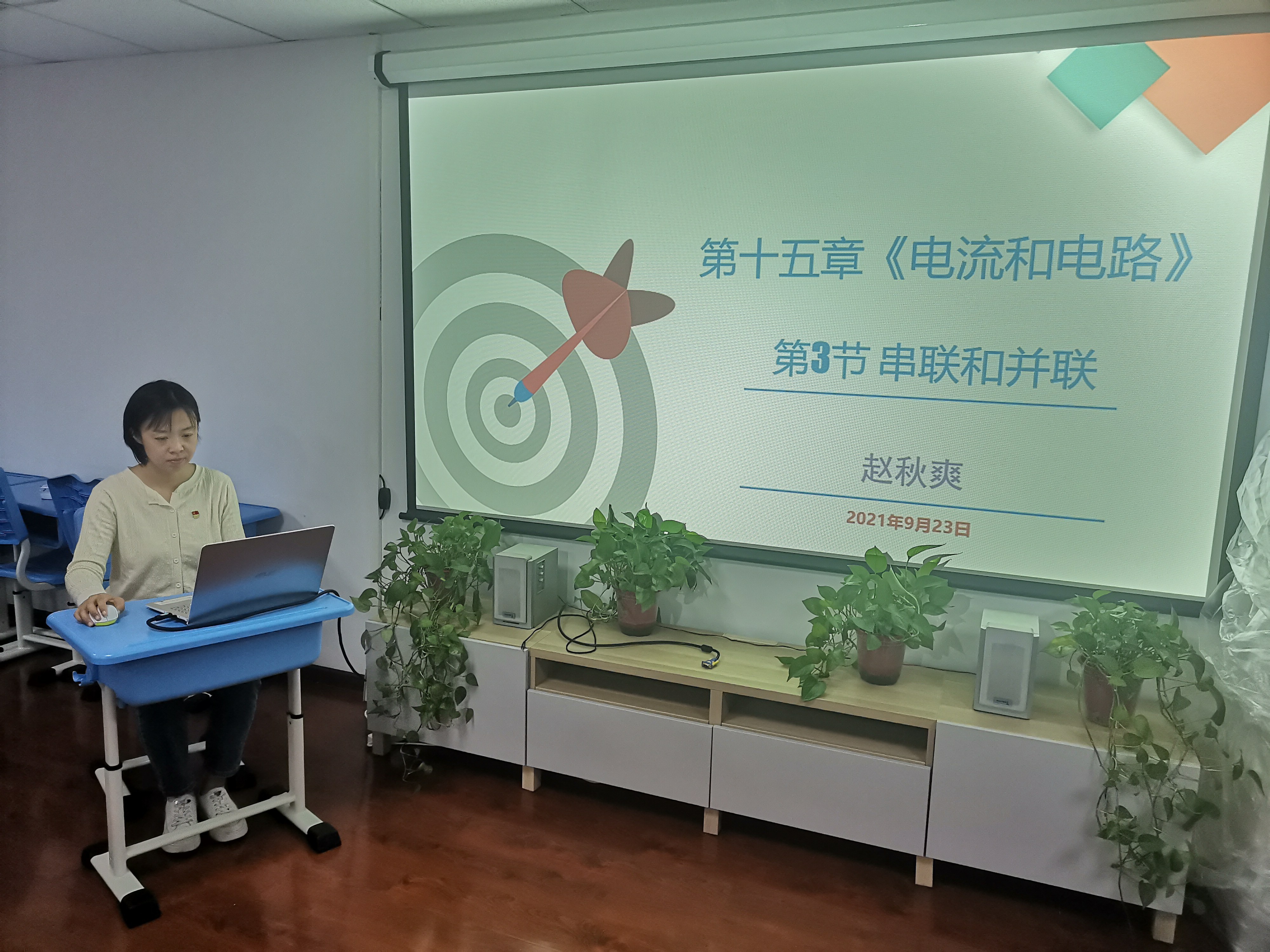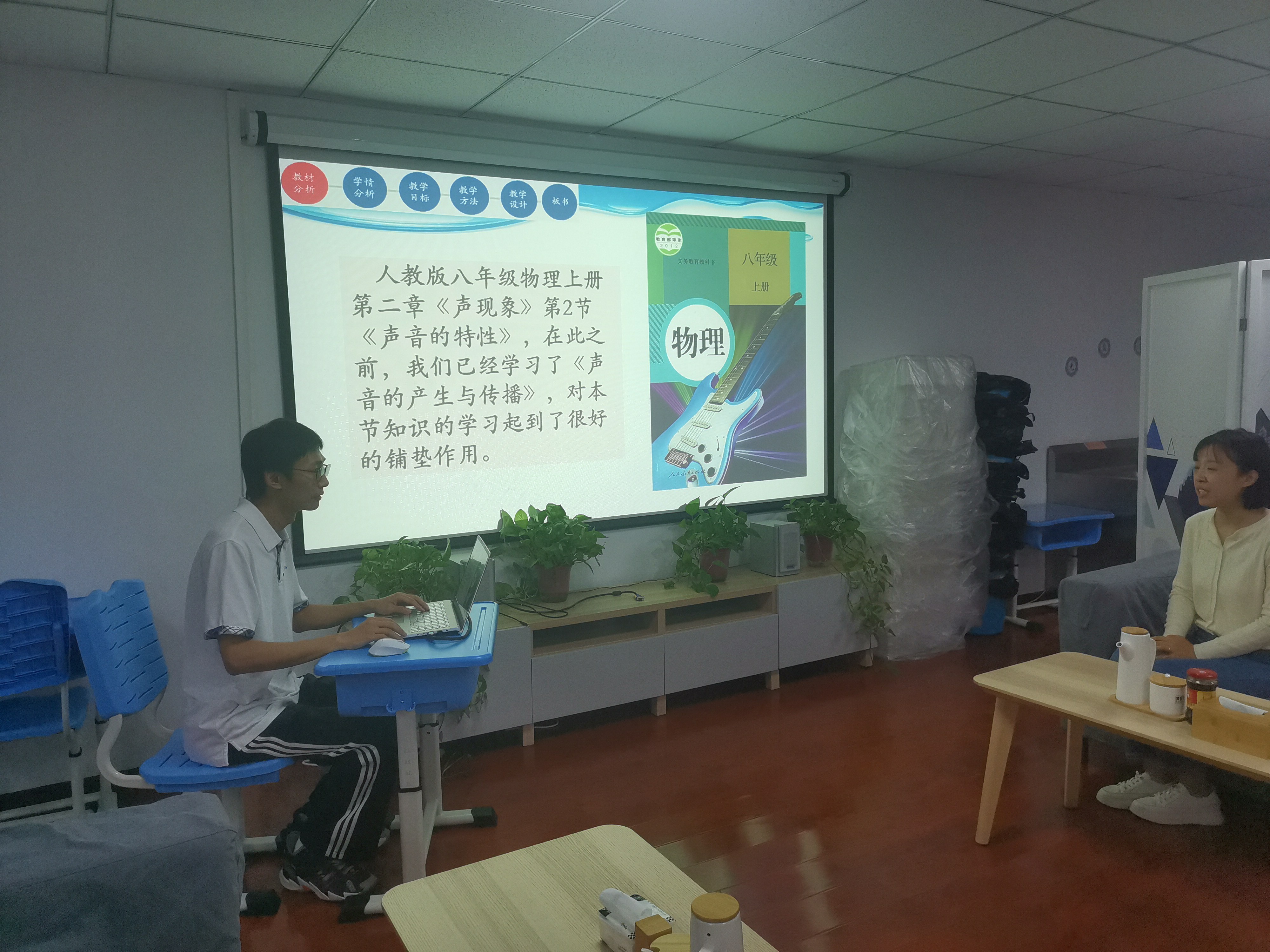 2021年9月23日下午,和平街一中奥运村校区理综组进行第二届“朝阳杯”初中教师基本功初赛选拔活动。组内物理老师赵秋爽、郑磊进行了说课展示,题目分别是《串联和并联》和《声音的特性》;化学老师袁媛进行了解题说题的展示,选择的是《2021北京中考38题-科学探究》,校区主管周建萍副校长和王争主任以及理综组的全体老师参加了活动。