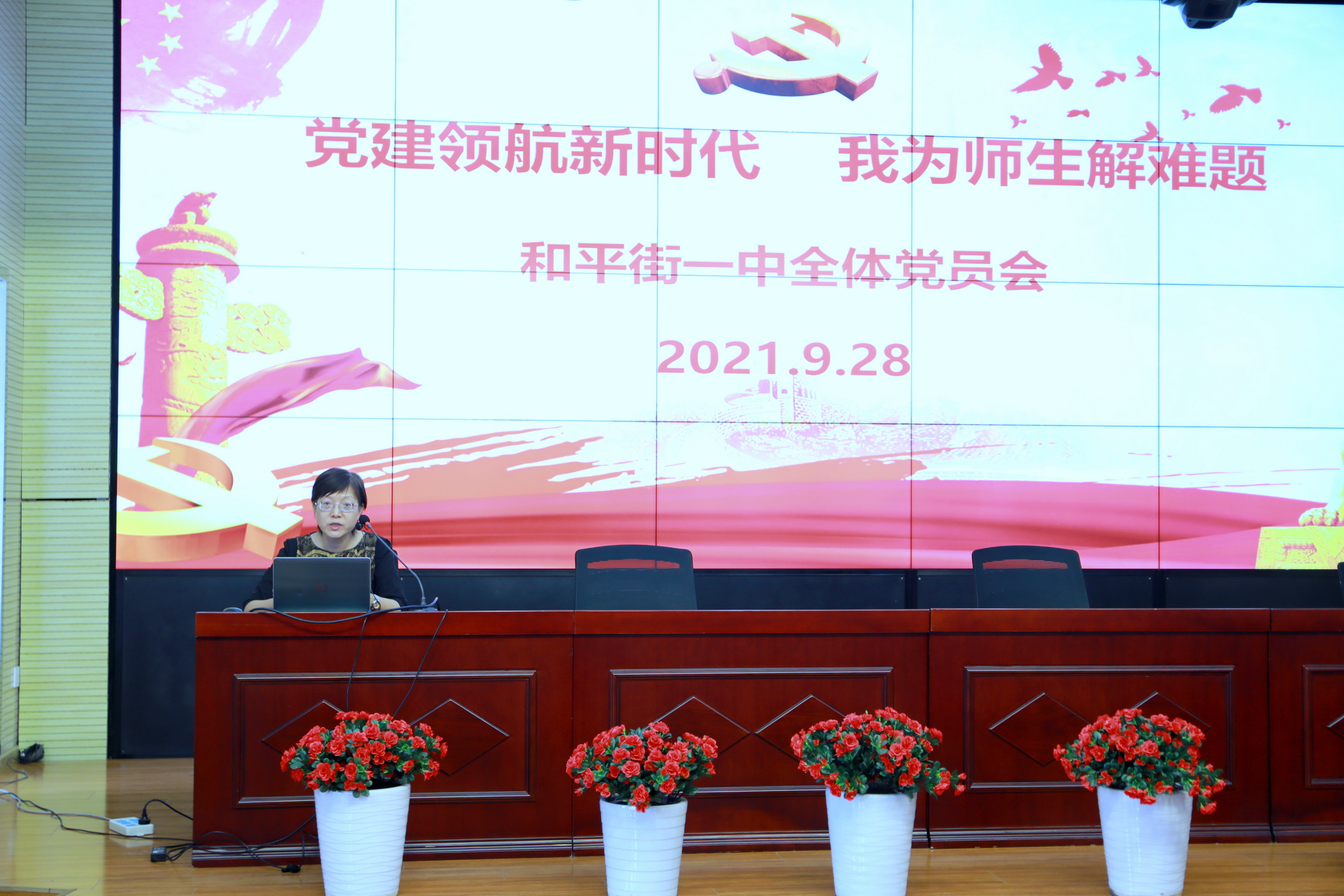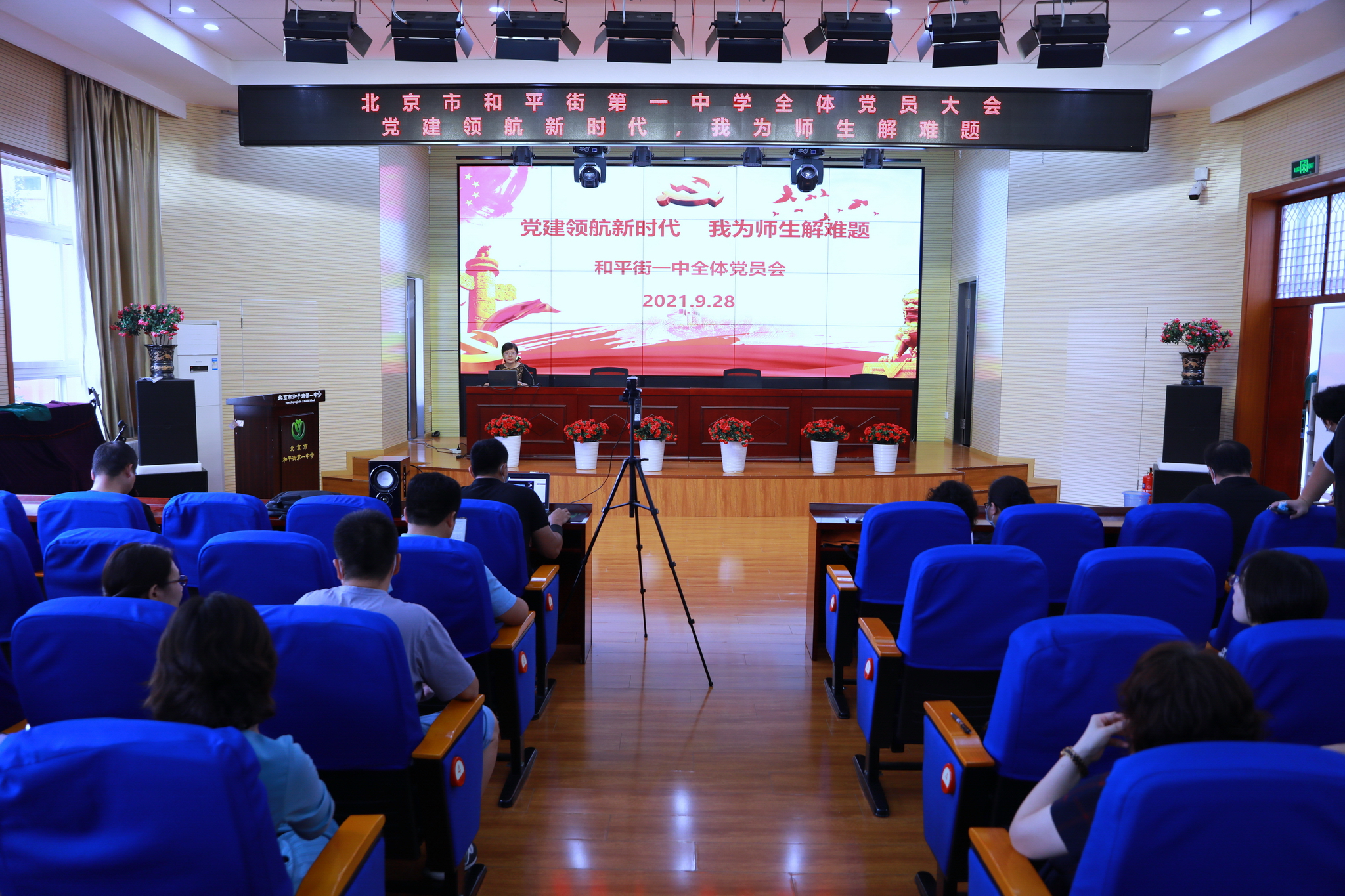 2021年9月28日,北京市和平街第一中学党总支召开了全校党员大会。会议以和平街高中校区为主会场,其他校区视频直播的方式进行。