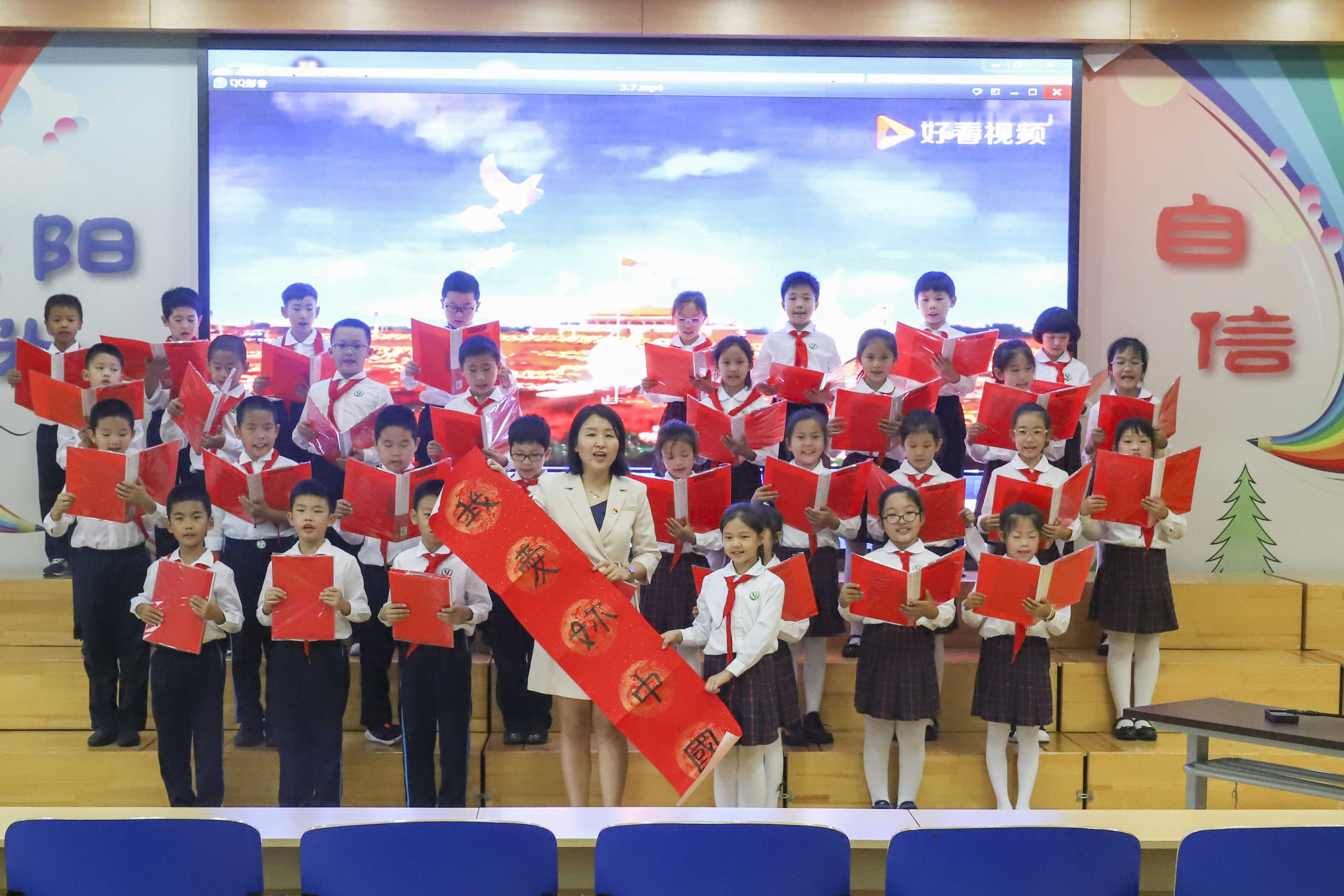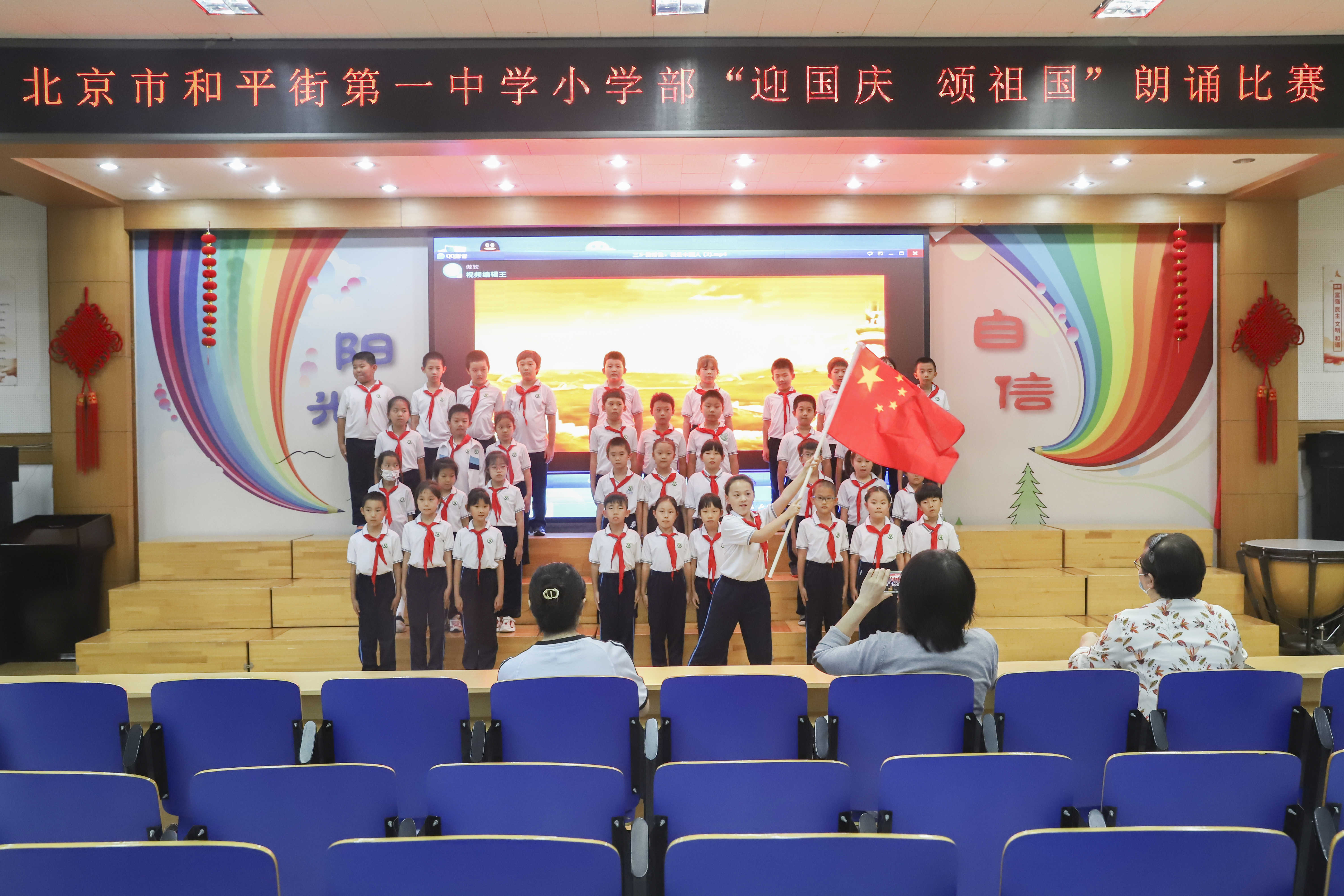 学校为参赛班级设立了一、二等奖,邀请教学干部做评委,并挑选出五个特色班级于9月30日上午为全体师生进行展示。