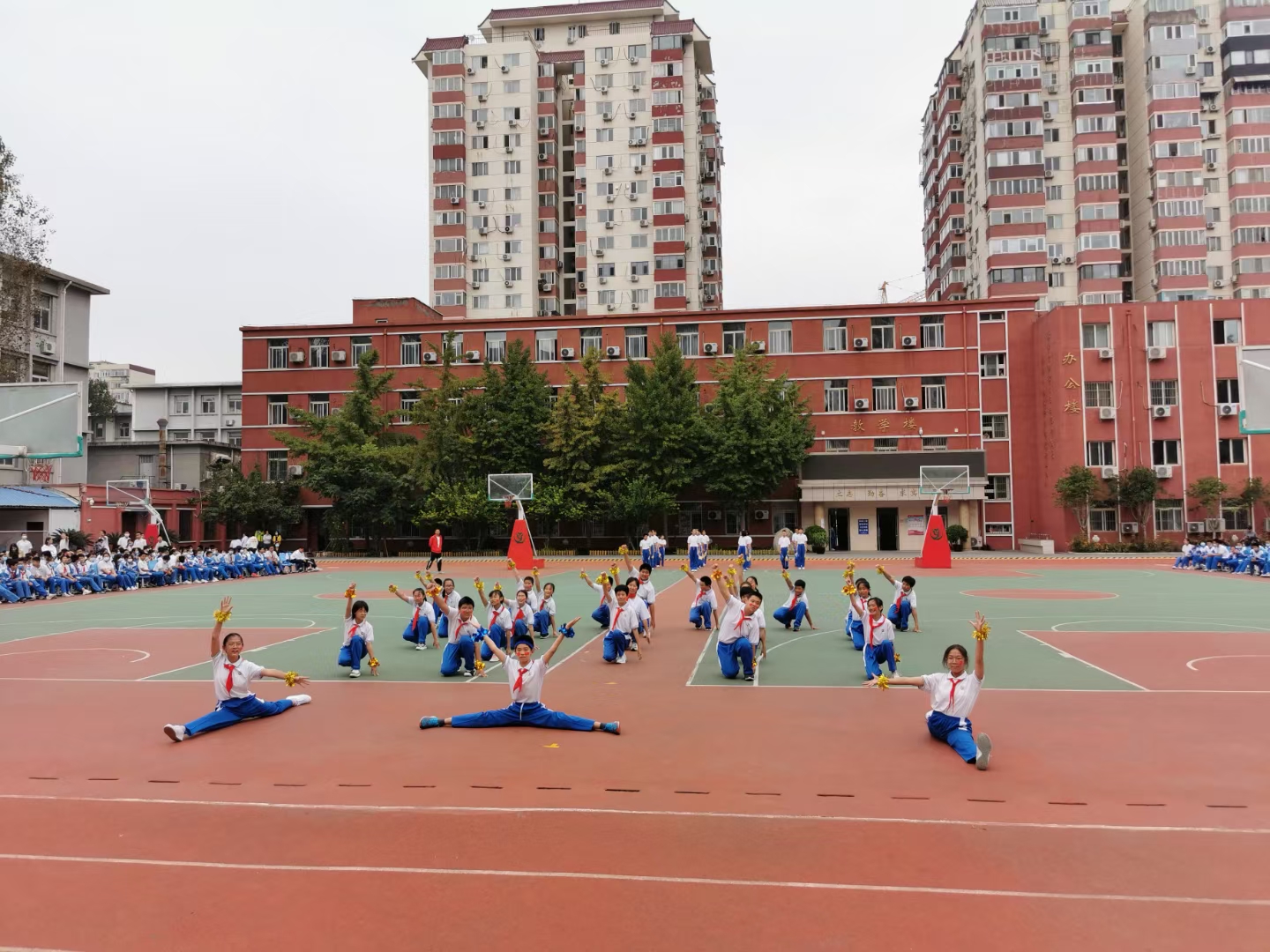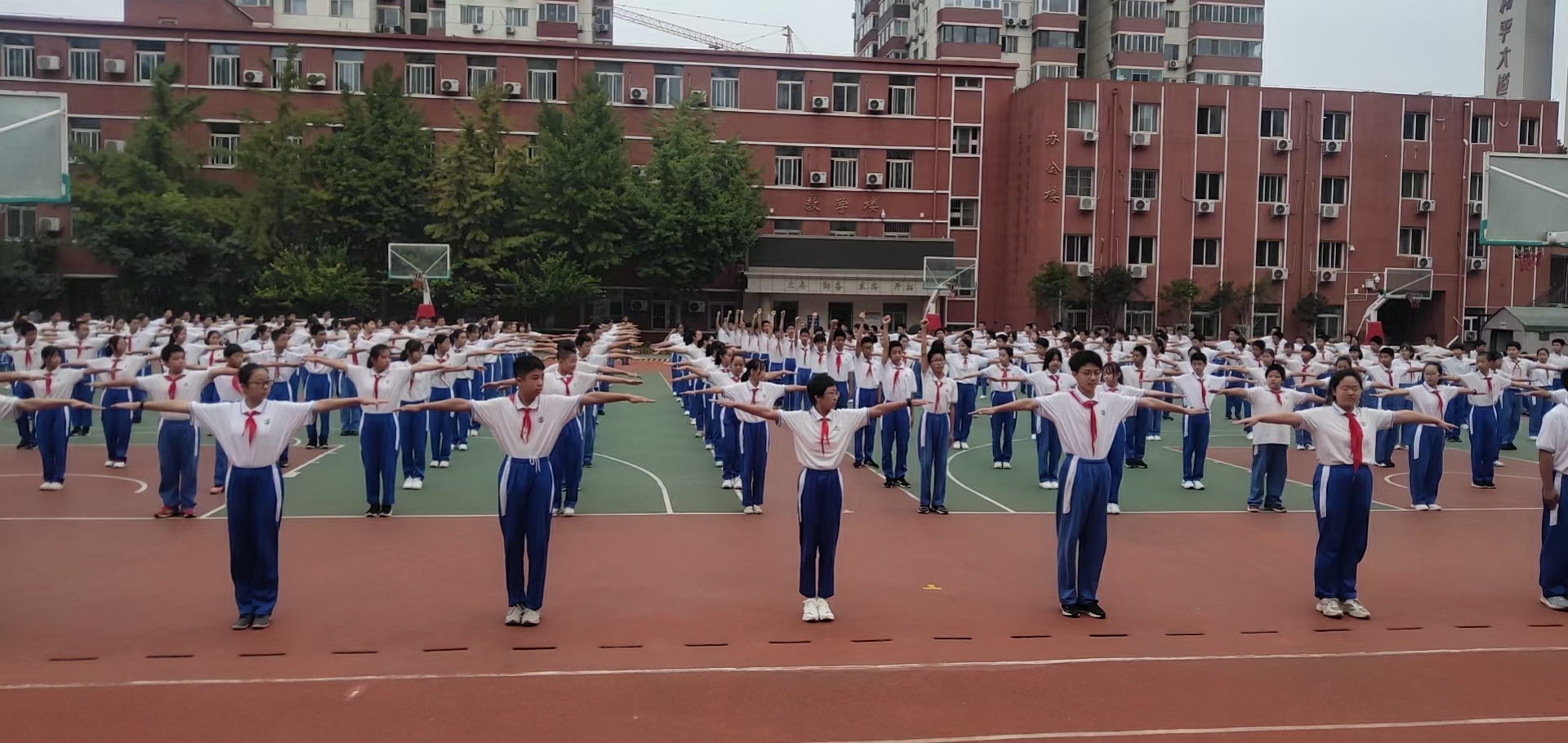 2021年9月30日,淡淡清秋,新学月满,和平街初中校区组织了以“强国有我·强健体魄”为主题的会操比赛,初中三个年级的师生共同参与,由校领导、教师代表、家委会成员组成了评委团。