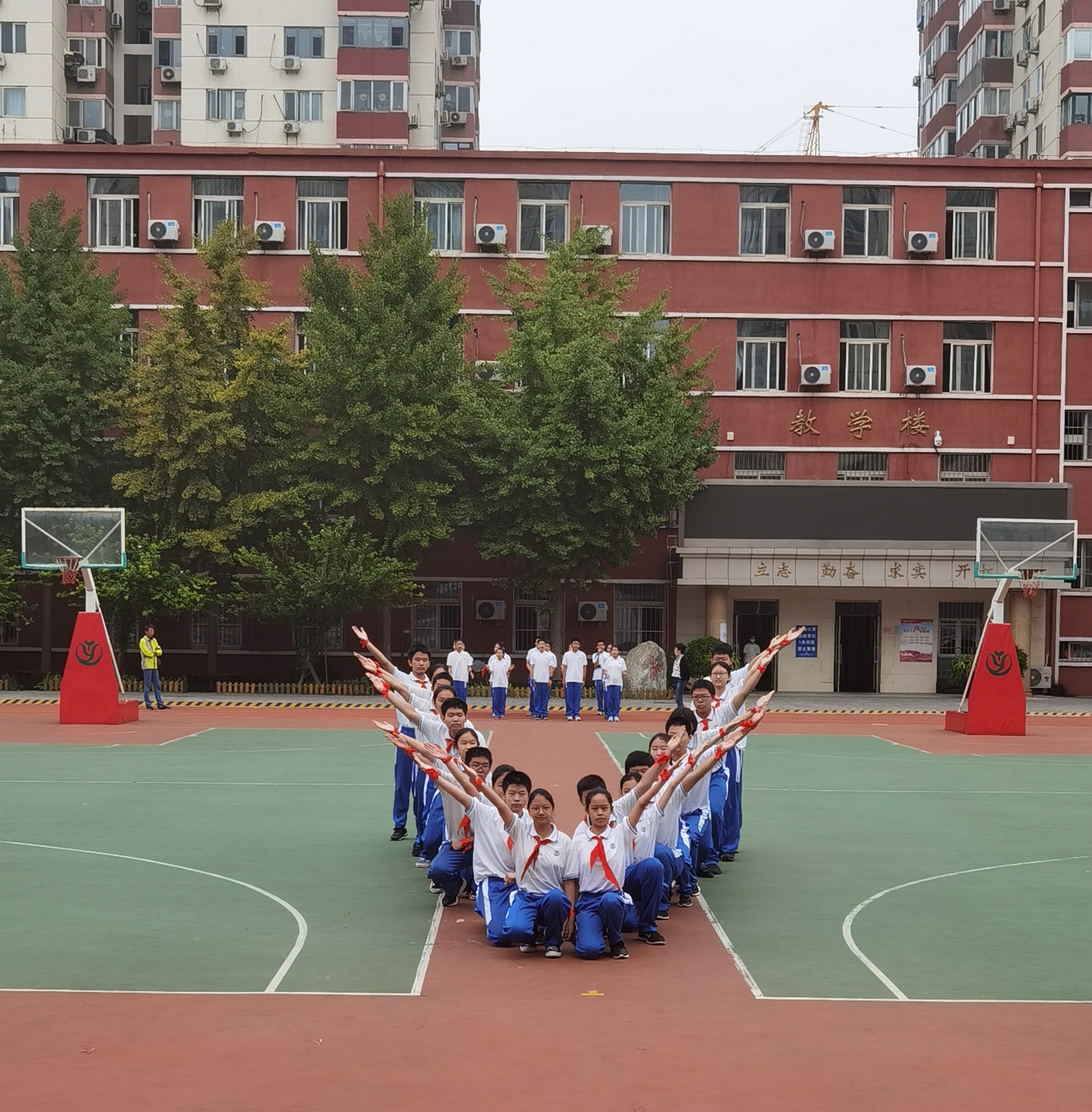 国庆节即将到来,让我们用身姿为毛笔,操场做纸张,挥毫泼墨写出万般精彩,献给正值青春的每一个人,同时也献给母校和一,用我们的实际行动,为伟大祖国即将到来的生日献上祝福!祝祖国生日快乐!祝和一全体师生们国庆节快乐!