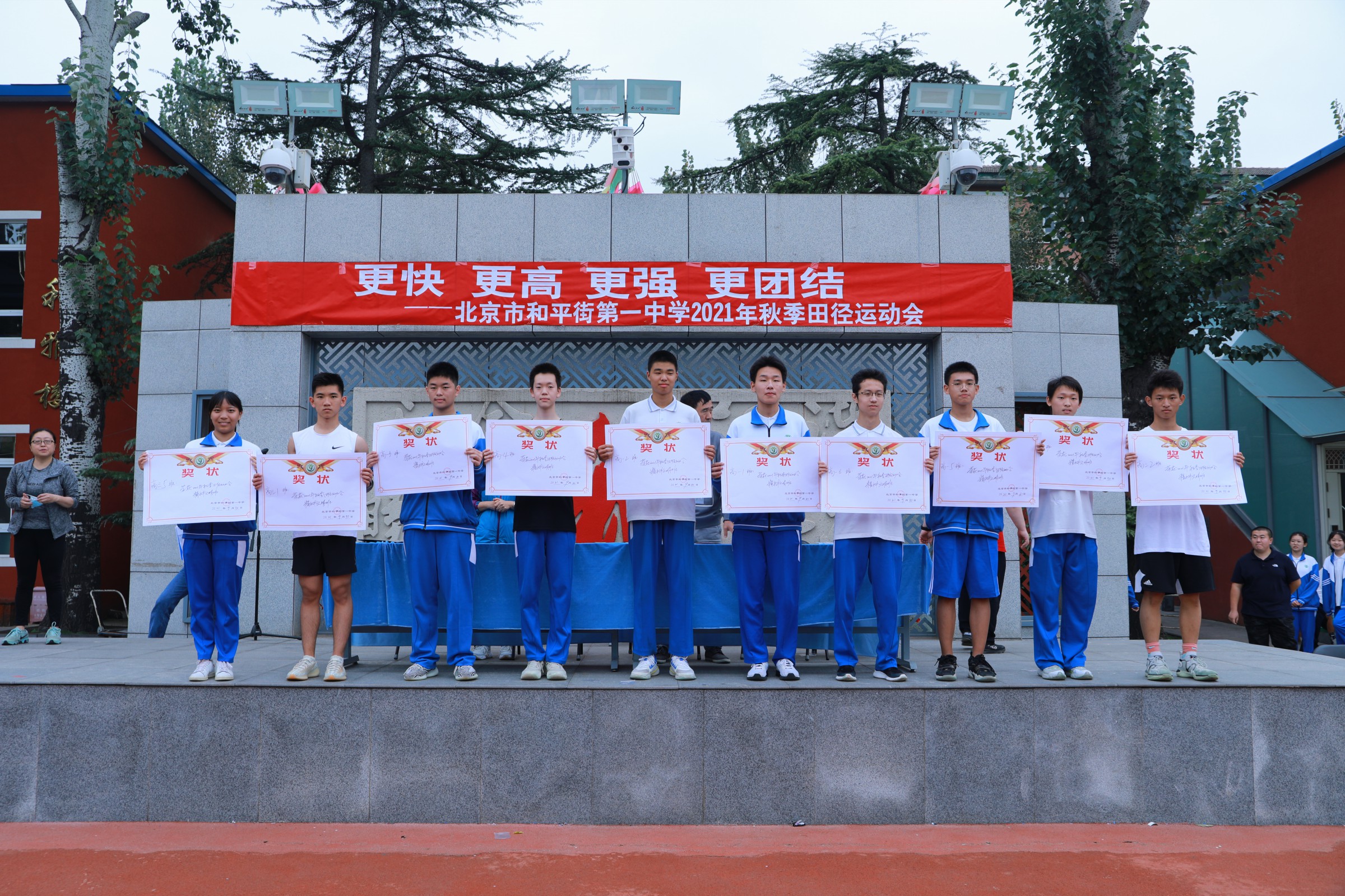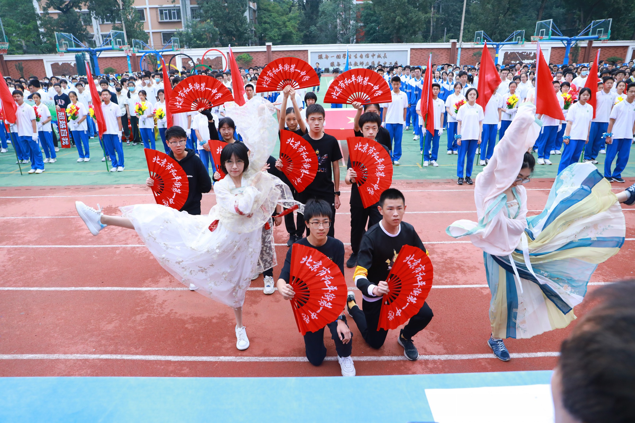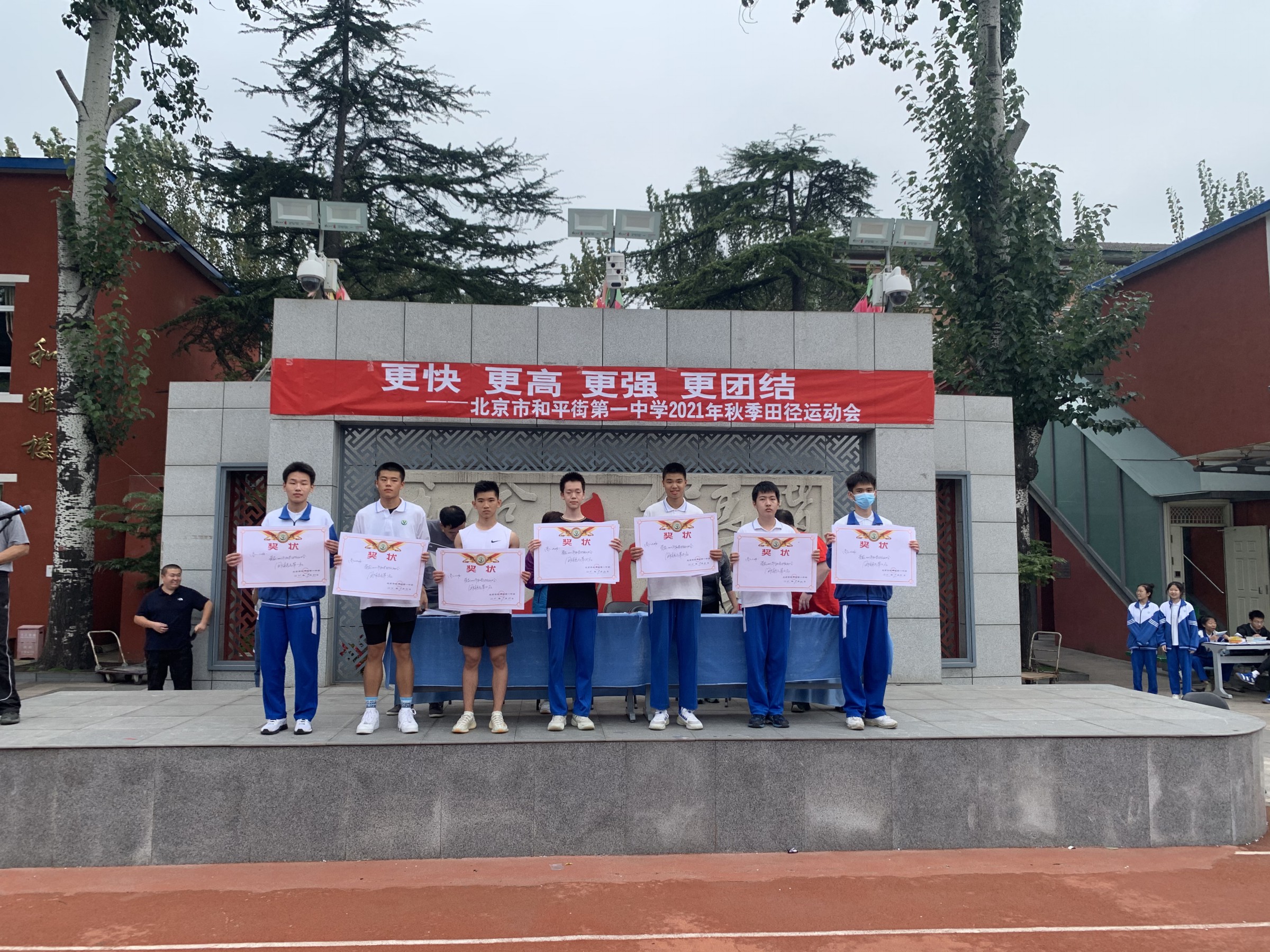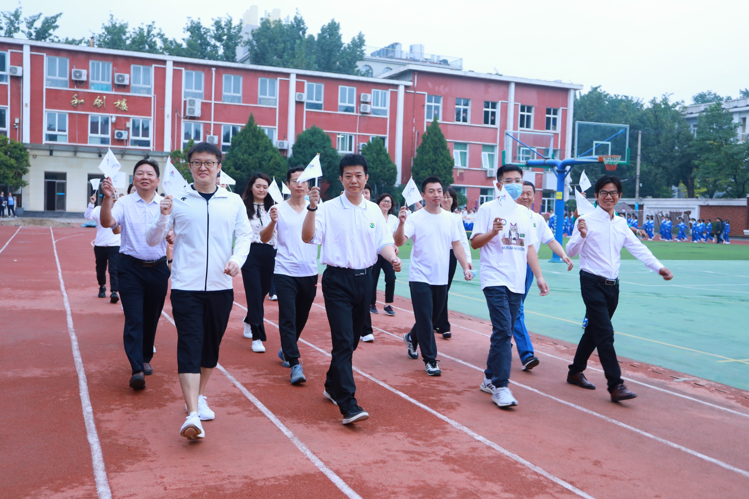当第32届夏季奥林匹克运动会的圣火在东京熄灭,中国奥运健儿们载誉而归,乘着第十四届全运会东风,莘莘学子带着朝气与活力迈入和一校园。鲜花举起,红旗飘扬,2021年9月30日早7点,北京市和平街第一中学和平街高中校区2021年秋季运动会拉开帷幕。校党总支张静书记、和平街高中校区主管副校长曹成勇、校长助理张习文、校长助理李春光、学生发展处主任卢岩、党办主任崔静、团委书记刘争、全体教师出席了开幕式。开幕式由总务处主任邓科军主持。