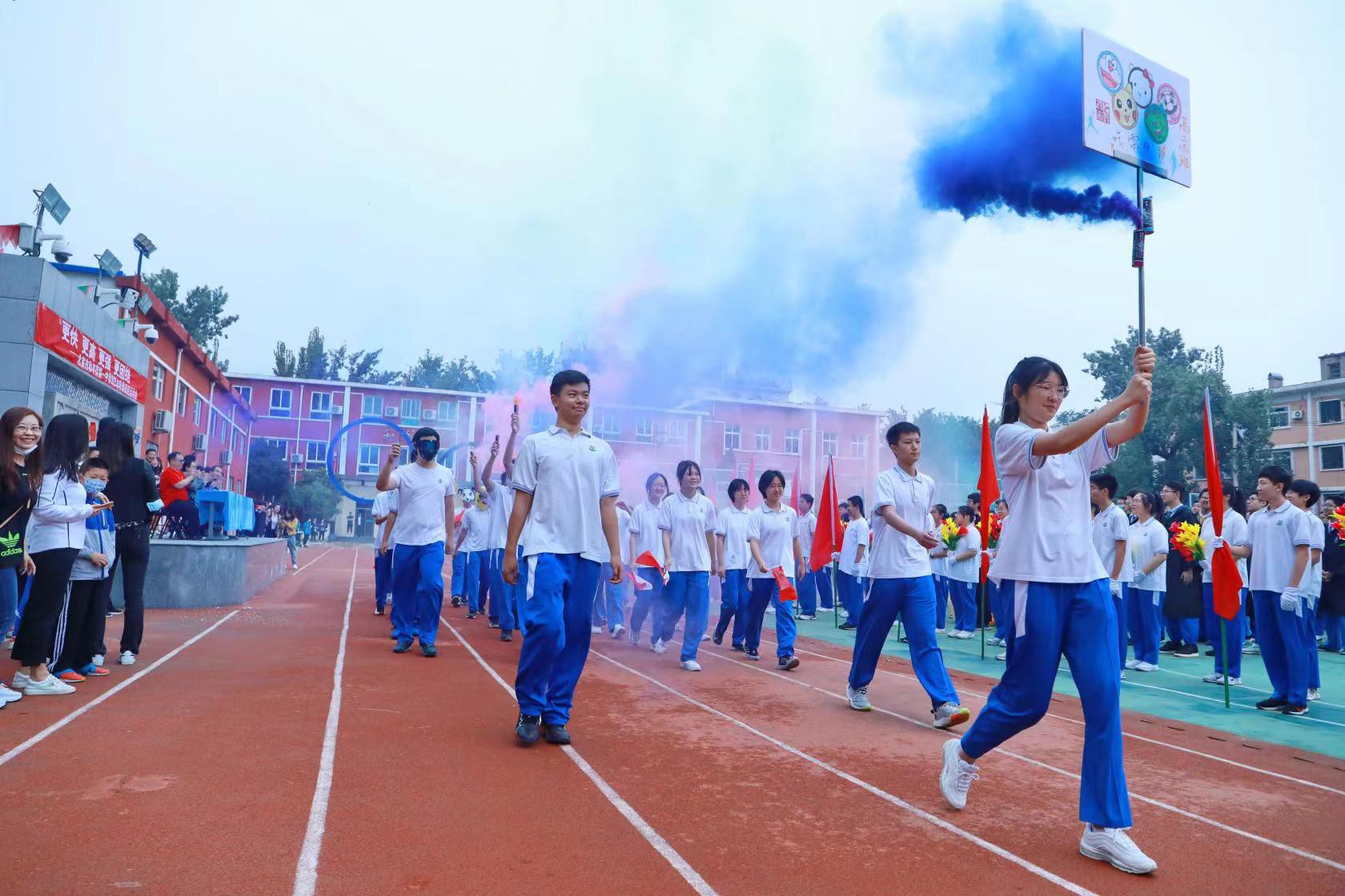 随后,和平街高中校区主管副校长曹成勇宣布“运动会开幕”,刹那间整个会场被点燃,瞬间一片欢腾。