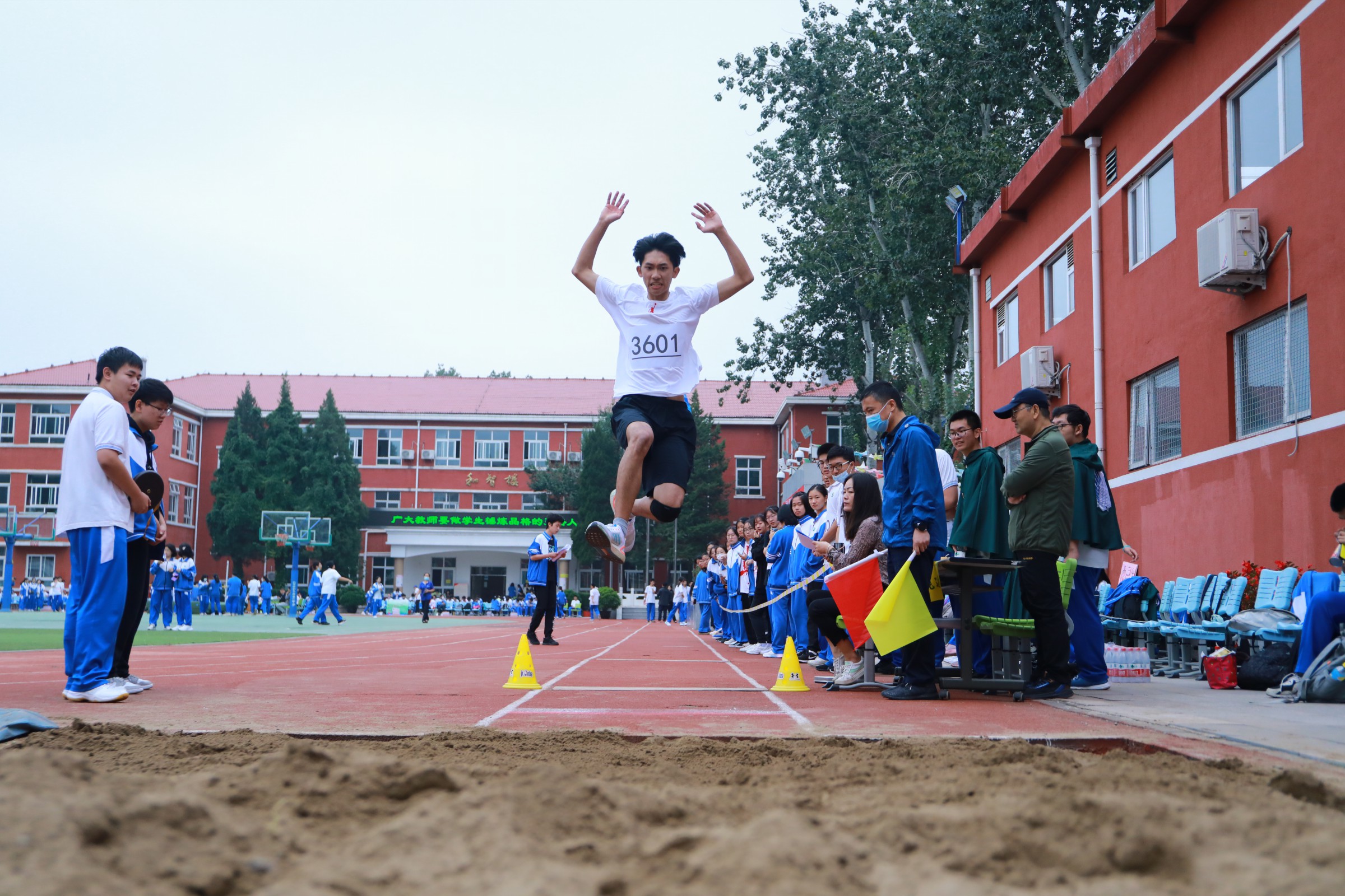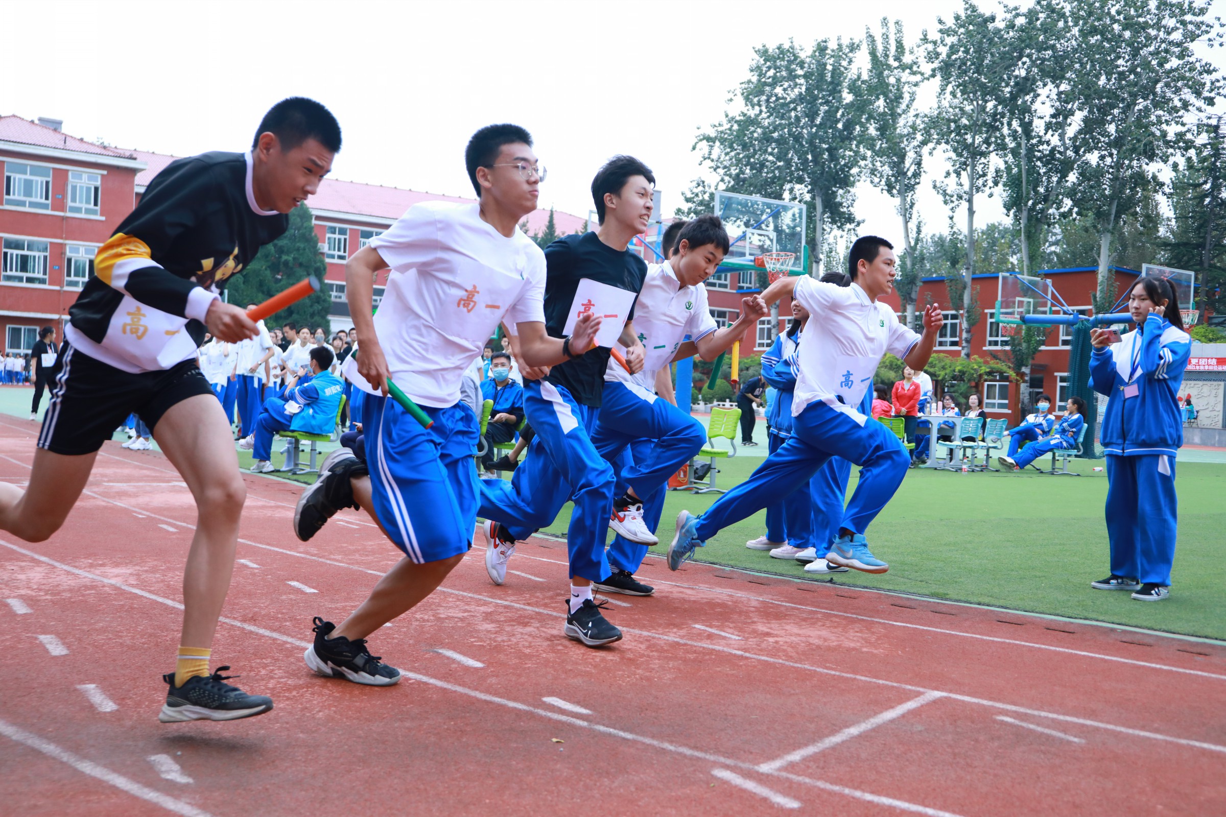 运动员们在赛场上挥洒汗水,奋勇争先,不断超越自我,充分展示个人风采,为班级争光。观众席上,和一学子文明观赛、积极参与,展示出自信阳光、奋发向上的精神风貌!