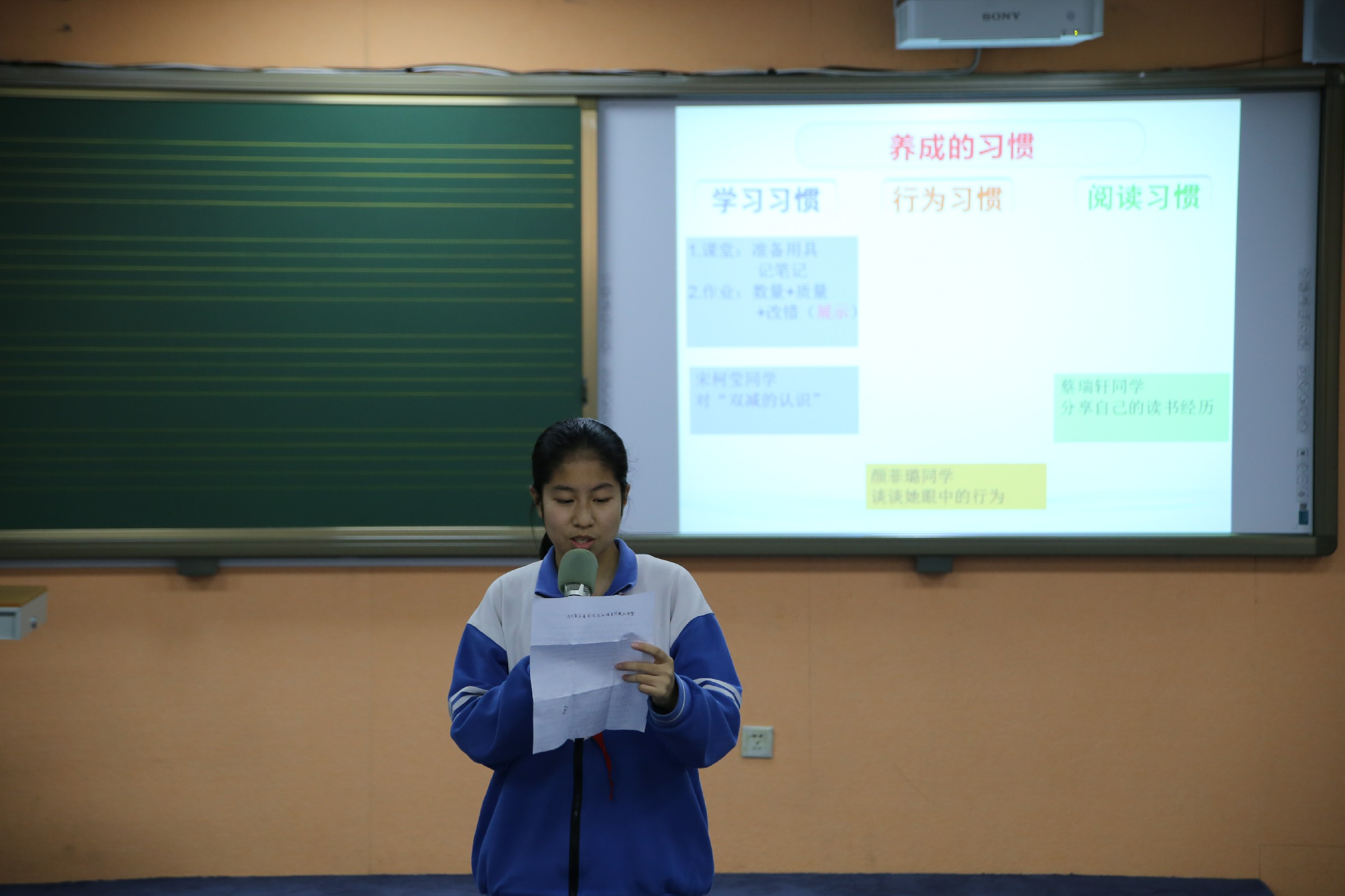 会上,年级组长王老师带领同学们回顾了开学一个月以来学习和行为表现,引导大家去思考,行为背后的原因以及初二年级学生应该具有的良好习惯。