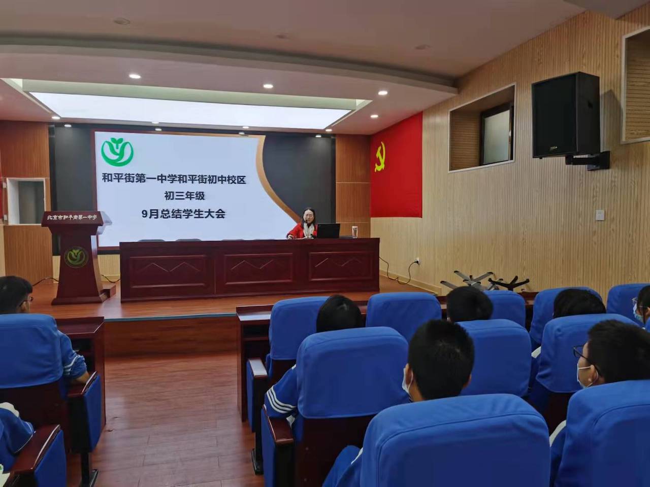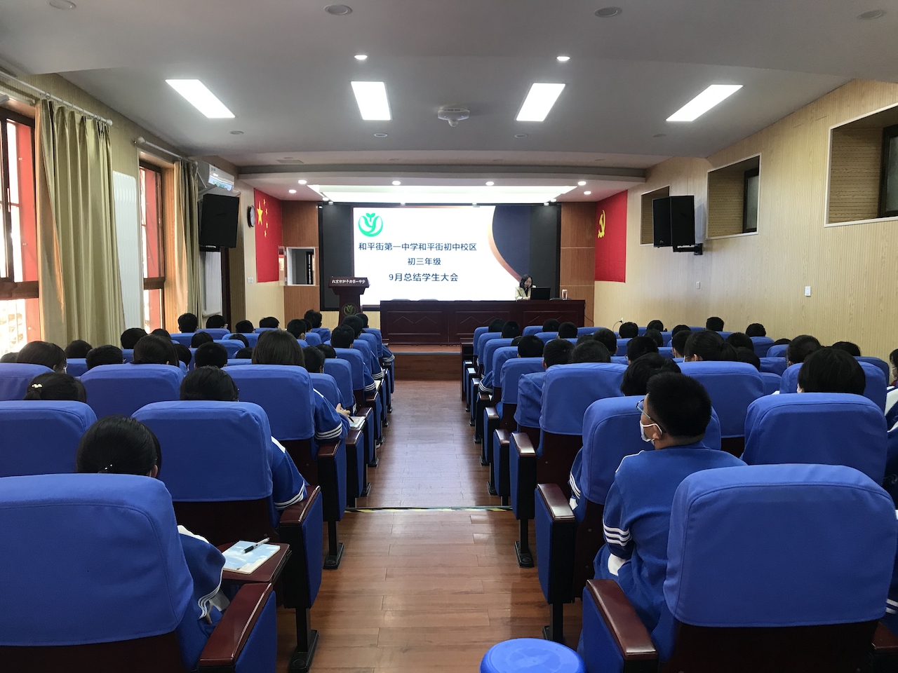 “宝剑锋从磨砺出,梅花香自苦寒来”。为进一步激发初三学子的学习积极性,营造积极进取的学习氛围,和平街第一中学和平街校区初中部在礼堂举行了“总结-反思-提升”初三年级9月总结学生大会,会议由年级组长夏曼青老师主持。