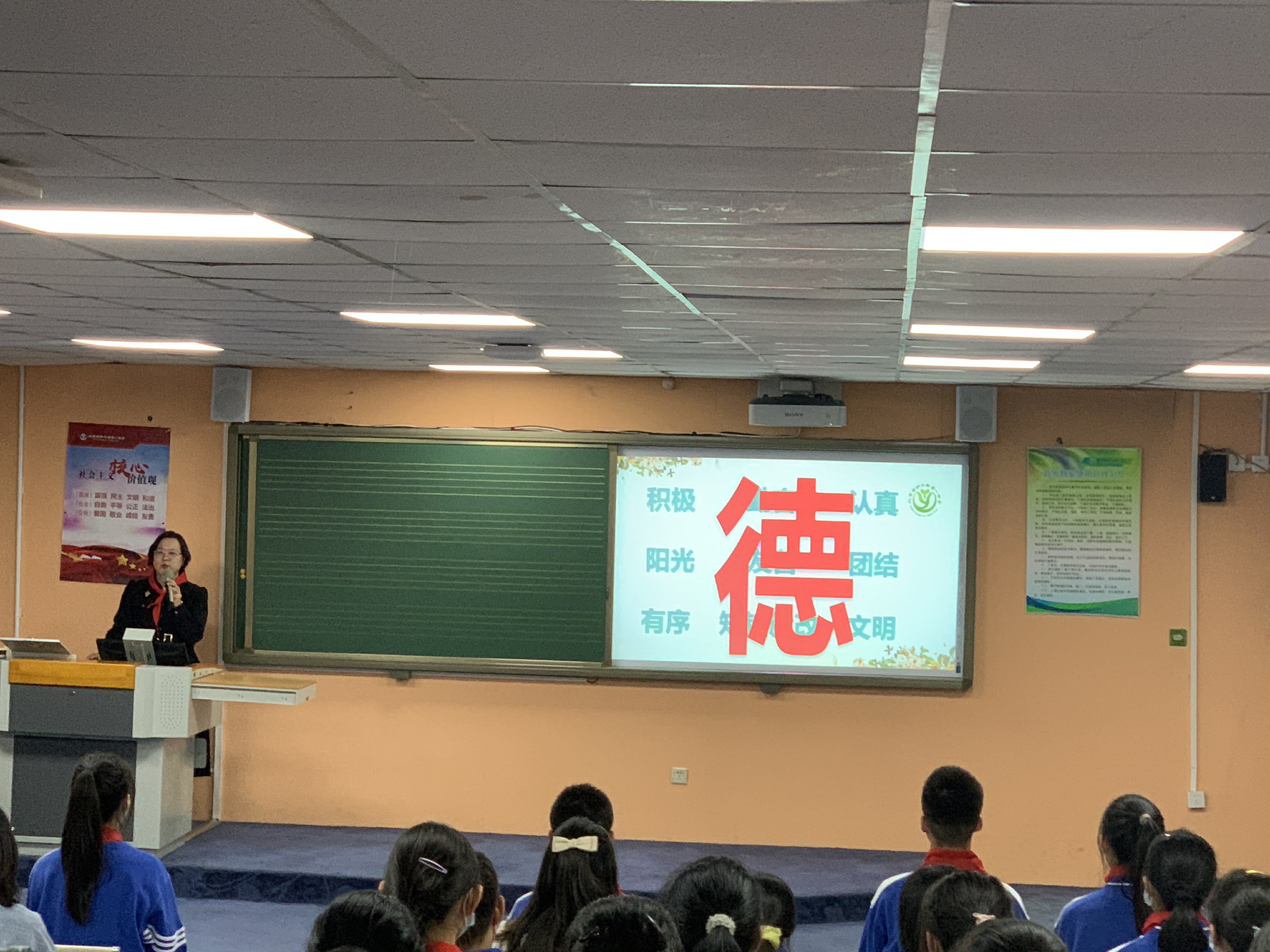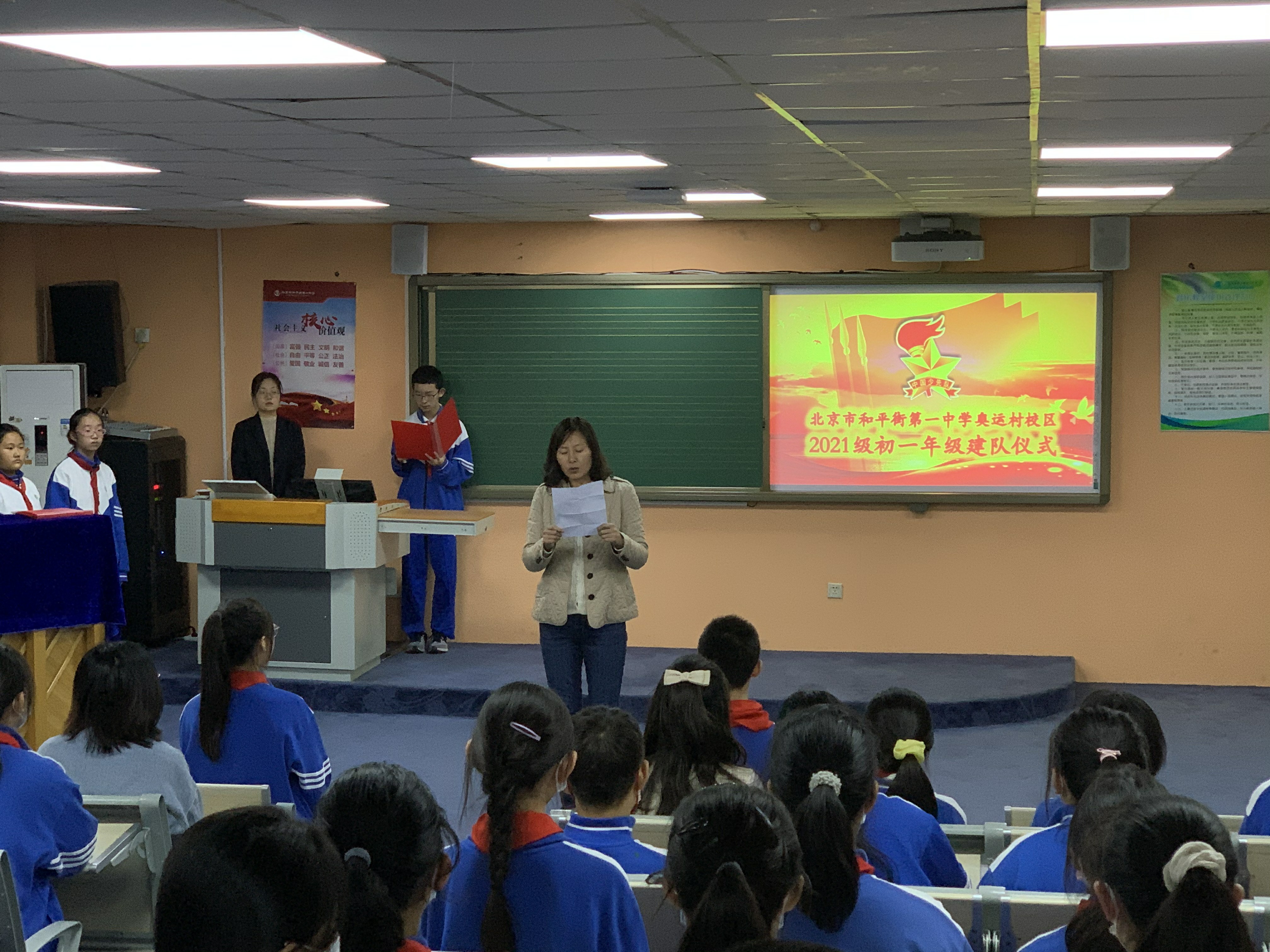 整个会场严肃认真,积极热情,相信初一年级全体学生在老师们的引领下,一定能勤奋学习,积极践行社会主义核心价值观,做一名优秀和一人!