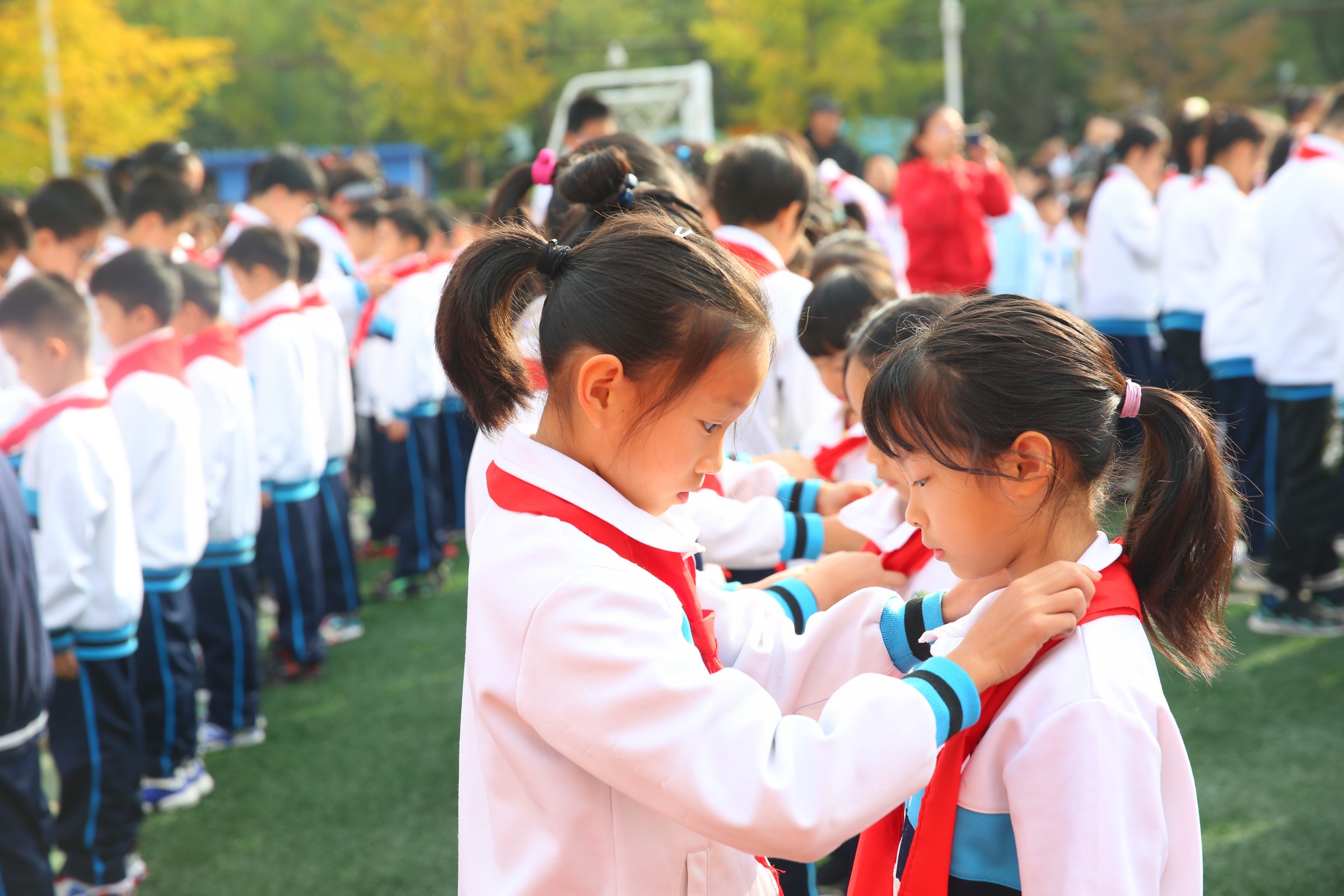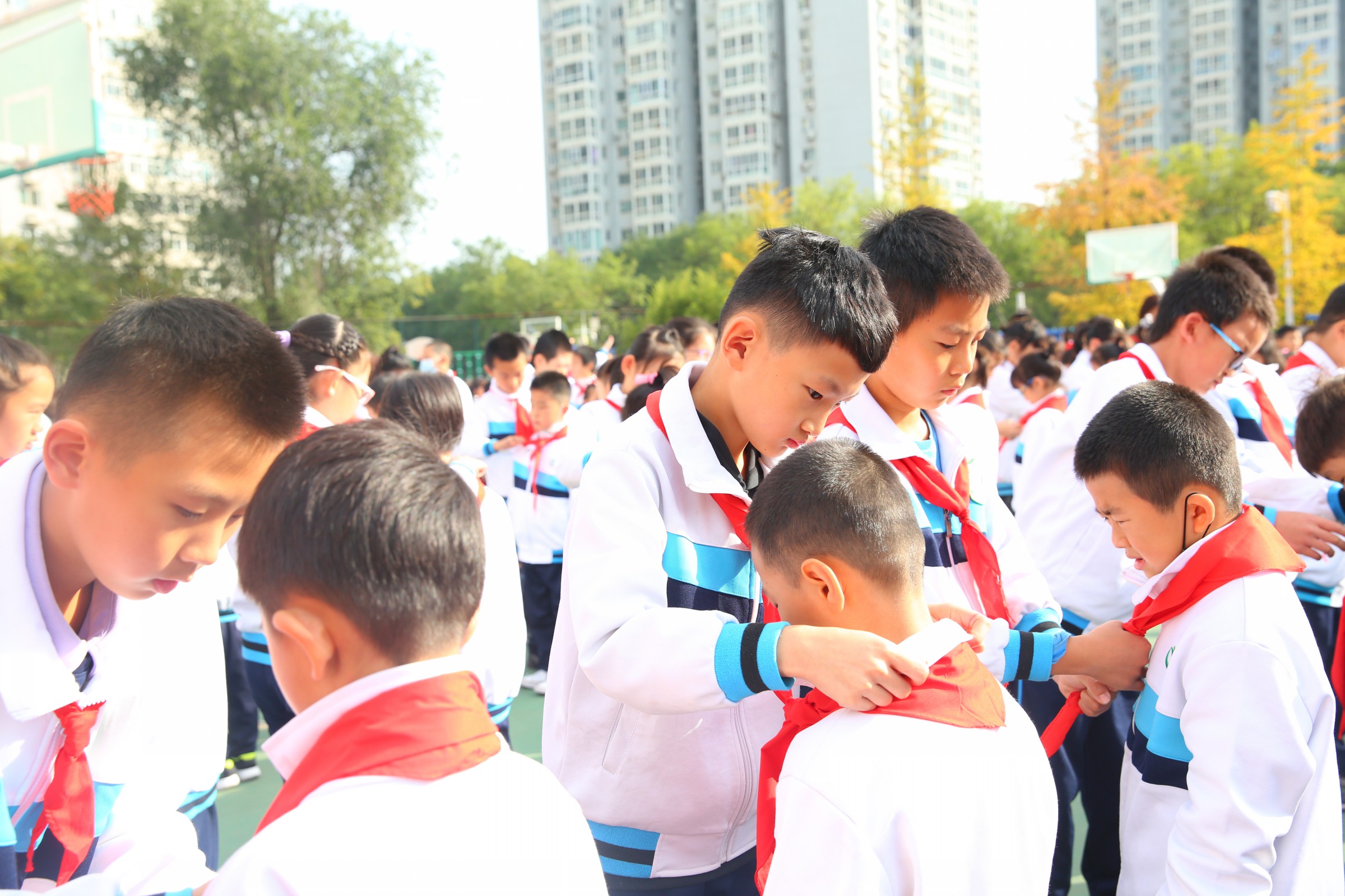大队辅导员老师正式宣布:“二年级274名同学,今天被批准加入中国少年先锋队,正式成为光荣的中国少年先锋队队员。”在热烈的掌声中老队员们为新队员戴上了鲜艳的红领巾,新老队员互敬队礼,从新队员笔直的身姿、坚毅的眼神中可以看出他们已经做好准备——做一名优秀的少先队员!