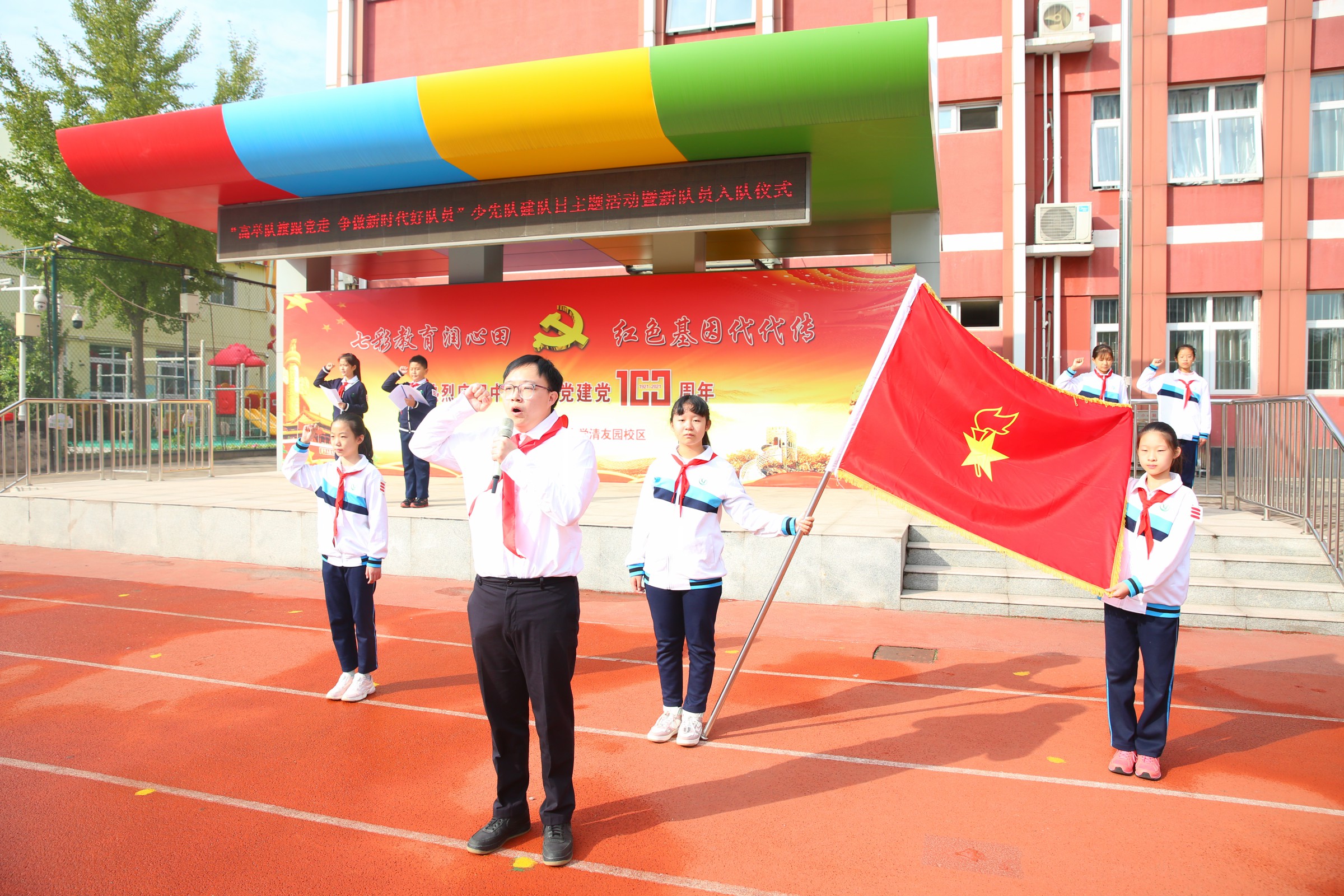 2021年10月13日,北京市和平街第一中学清友园校区以纪念建党100周年为契机,为培养学生的主人翁意识,培养新生的爱队意识,召开了“高举队旗跟党走 争做新时代好队员”建队日纪念活动暨新队员入队仪式活动。