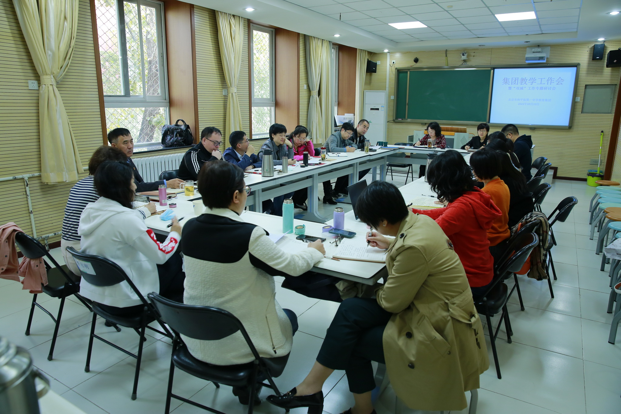 为进一步落实“全市基础教育校长(园长)大会”会议精神,深入有效推进学校“双减”工作落实落细,2021年10月13日,和平街一中召开了集团教学工作会暨“双减”工作专题研讨会。会议由陈秀珍校长和张静书记主持,各校区和各部门主管副校长和全体教学主任共20人参加了本次会议。