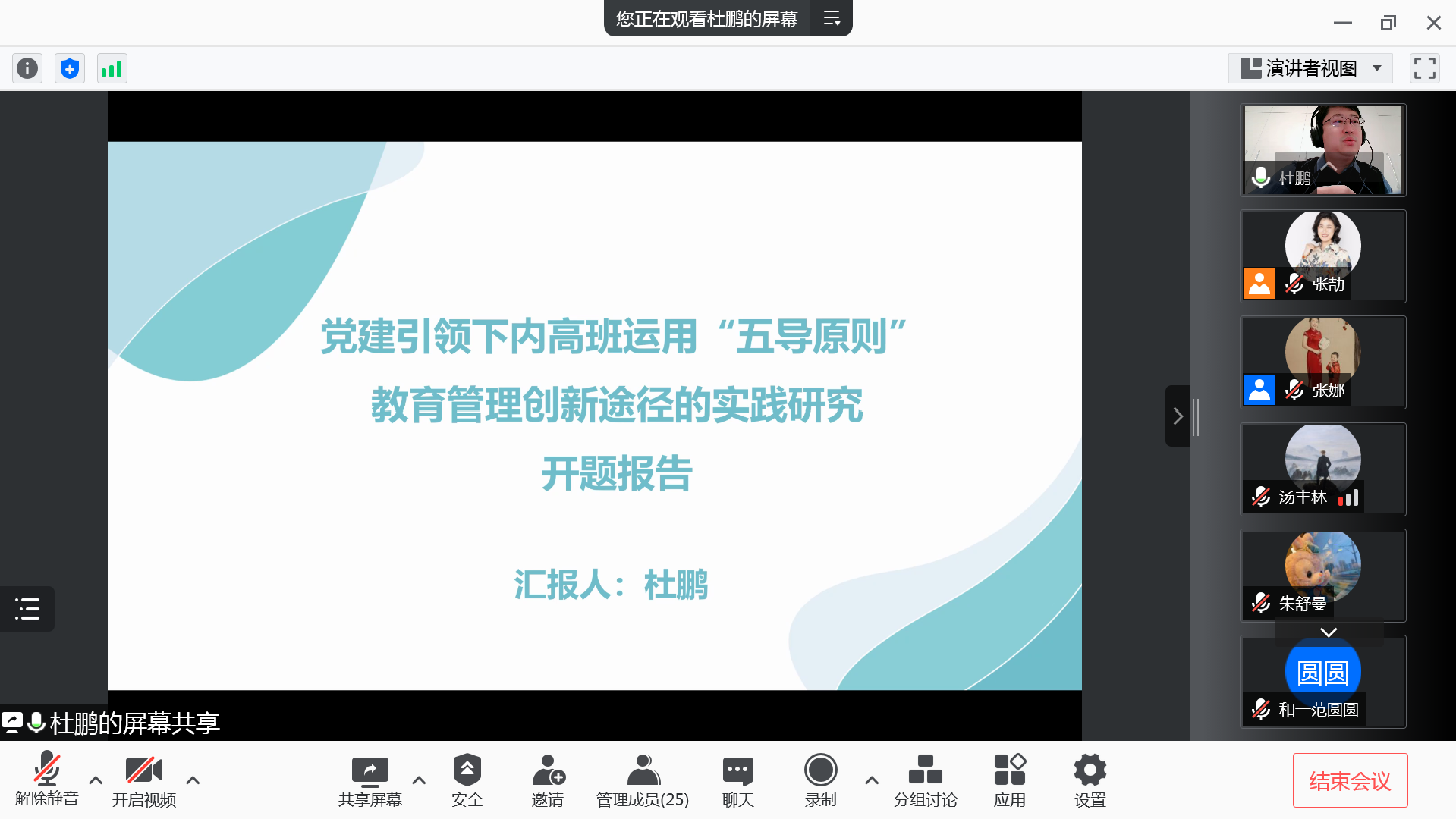 和平街一中非常重视教科研工作,党总支张静书记代表学校领导参加了本次开题。学校《“十四五”发展规划》中提出要:“营造科研兴师、科研兴校、科研兴教的氛围,以校本教研、教育科研促进教师的专业化成长,以教师的专业化成长促进学科的可持续发展,全面推进学校高质量提升、高水平发展。”2021年是“十四五”开局之年,在专家的指导下,在老师的努力下,和平街一中的教科研工作一定能更上层楼!