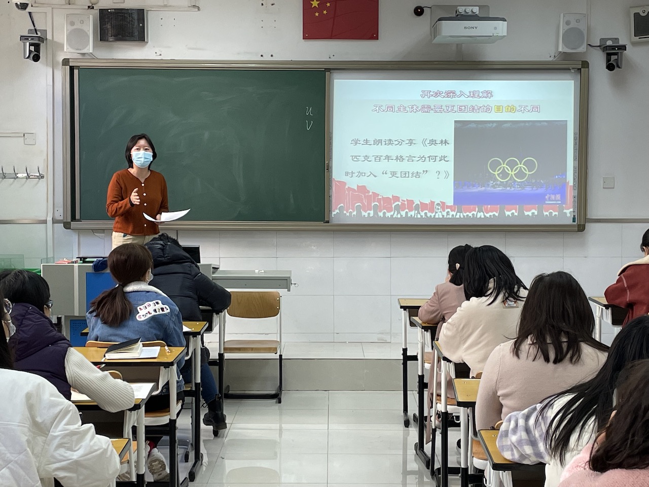 借着北京即将举办2022年冬奥会的契机,学校班会展示活动的主题定为“弘扬体育精神,展现青春风采”,校区按照我校德育工作要求的“培训·展示·总结”三个环节有序有效地开展工作。十九名中青年班主任认真分析本班情况,设计符合教育学生的主题,有以团结为主线的“together”;有以拼搏逐梦为主题的“追寻下一个0.1秒的进步”;有以规则、自律为主题的“不以规则,不成方圆”、“自律----让花儿绽放”等等,老师们各显神通,设计各种有趣的活动,在年级组和校区内互相讨论,形成了极好的学习借鉴氛围,通过反复修正自己的设计,最终优质呈现教育内容。班会让学生们深入参与,领悟道理,达到了我们预期的教育目的,也让教师在提升专业性的道路上又迈出了一大步。参加听课的校区领导和教师人数更是再创新高,共计202人次。