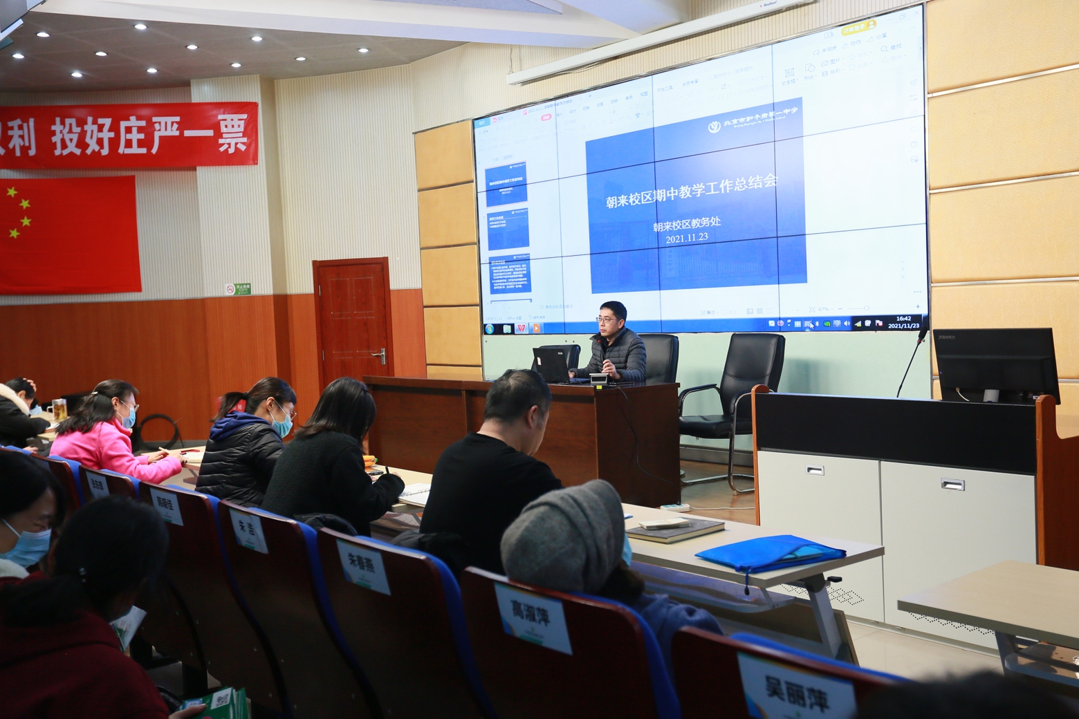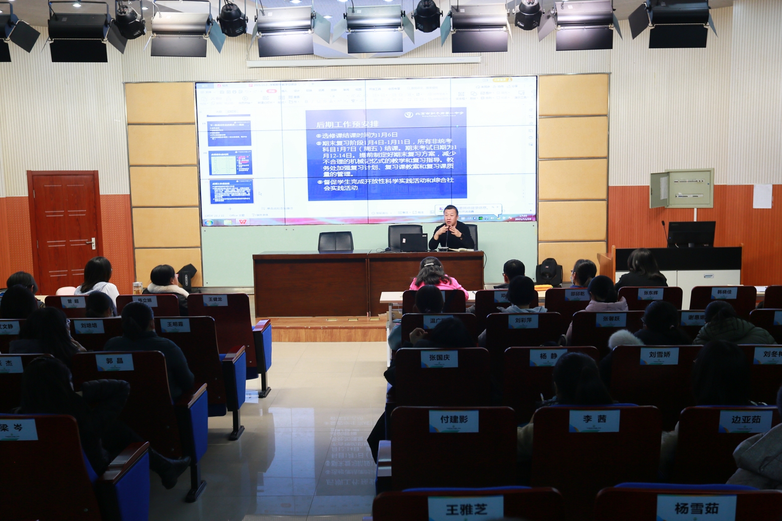 为了提升教学质量,推进“双减”政策的有效落实,促进校区教育教学工作的整体发展,11月23日下午,和平街一中朝来校区召开了期中工作总结会。