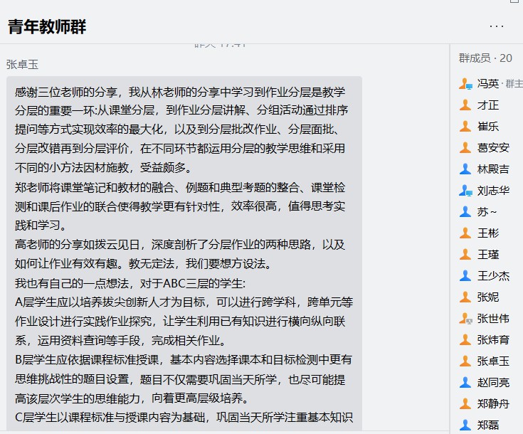 林殿吉老师从分层课堂、分层教学、分层改错、分层评价四个方面分享了对“双减背景下的分层作业”的体会,根据他的课堂和作业表现,对不同的学生,林老师给予学生一个合理的评价和肯定。