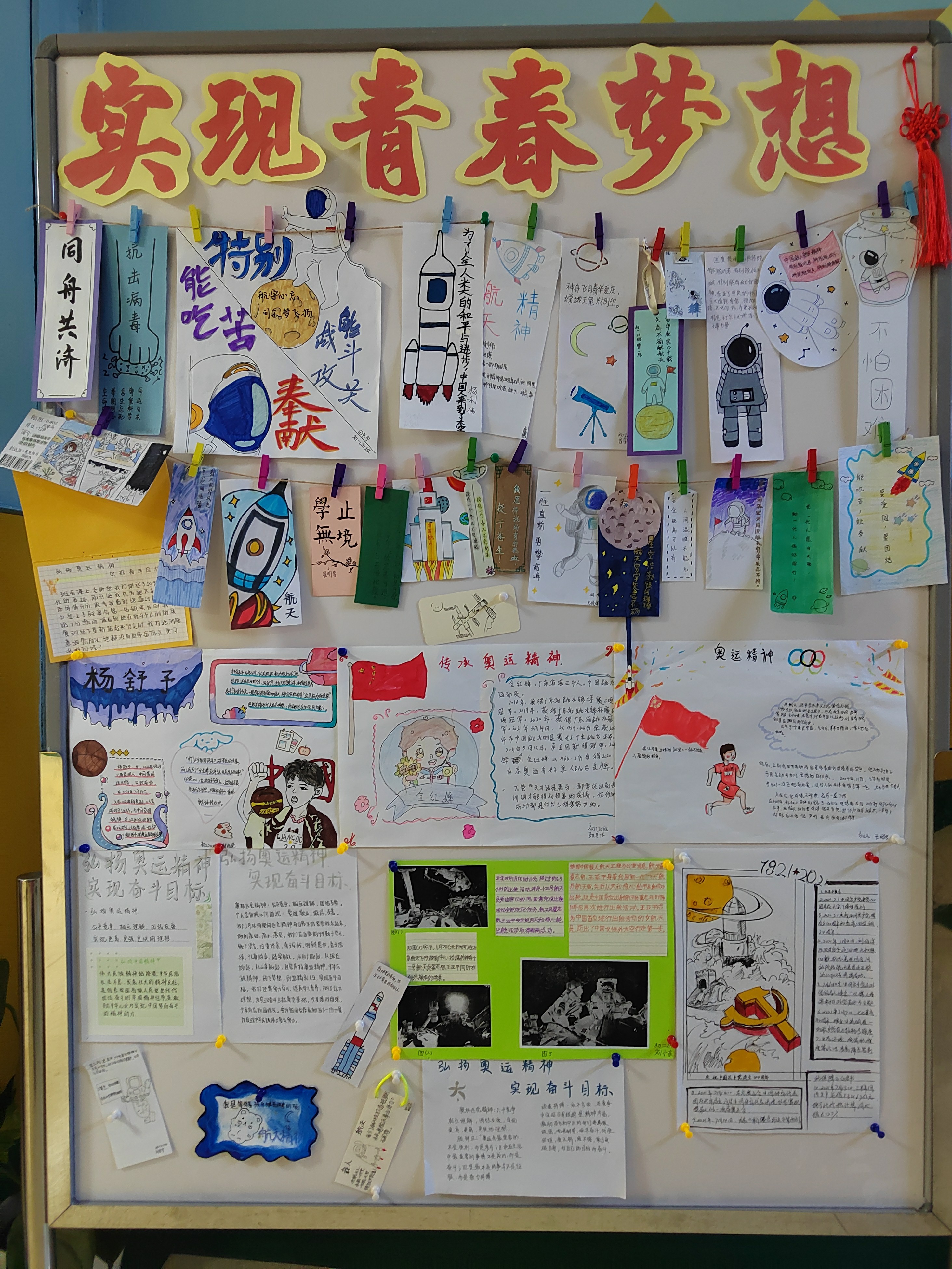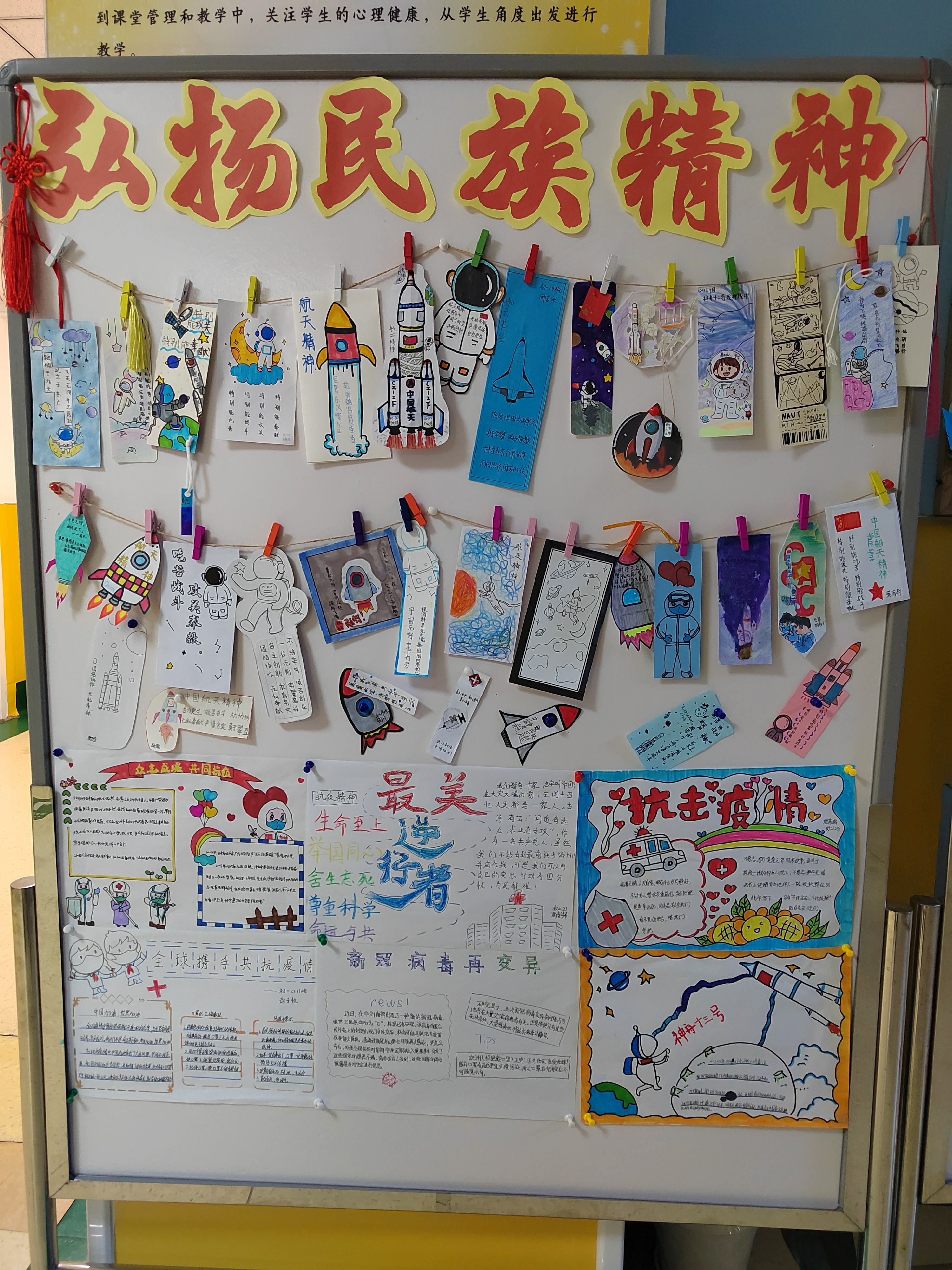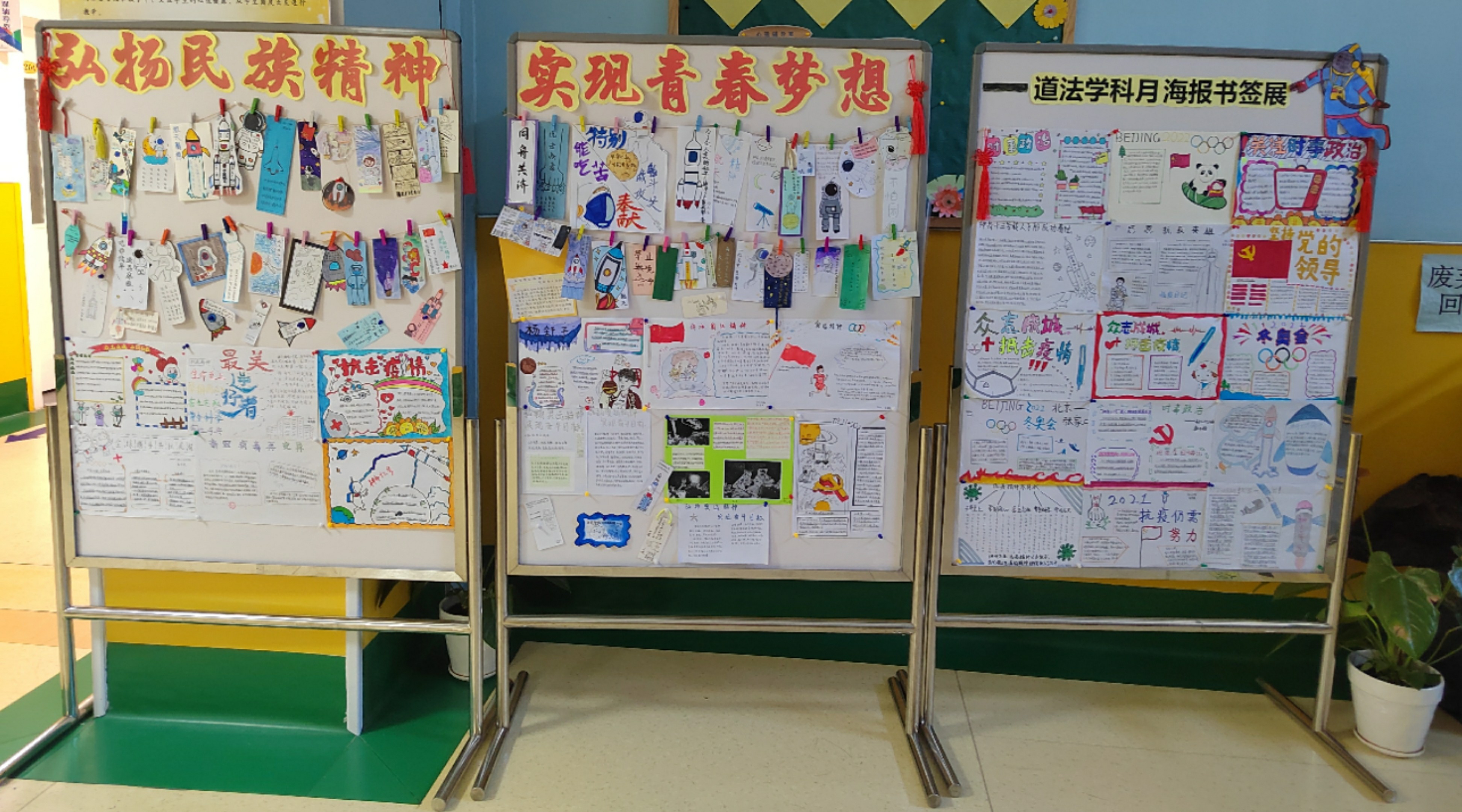 为弘扬民族精神,充盈学生精神世界,培养学生爱国情怀。和平街一中奥运村校区道法学科组开展了题为“弘扬民族精神,实现青春梦想”学科月活动。学生们积极参与,通过制作精美的海报和书签学习中华民族勤劳、勇敢、自强的传统精神,从而树立“明大德、成大才、担大任”的崇高理想。