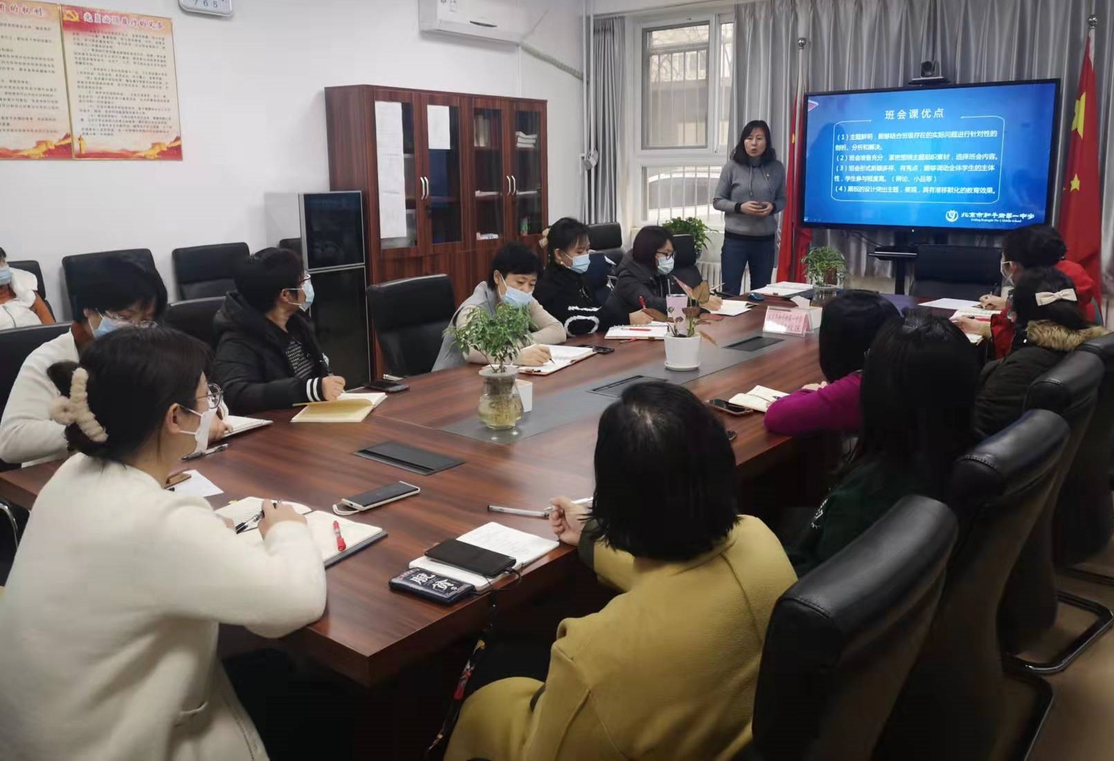 12月9日班主任例会时间,学生发展处王瑾主任从班会课定位、主题班会总结反思、班会课展望三个方面进行了小结。她肯定了本次主题班会课的优点:主题鲜明,能够结合班级存在的实际问题进行针对性的剖析、分析和解决。准备充分,紧密围绕主题组织素材,选择班会内容。形式新颖多样、有亮点,能够调动全体学生的主体性,学生参与程度高。背景板书的设计突出主题,美观大方。还提出了对班会课的展望,希望班主任上好常规班会课,抓住平时的教育契机召开微型班会,精心设计每个环节多呈现精品班会,以立德树人为出发点构建班会课教育主题的连贯性,做好班会课延伸的教育活动,努力形成系列班会,充分发挥班会课的育人作用。会上,董佳琦、王珊珊和邢常静三位班主任分别从班会课环节设计、班会课效果呈现、时事主题班会设计与大家进行分享。周校也参加了此次会议,给予全体班主任肯定,期望班主任更加重视常规班会,善于通过教育契机引导学生,锻炼自己发现问题解决问题的能力,用好身边资源,着眼学生未来发展,努力实现教育目标。