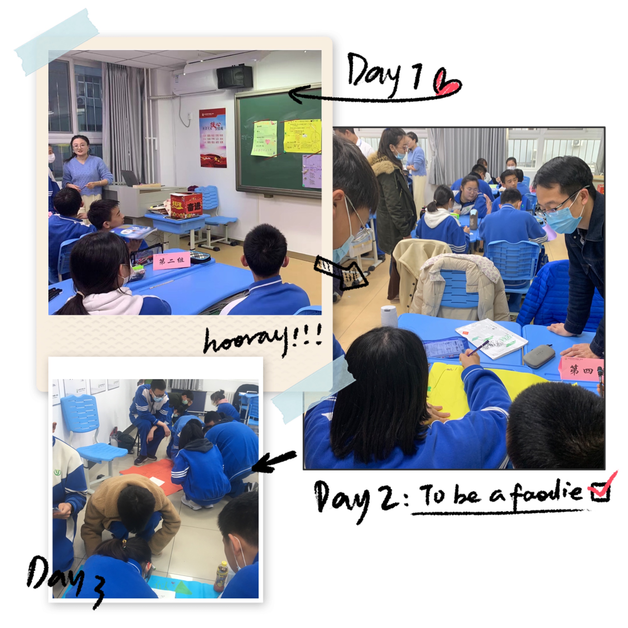 12月10日举行第二场“现场制作思维导图”,流程是抓阄(决定各小组制作导图的章节)——制作(小组内同学分工合作完成导图)——交流(各小组留一名同学给来自其他小组的同学讲解本组制作的导图,其余成员去别的小组参观学习或提修改建议)——展示(各小组作品张贴黑板上,接受其他小组同学提问,至少回答对两个本章知识内容)——总结(数学科代表谈感受,并随机点另外同学谈感受)——颁奖(为初赛获个人奖和两场积分获集体奖的小组颁奖)——数学老师做活动总结。