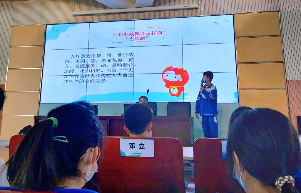 12月13日文体部部长国琰青利用国旗下讲话时间进行活动宣传。当天中午,文体部联合宣传部通过校园广播向同学们介绍了冬奥的基本知识以及和一学子与冬奥的故事。我校冰球队成员申佳妮分享了自己在冰球训练中体会到的不怕困难、坚持不懈、超越自我的奥运精神。广播中的部分作品在体育组张伟伟老师的指导下,参加北京市“你说我听——一百天奥运小故事”征集活动获得一等奖。