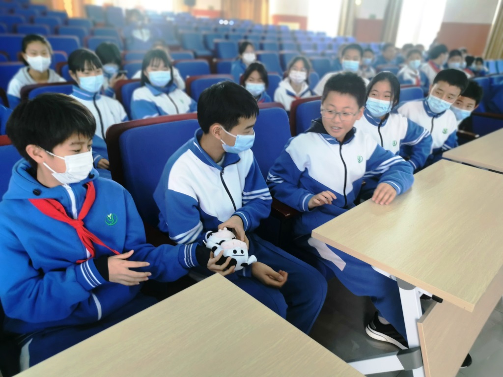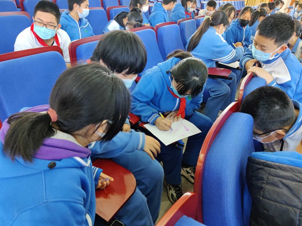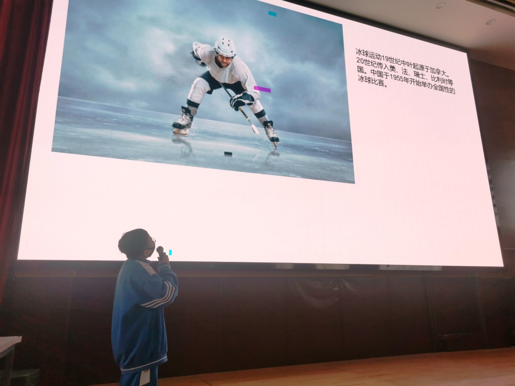 随后,文体部分别于12月14日、15日和16日中午午休前举办冬奥知识小讲堂和趣味游戏活动,游戏分别为击鼓传花、你比划我猜和接龙画画。第一天的冬奥知识小讲堂为同学们介绍北京冬奥会的基本情况、吉祥物和中国冬奥明星的故事。随后的击鼓传花游戏伴随着冬奥歌曲《冰在舞雪在烧》欢乐的进行,认真听完小讲堂内容的同学对游戏中设置的问题对答如流。第二天和第三天的冬奥知识小讲堂为同学们具体介绍冬奥会的雪上和冰上比赛项目。你比划我猜和接龙画画游戏均围绕这些项目展开。在你比划我猜游戏中,同学们通过丰富的肢体语言展现出不同比赛项目的特点;在接龙画画游戏中,同学们通过手中的画笔描绘出精彩的冰上和雪上项目。
