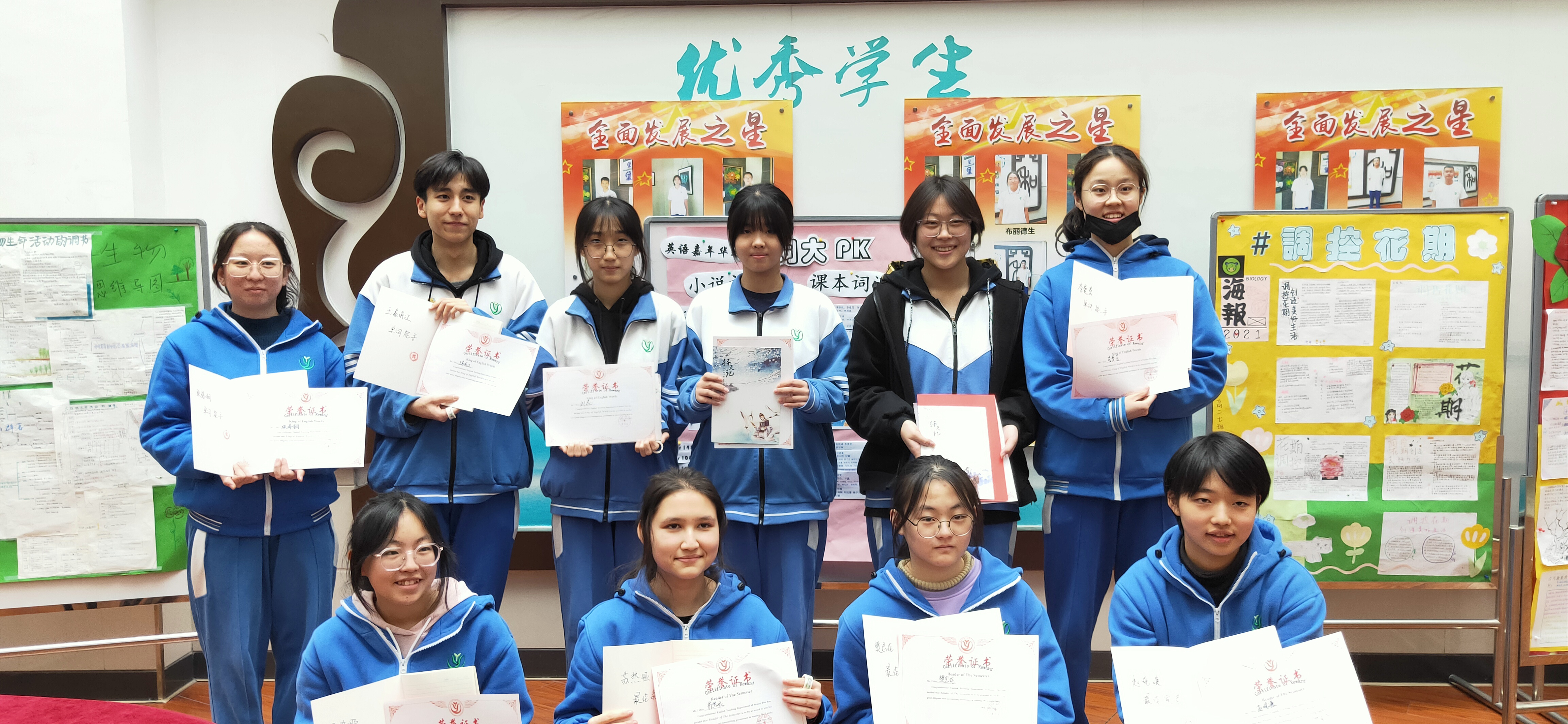 经过一个学期的角逐,13名优胜者脱颖而出,于12月23日在莲葩园校区三层阳光厅对获奖者进行表彰,为他们颁发“最佳读者”和“单词能手”的荣誉证书,以庆祝本学期的英语原版小说阅读活动的圆满收官。