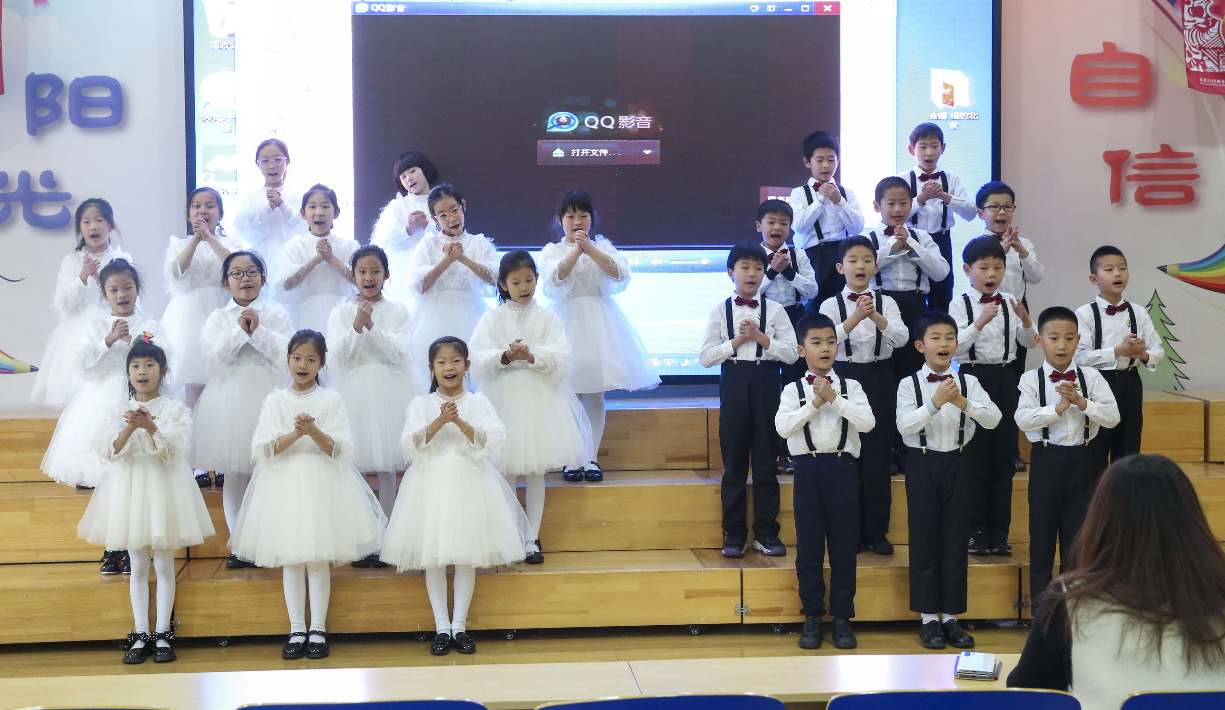 俗话说“台上一分钟,台下十年功”。孩子们在音乐老师的指导下,经过半个多月的精心准备,以饱满的热情和充满自信的舞台表现为大家呈现精彩的表演。