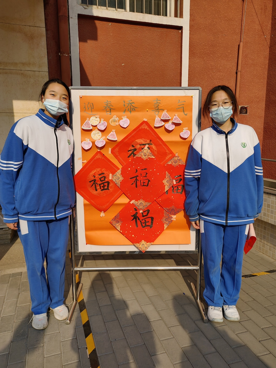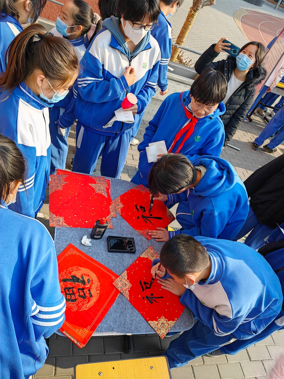 天地渐白,唯情渐暖,如何在这“小寒大寒,冷成冰团”的日子里增添暖暖的情谊呢?同学们通过一个创意团体活动来体现之间的默契。期末在即,为了给同学们加油打气,6班同学又特意设计了“踢走不顺意”和“气球提佳绩”两个活动。在冬日暖阳里,轻轻松松地踢踢毽子——顺便把“不顺意”的情绪也都踢光光;在素寒料峭中,用吹起的粉红色小气球提起纸杯——提起饱含“佳绩”祝福的满满心意。旧岁已近暮,新岁将登场,“迎春添喜气”环节丰富了同学们的书写体验。形态各异、热情满满的祝福与“福气”为冬日时光增添了灵动活泼之意,也为即将来临的新年增添了浓浓的喜庆氛围。