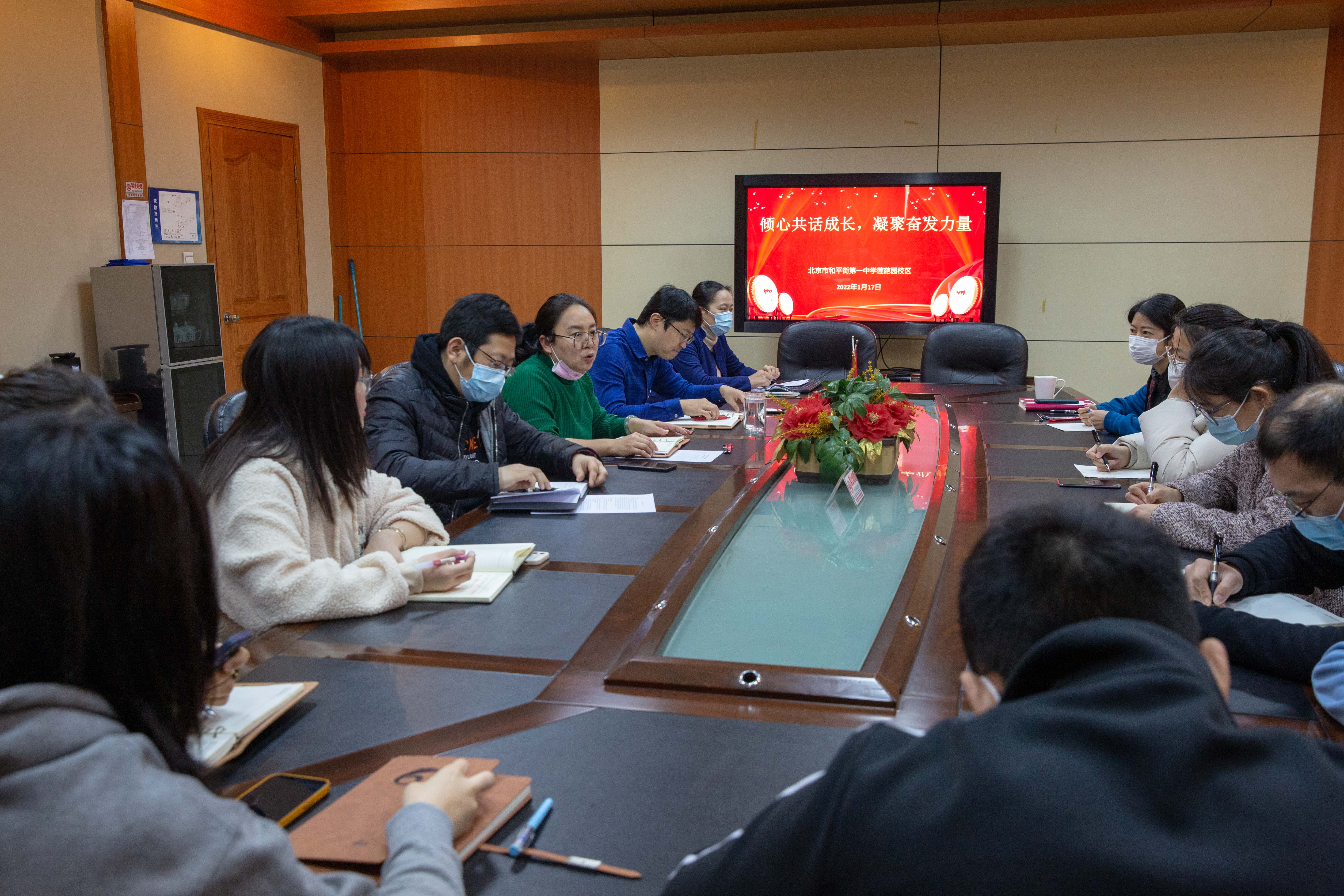 2022年1月17日上午,北京市和平街第一中学莲葩园校区在二层会议室召开了35岁以下青年教师发展座谈会。校级领导杜鹏副校长、教务处刘堃主任,张颉主任、德育处白林主任、办公室梁辉主任和全体青年教师参加了此次会议。