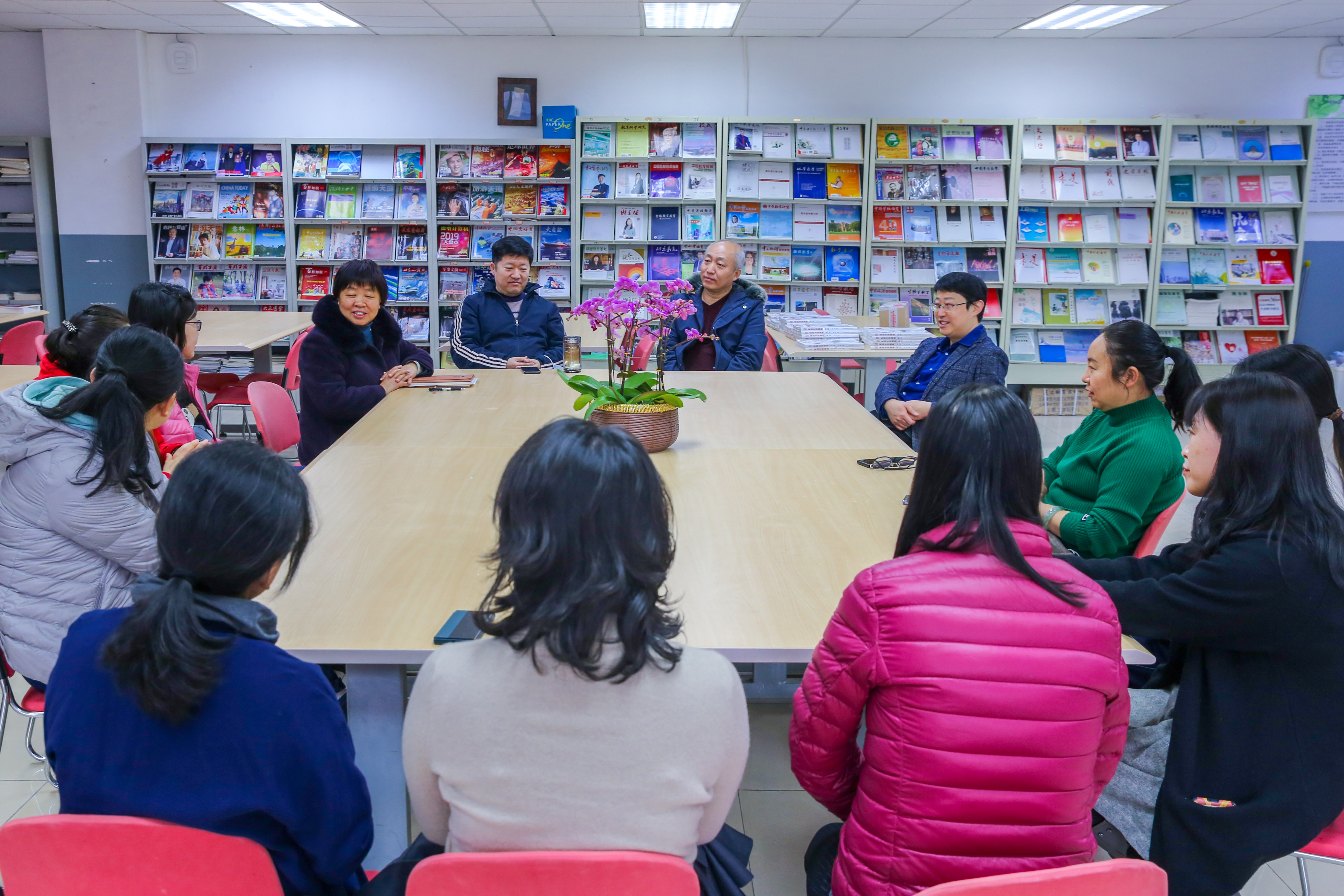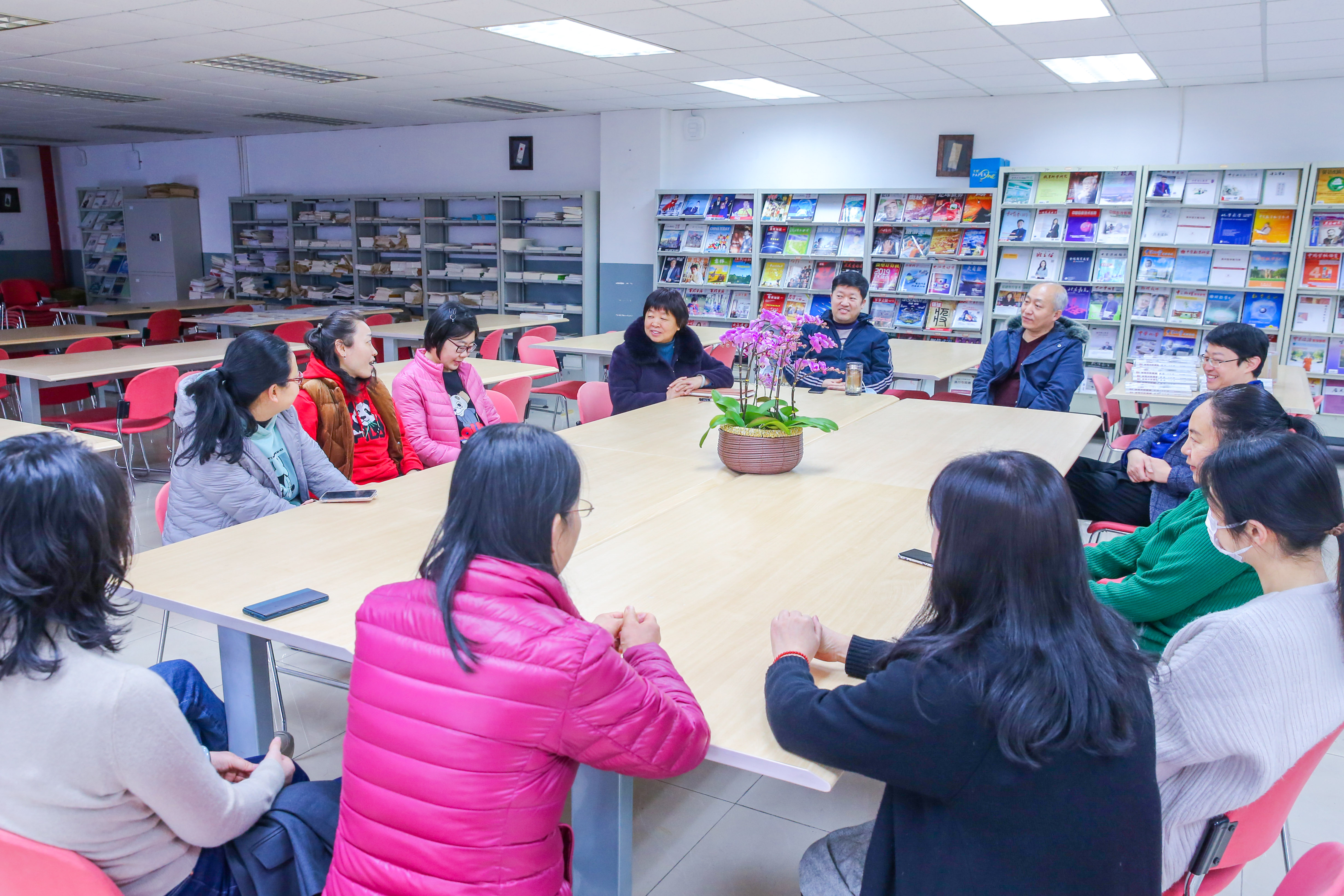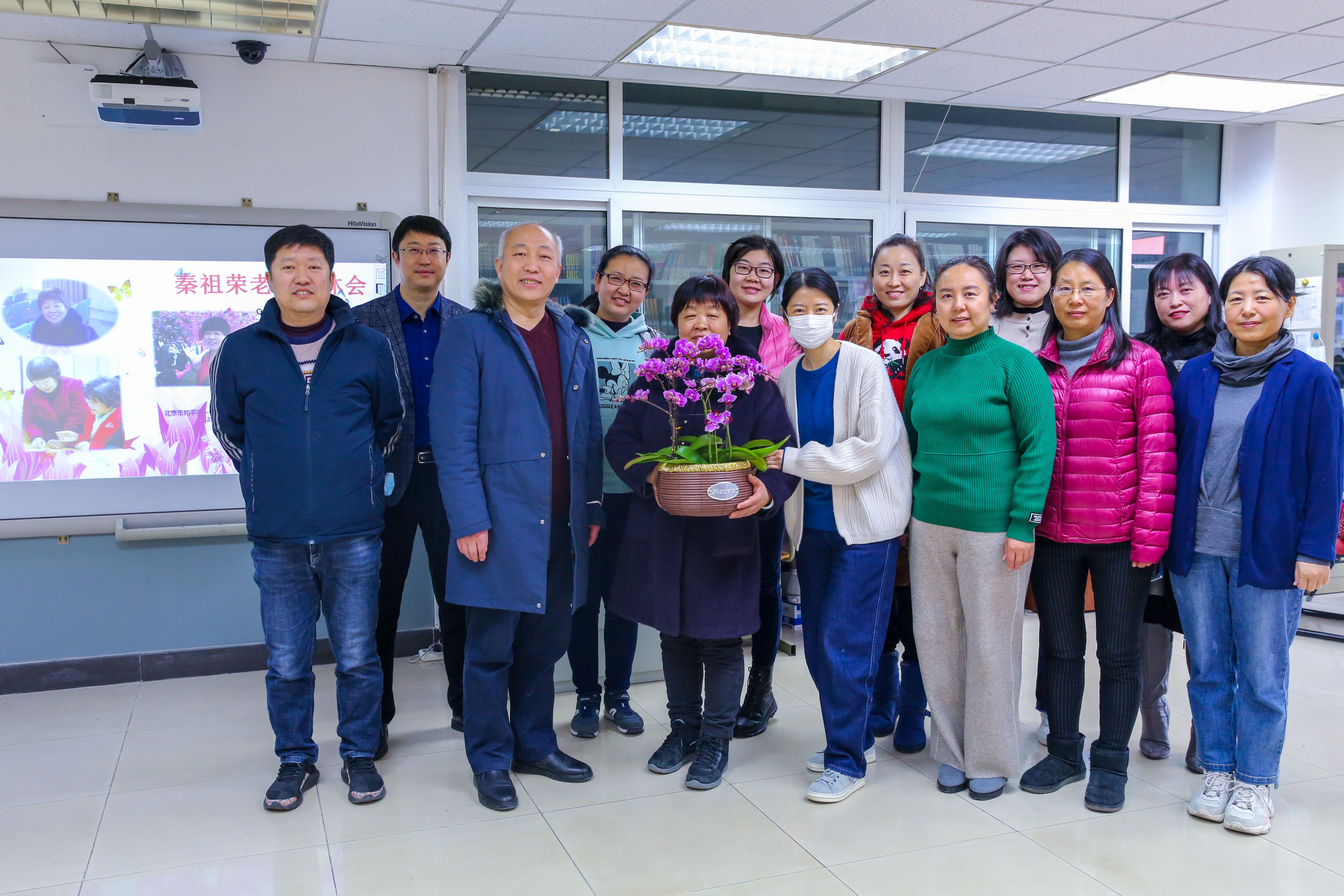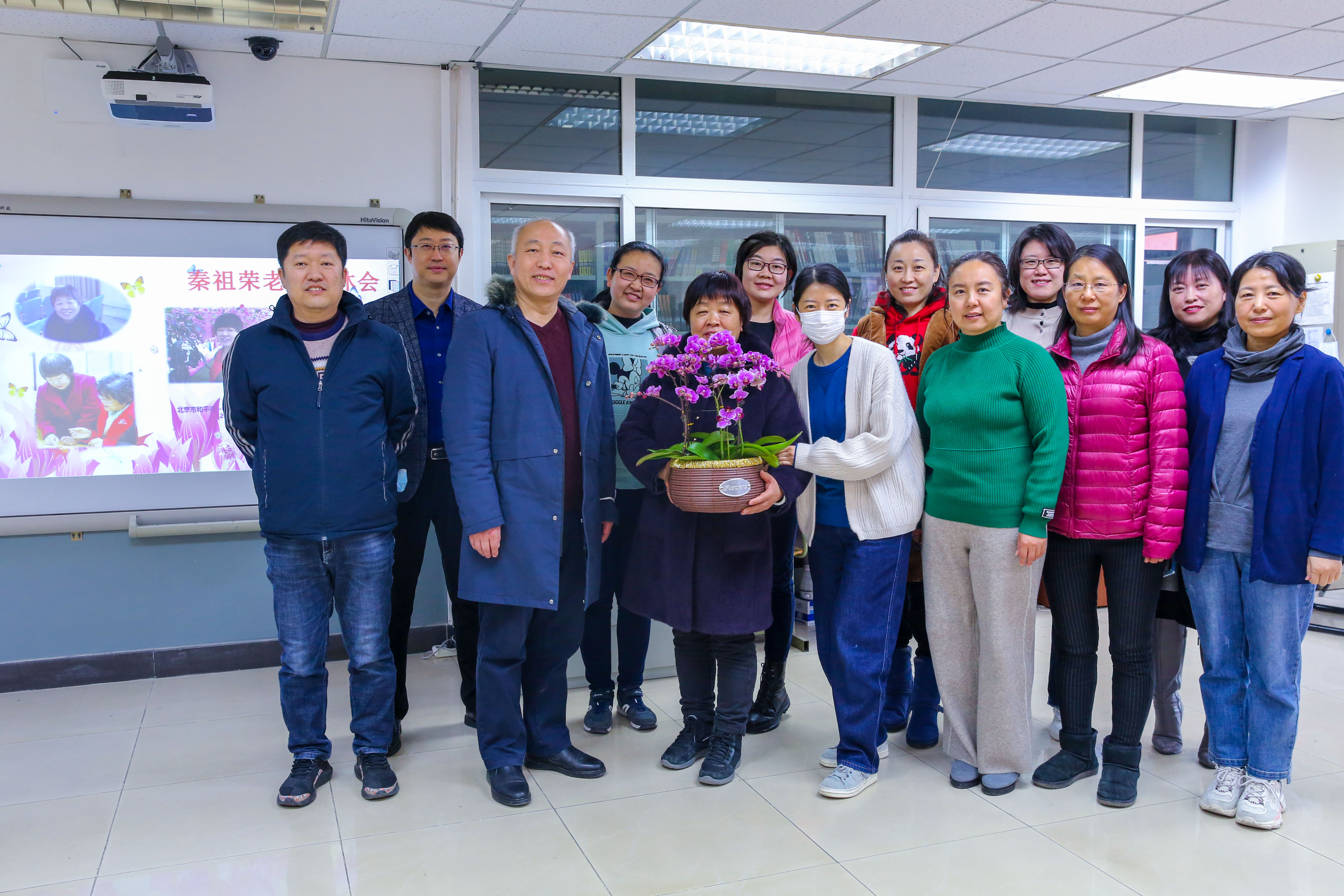2022年1月18日上午,和平街一中莲葩园校区阅览室内笑语盈盈,温暖如春,退休教师欢送会正在举行。校区主管校长杜鹏、中层干部和全体教务处职员齐聚一堂,热烈欢送秦祖荣老师光荣退休。