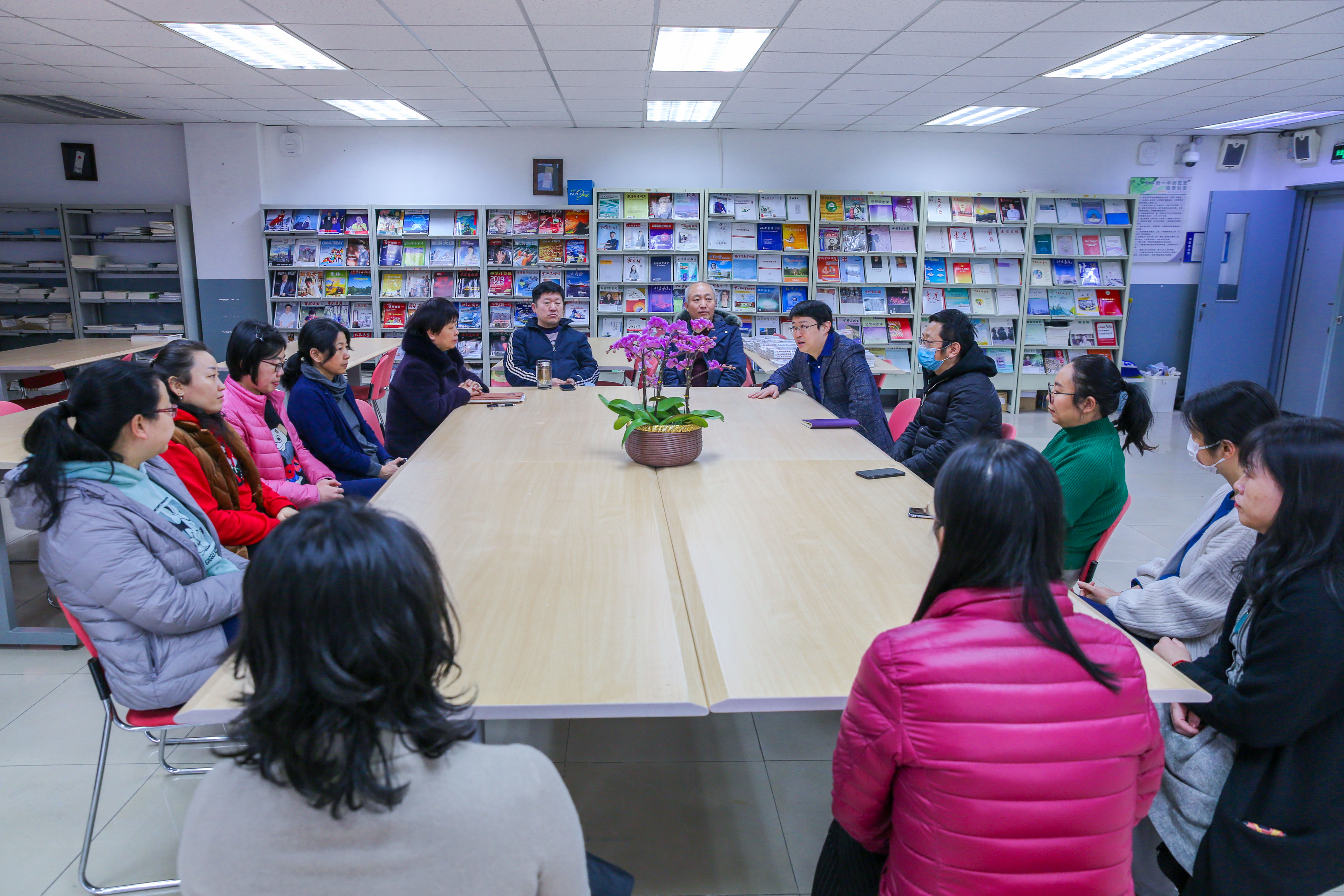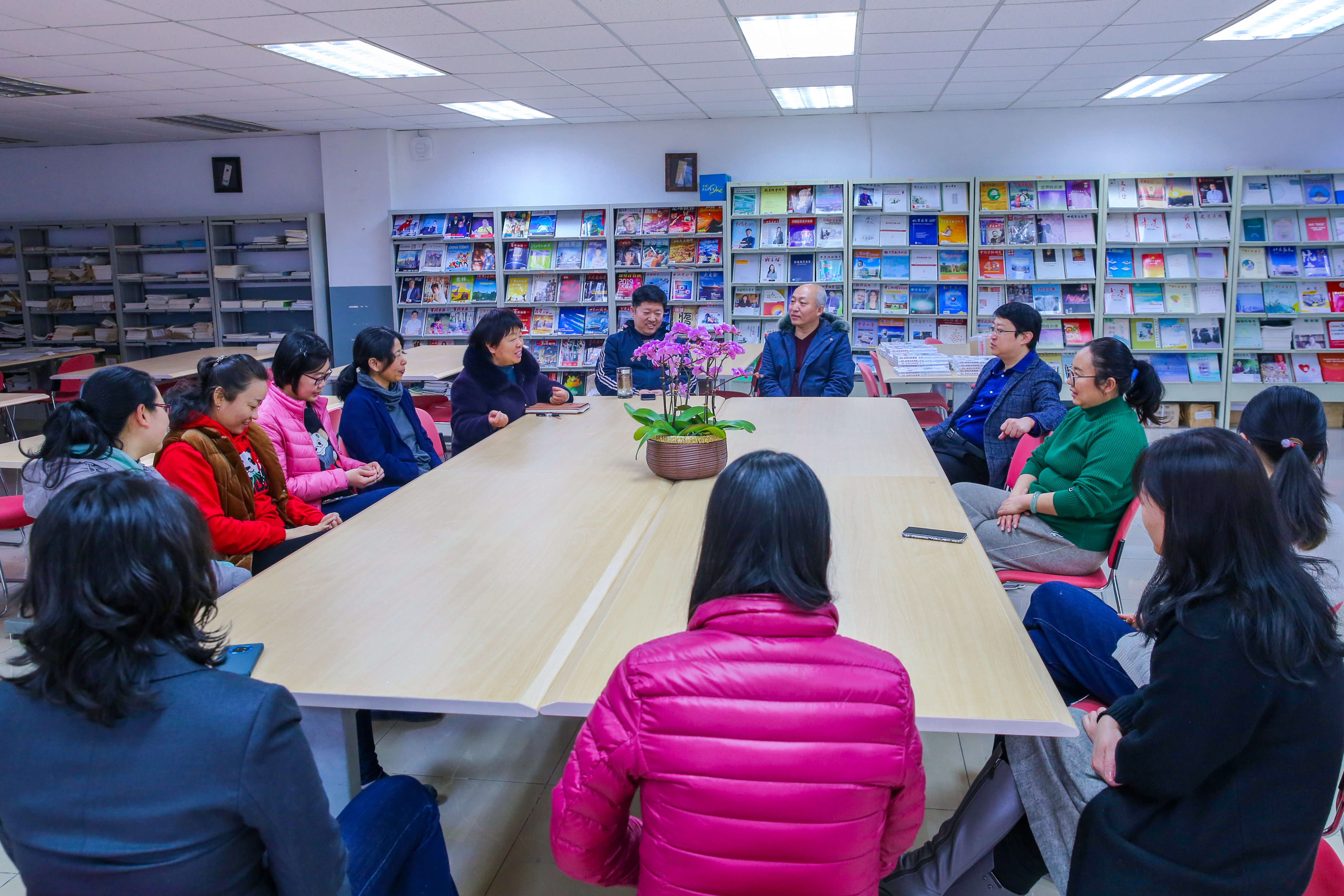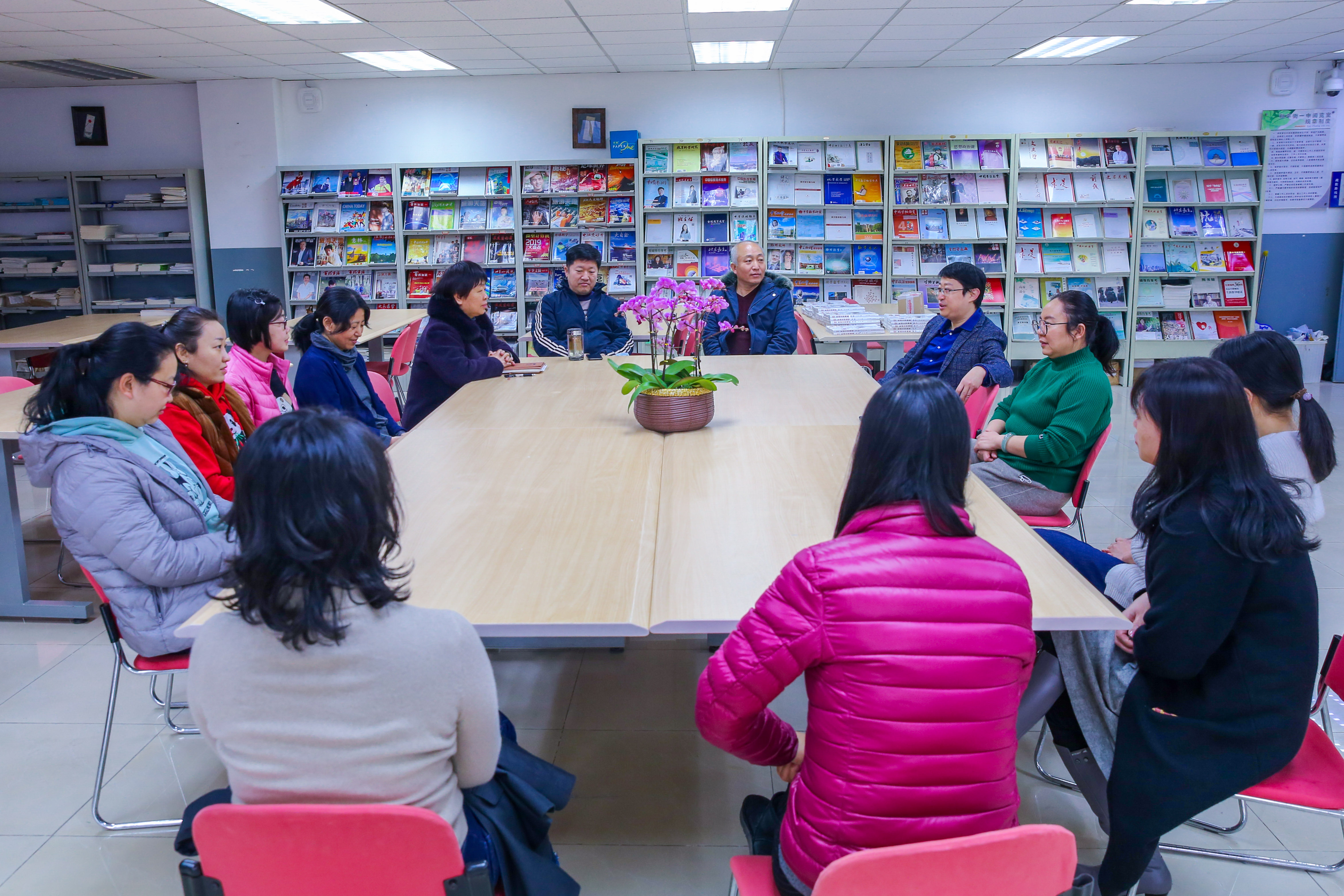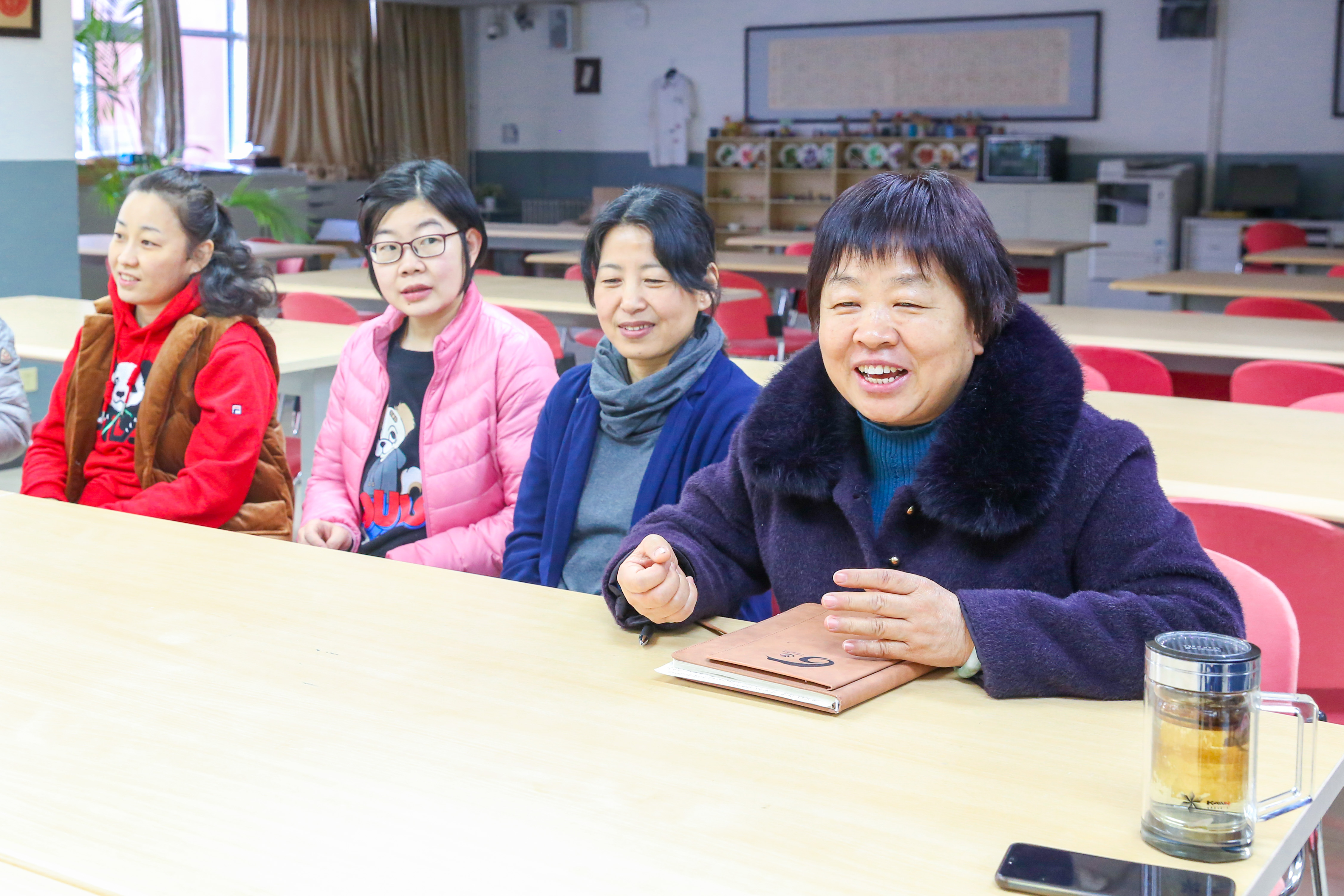 2022年1月18日上午,和平街一中莲葩园校区阅览室内笑语盈盈,温暖如春,退休教师欢送会正在举行。校区主管校长杜鹏、中层干部和全体教务处职员齐聚一堂,热烈欢送秦祖荣老师光荣退休。