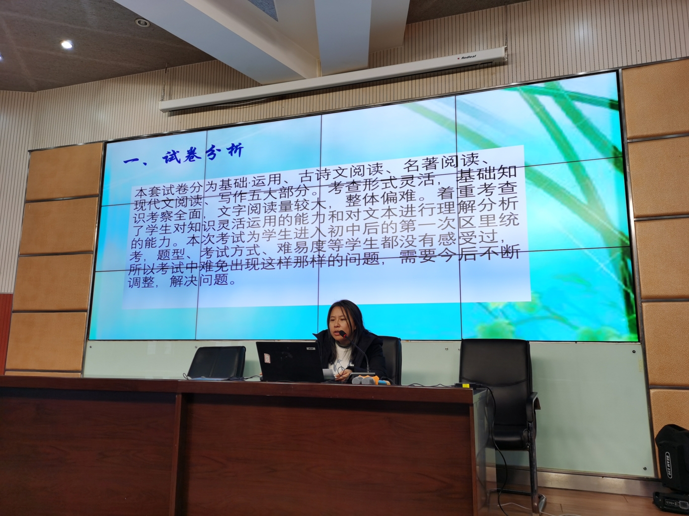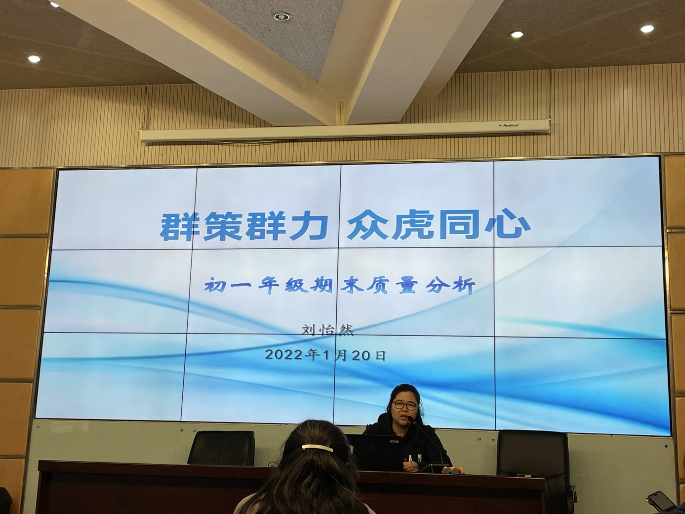刘怡然老师首先对初一年级本学期的情况进行了复盘,回顾了开学以来的工作亮点,以及疫情下班主任和任课教师对各类问题的组织与配合。同时对本次期末考试做了总体成绩和学生情况进行了具体分析,明确了下一阶段的方向:完善班级建设、加强家校沟通、班科任老师通力合作。各学科备课组长对考试情况进行具体分析,包括试卷分析、学情分析、改进措施等,各备课组分享工作亮点,互相学习,互取所长。初一学生的巨大进步离不开初一年级全体教师的全身心付出。