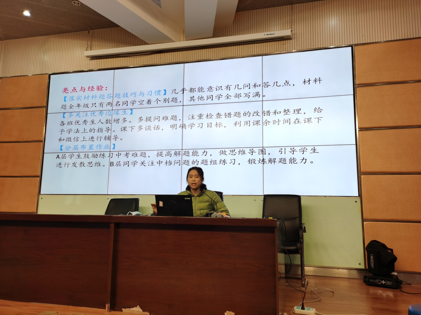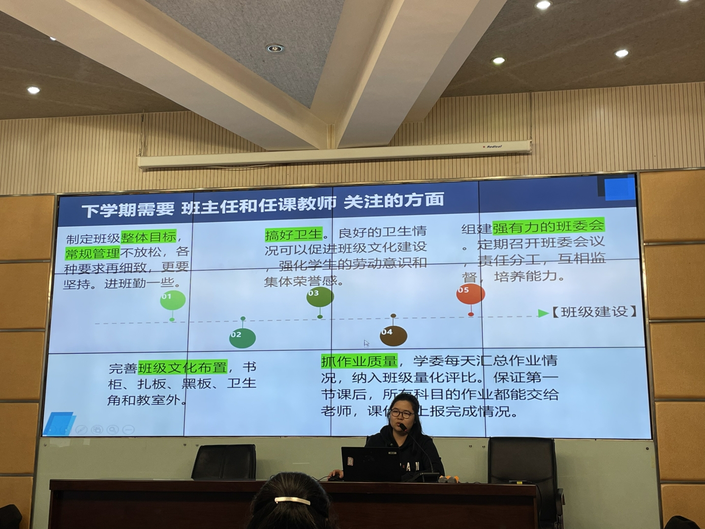 作为优秀班主任的代表——薛旗老师进行了班主任工作经验分享,介绍了本学期班级取得优异成绩的好方法。之后各班组织了班科任联席会,大家对班级现状和未来目标展开了激烈的讨论。