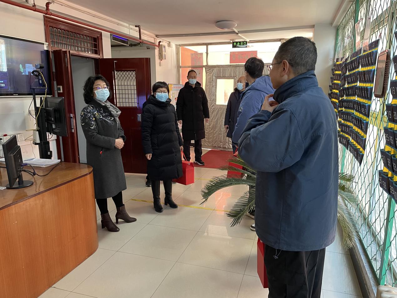 2022年1月31日上午10点,北京市和平街第一中学校长陈秀珍、党总支书记张静、工会主席张习文来到莲葩园校区慰问在校值班的教职员工。校领导一行人同每一位员工亲切会面,关心他们的在校工作、生活情况,一句句温馨的话语,一段段耐心的聆听,一个个诚挚的问候,拉近了校领导与员工之间的距离,使他们感受到了学校领导的温暖与关怀。