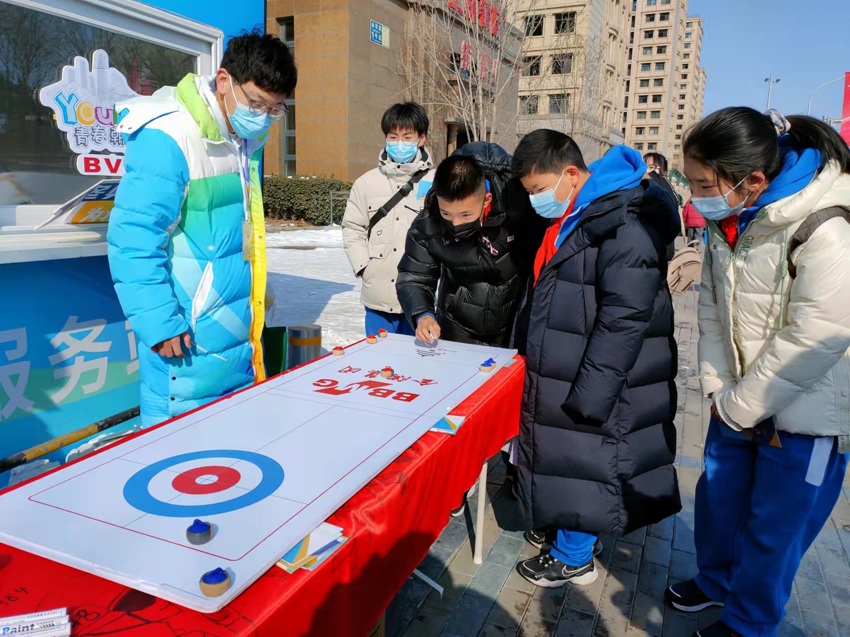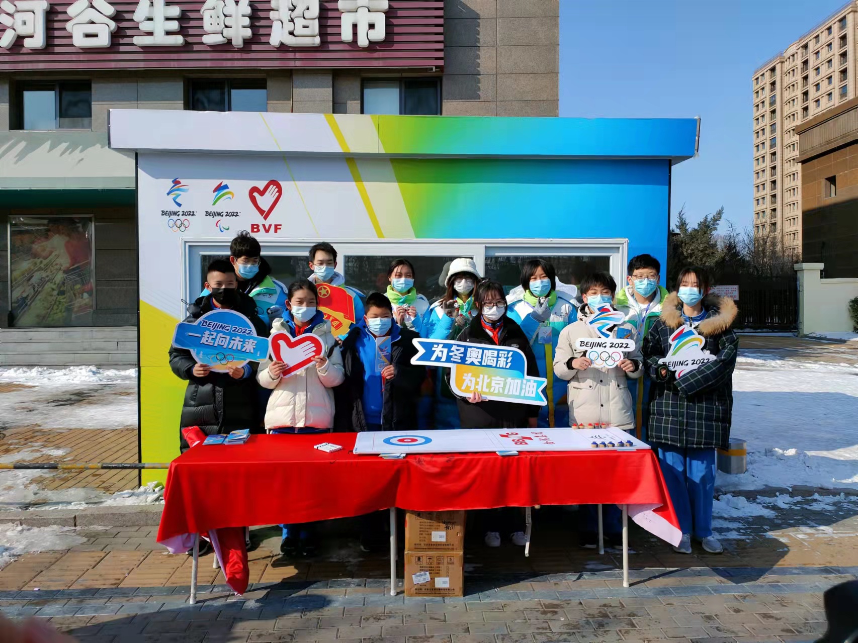 “志愿者们在寒风中执勤为冬奥服务,我们也要用自己的方式将温暖带给志愿者们,与大家一起为冬奥加油。”学生刘双瑜说道。同学们在现场录制视频,为赛场上的奥运健儿们加油助威。