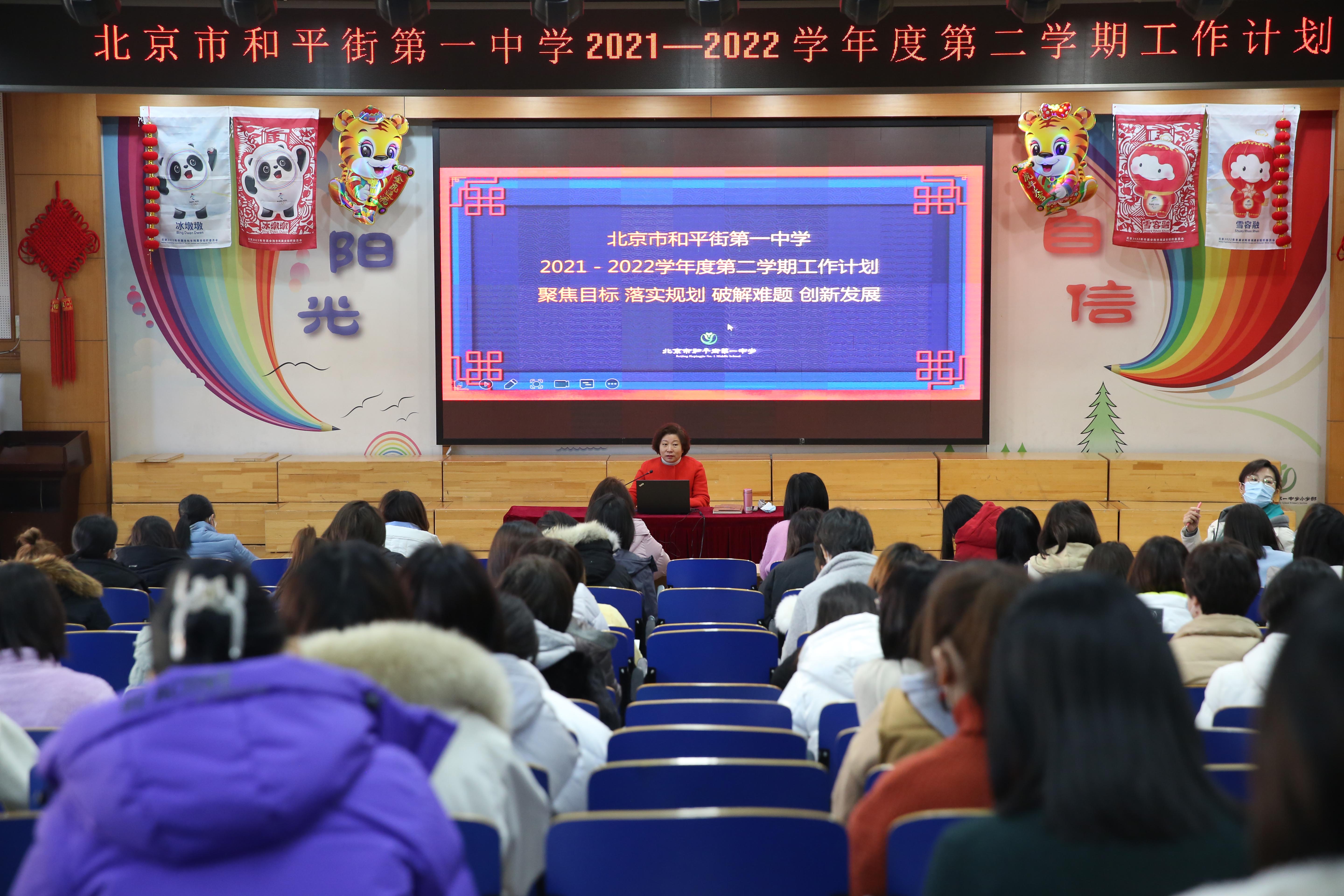 2022年2月19日,北京市和平街第一中学清友园校区召开新学期全体教师大会,大会由校区副校长殷桂萍主持,校区全体教师参会。