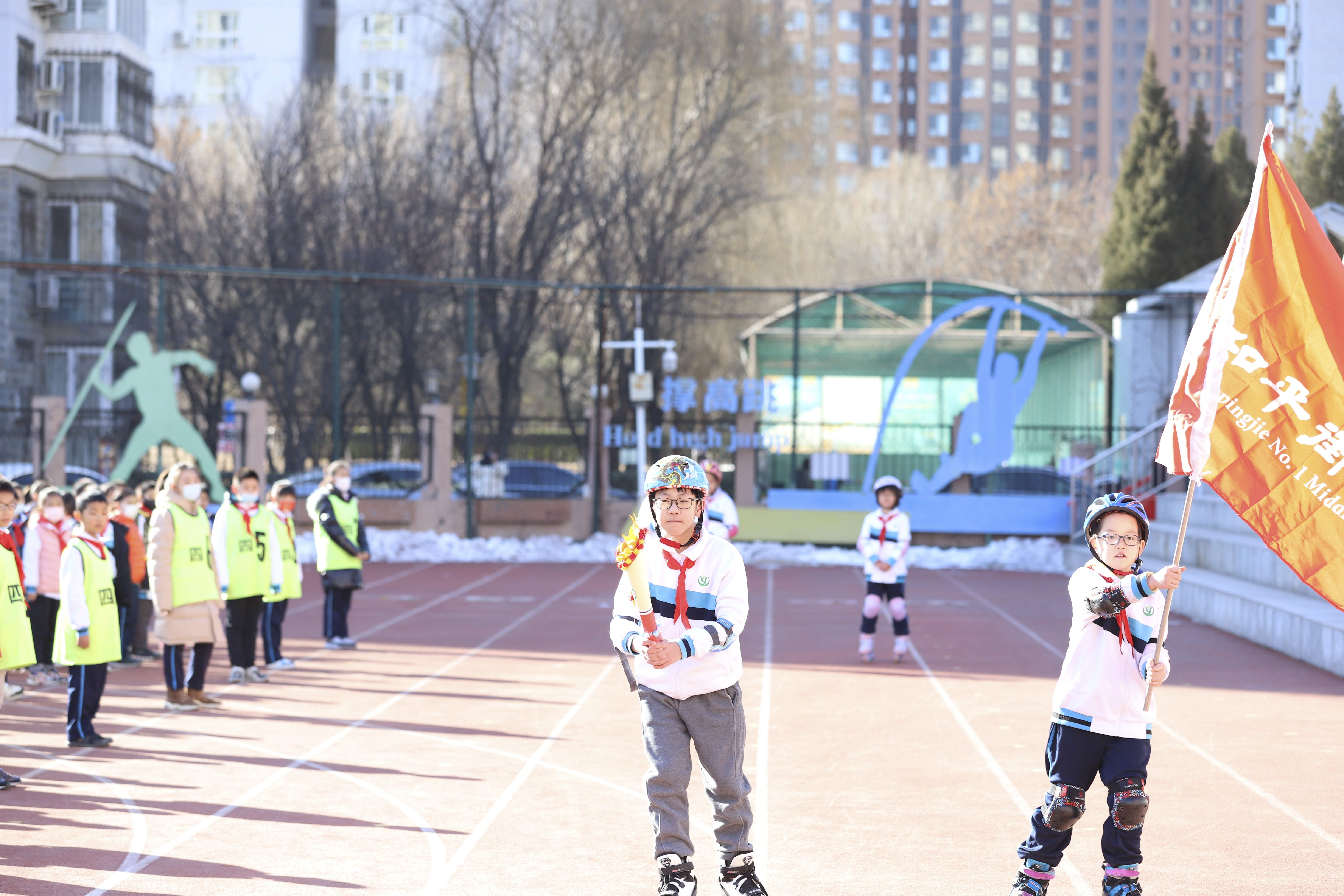 讲话结束后殷校长点燃“和一小”主火炬,启动年级火炬传递仪式,将全校师生的梦想与希望传递起来。