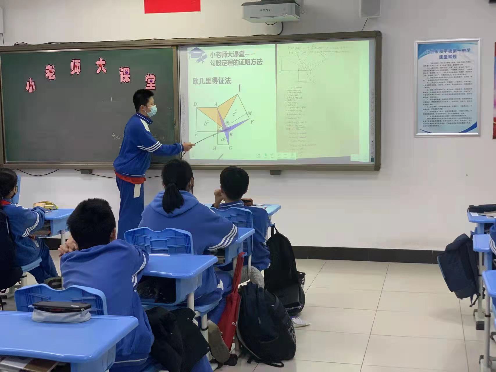 本次数学活动以班级为单位进行讲课,每班出四名同学到其他班讲解勾股定理的证明方法,每位学生都参与了本次活动。同学们积极备课,参考教材阅读材料和网上查阅勾股定理的很多证明方法,在老师的指导下进行试讲,每位同学讲解的方法都能让同学们听懂,示范严谨的逻辑推理过程,使每个同学都有所收获,学到了很多课外知识,而且还了解了一些数学家和数学文化知识,在此过程中,同学们的自学能力,搜集、整合资料的能力得到了锻炼。