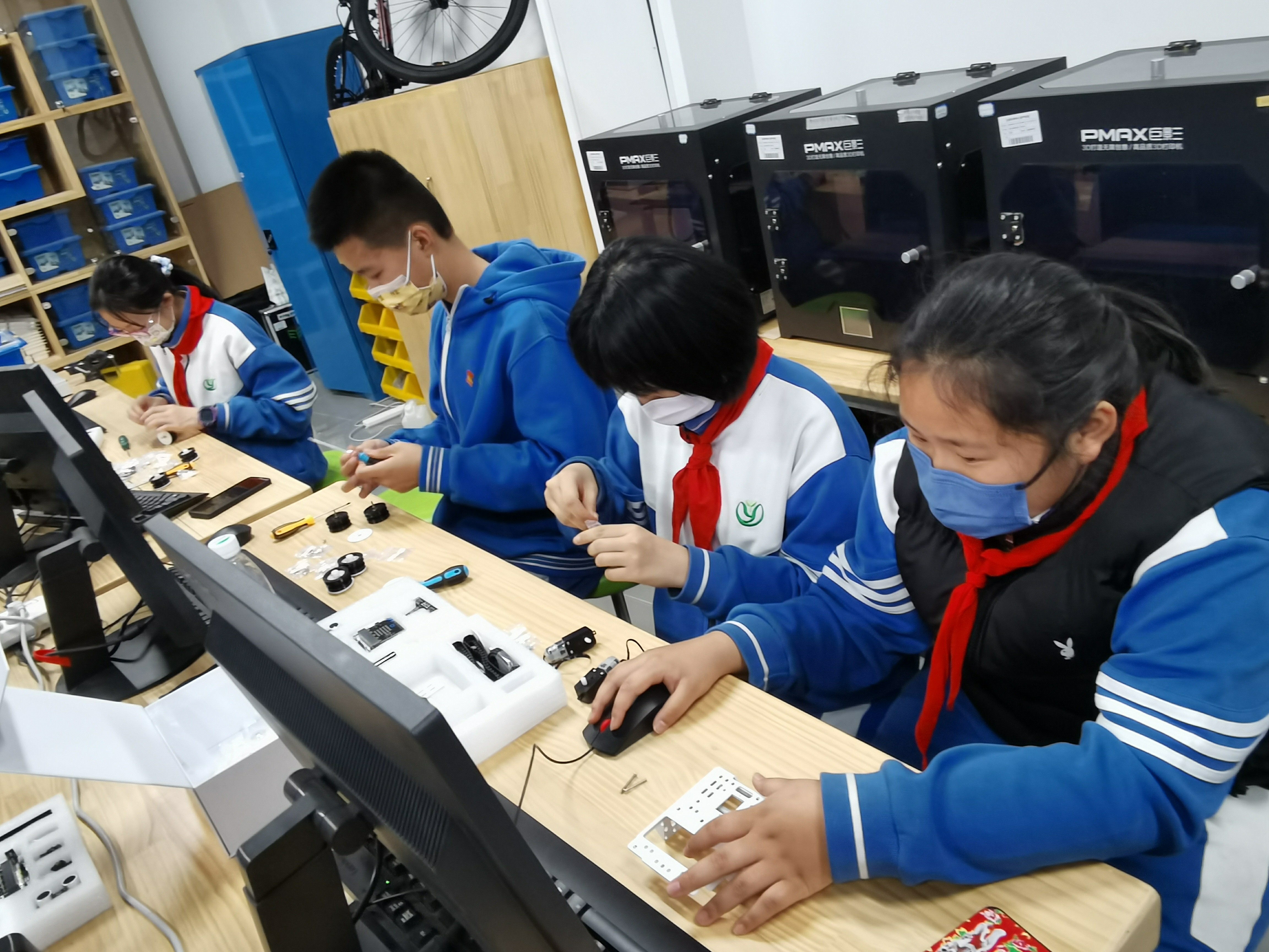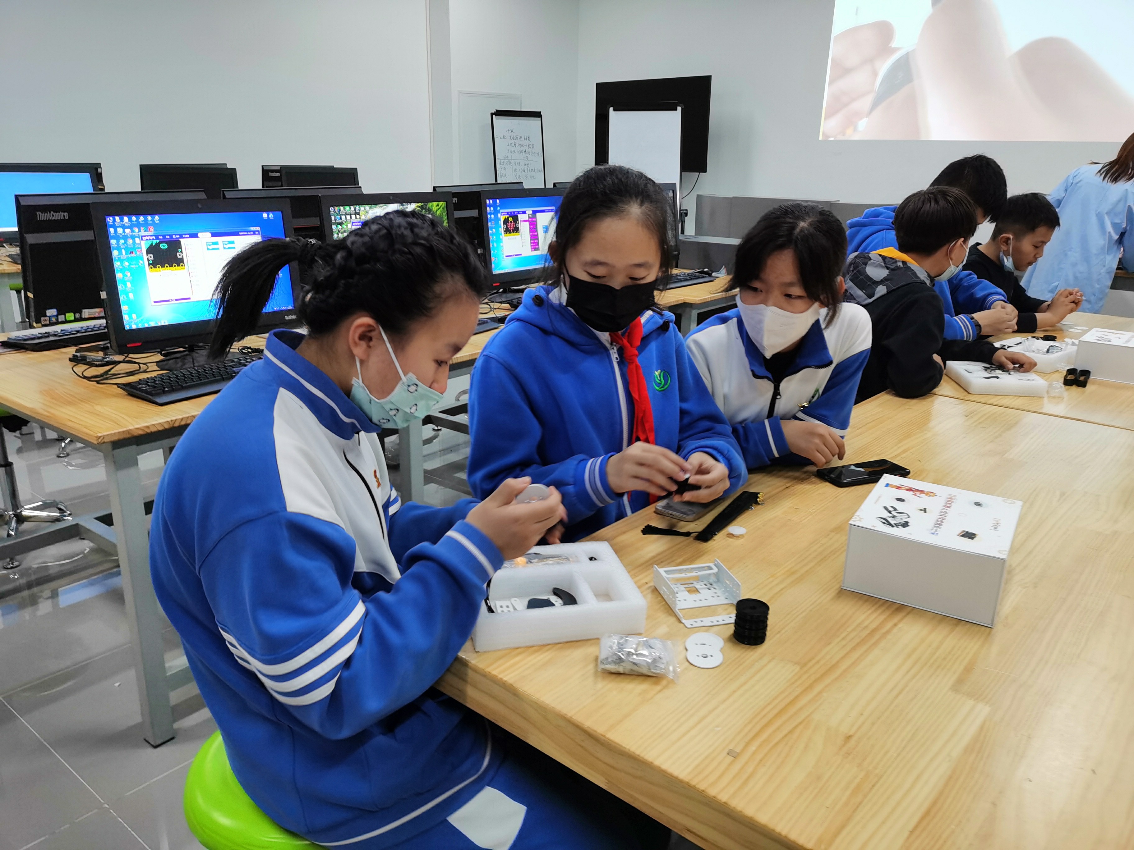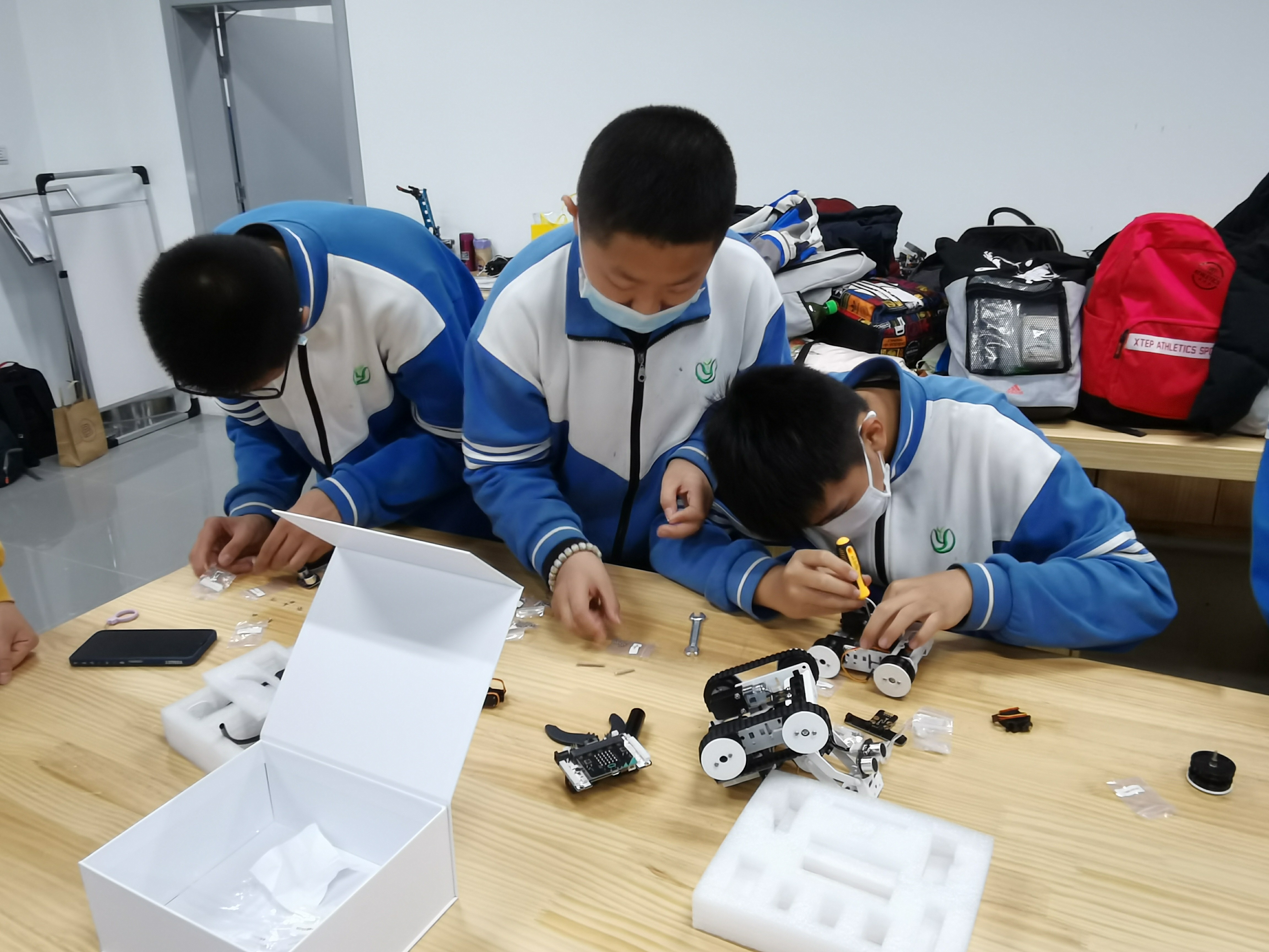 活动中,北京科学中心科技辅导员为同学们介绍了科学中心的建设和开放情况,讲解了交通领域的相关知识,使同学们对交通工具的发展历史、智能交通领域的整体发展现状及具体的产业案例有了更加深入的了解。师生们边参观、边交流,边体验、边实践。在科技辅导员的指导下,大家自己动手,设计搭建了履带式带机械臂无人车,并通过设计调整驱动履带式搬运机器人的结构,最终实现了完成道路清障的目标。一天的活动结束后,同学们纷纷表示非常喜欢这种形式的研学活动,不仅在动手动脑中学到科学知识,收获了快乐和喜悦,还提高了探索科技奥秘的兴趣。